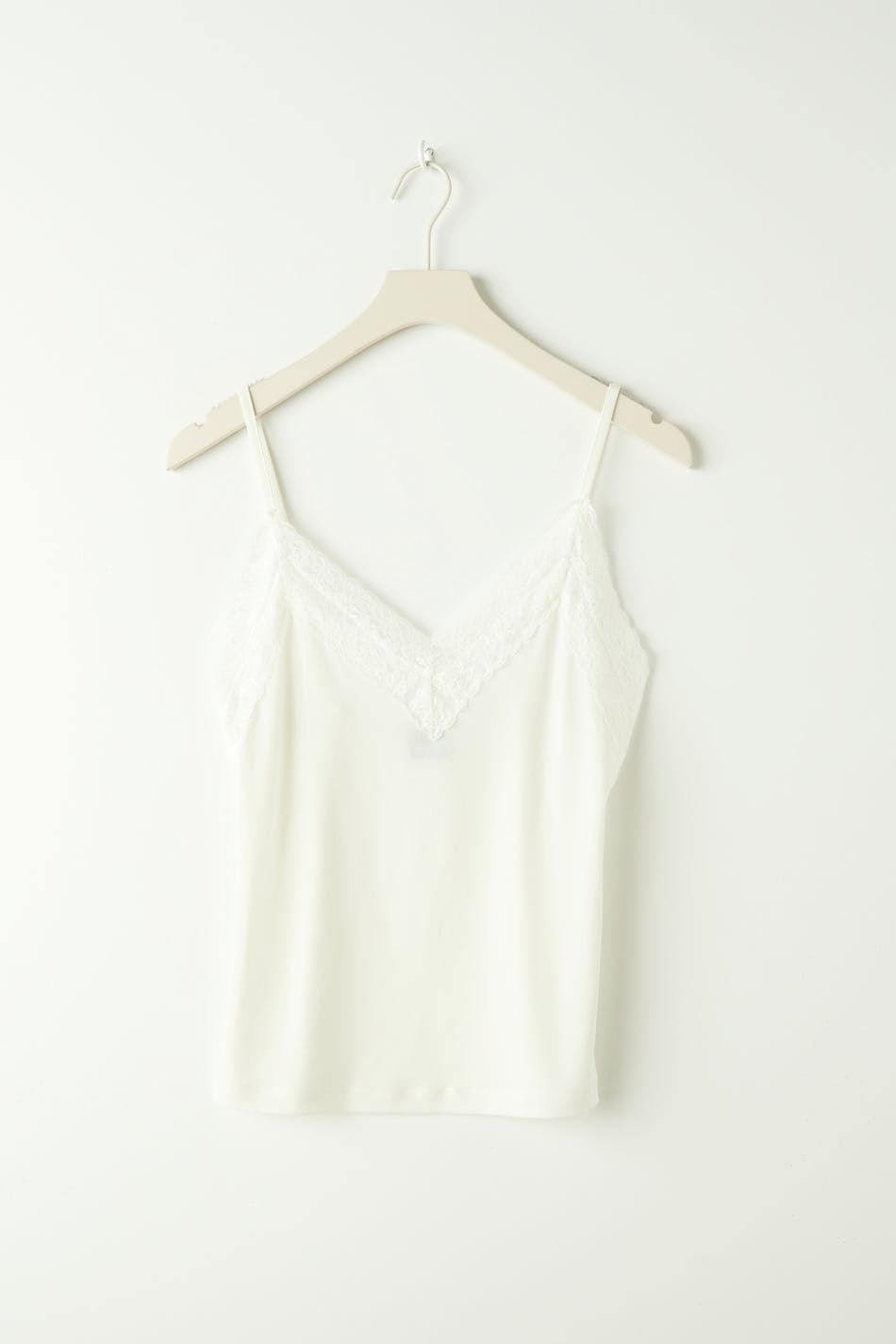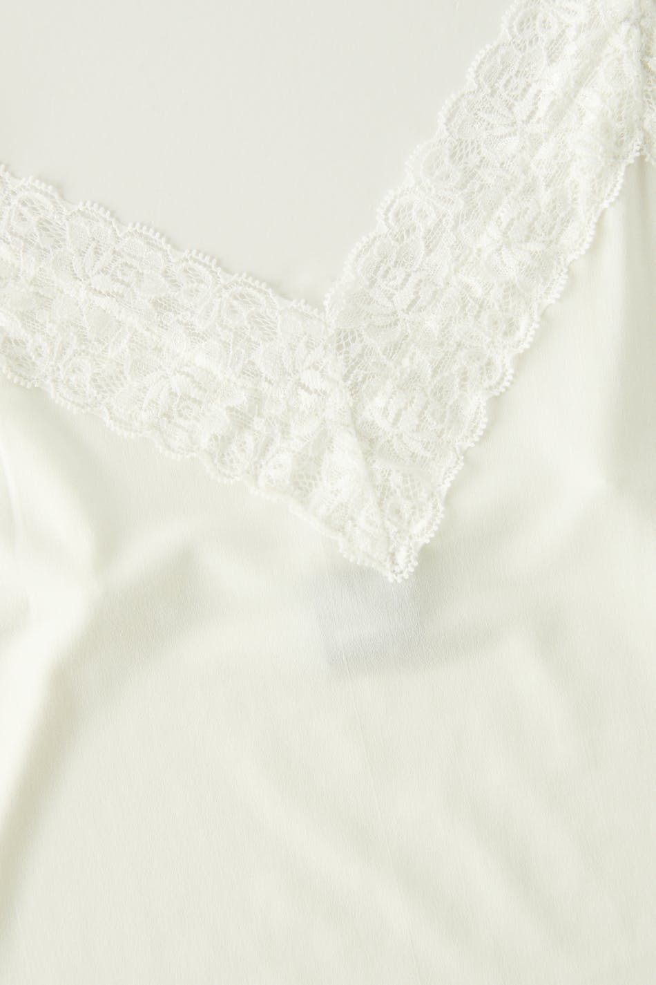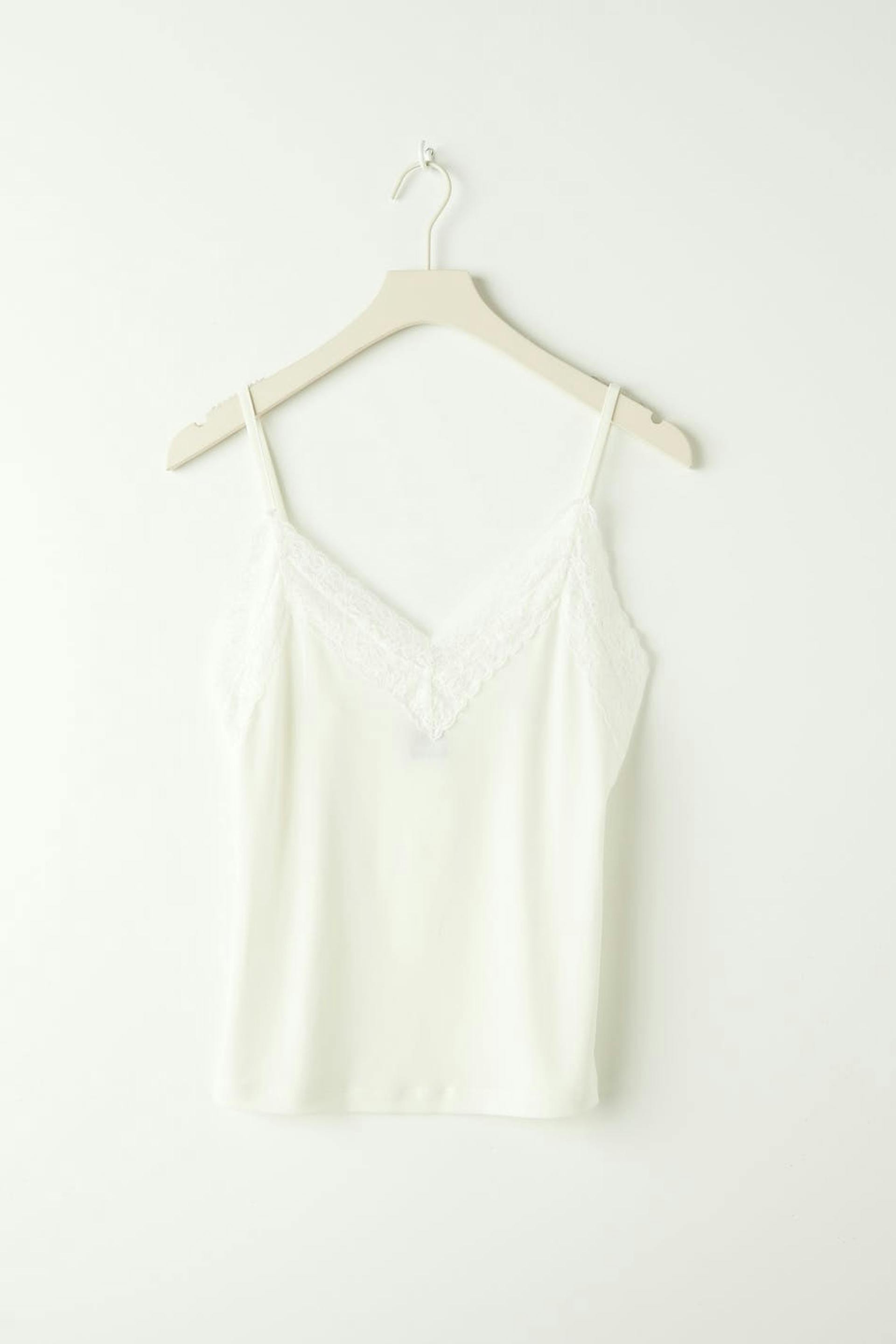 Tank in jersey with lace details. The tank is white and has thin shoulder straps.