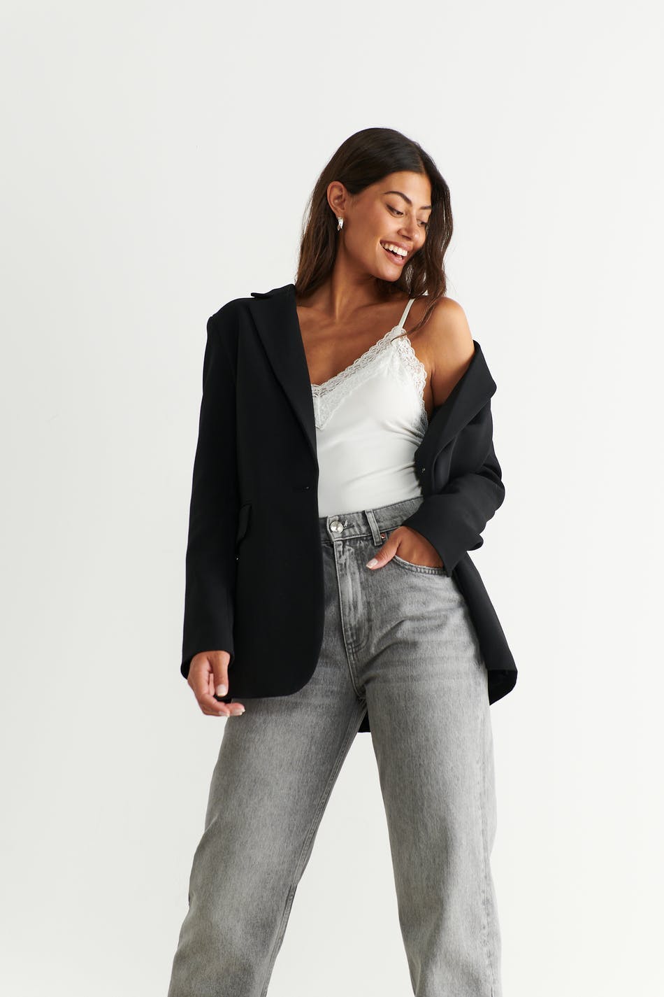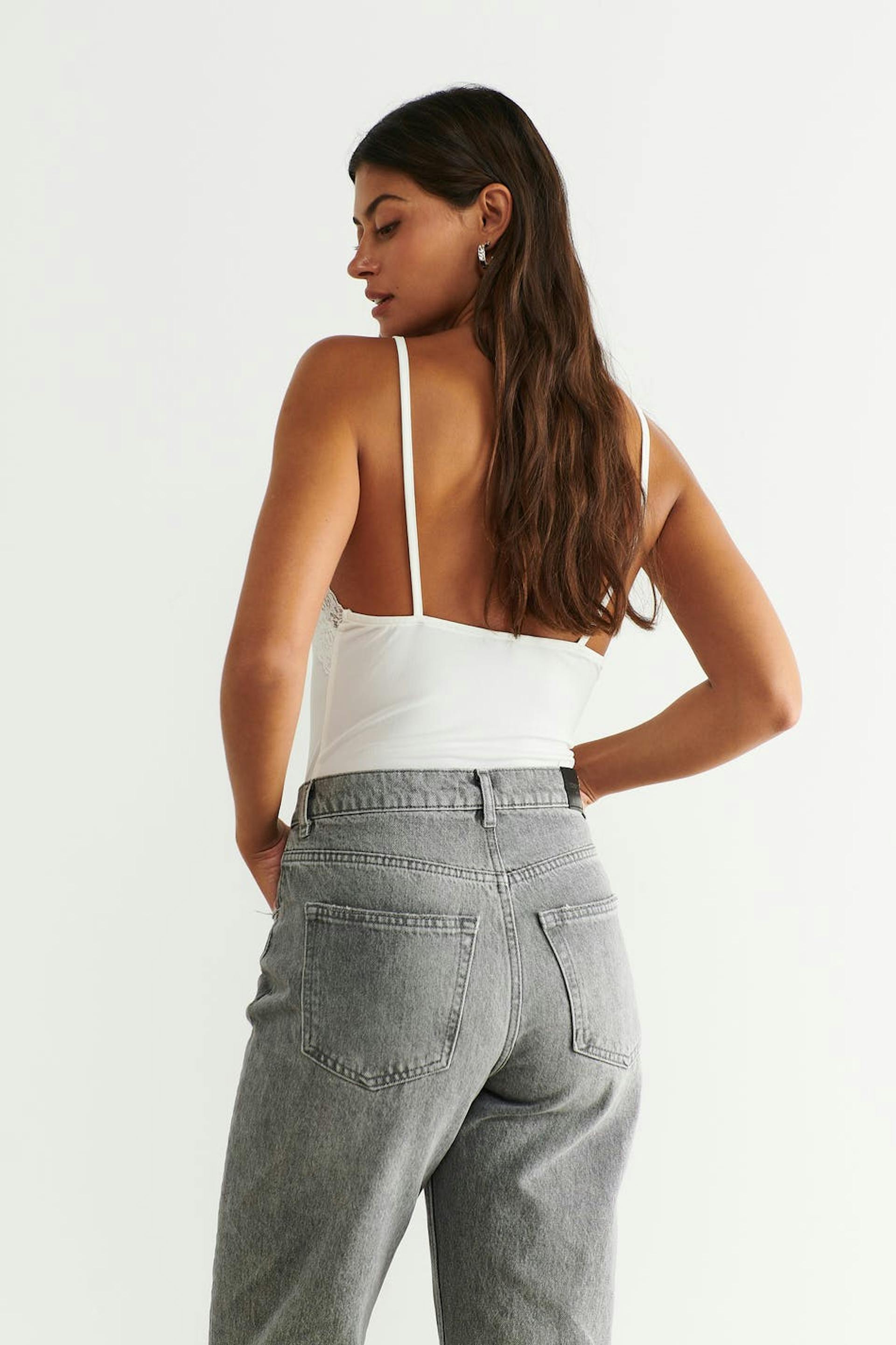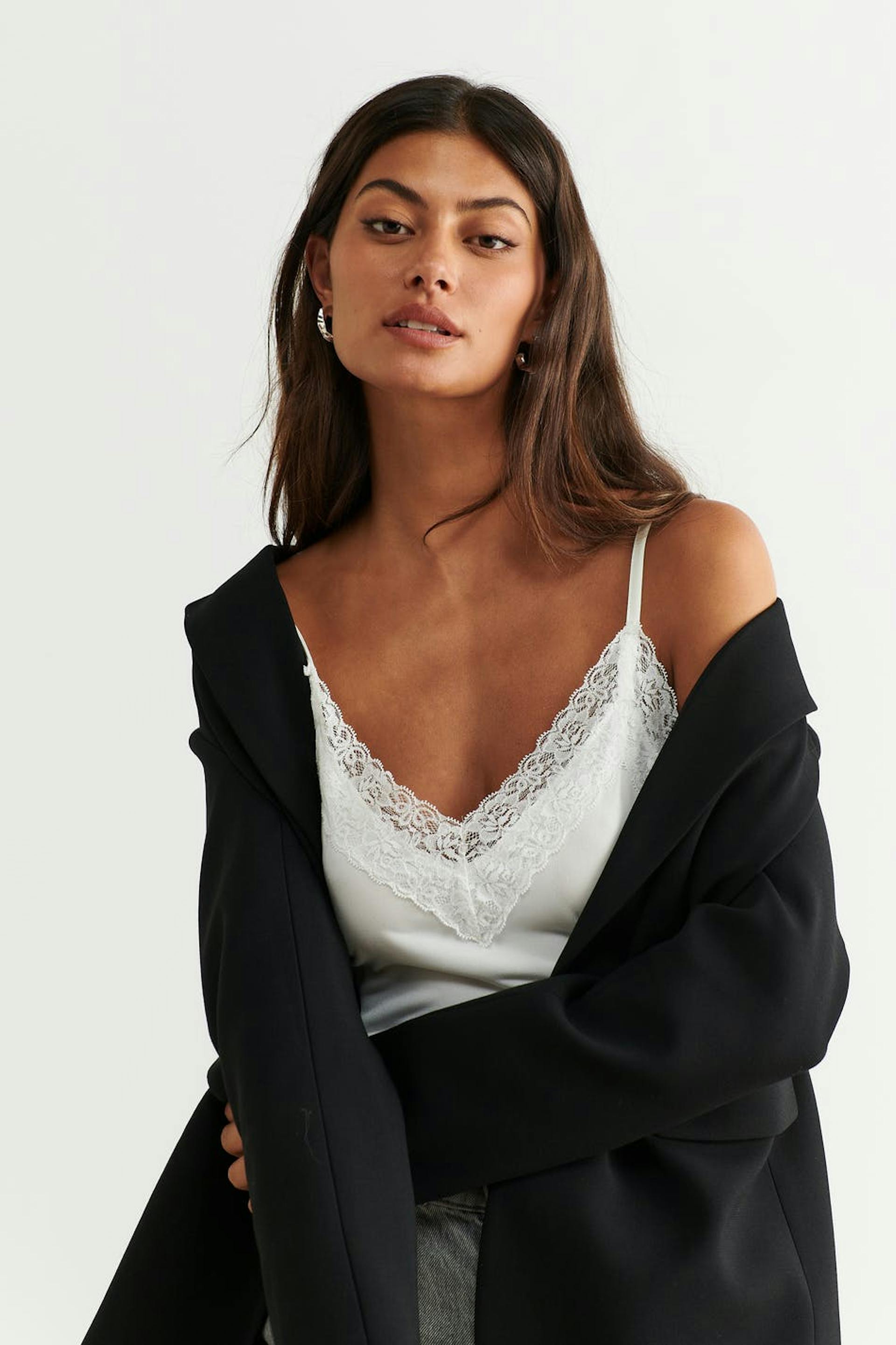 Tank in jersey with lace details. The tank is white and has thin shoulder straps.