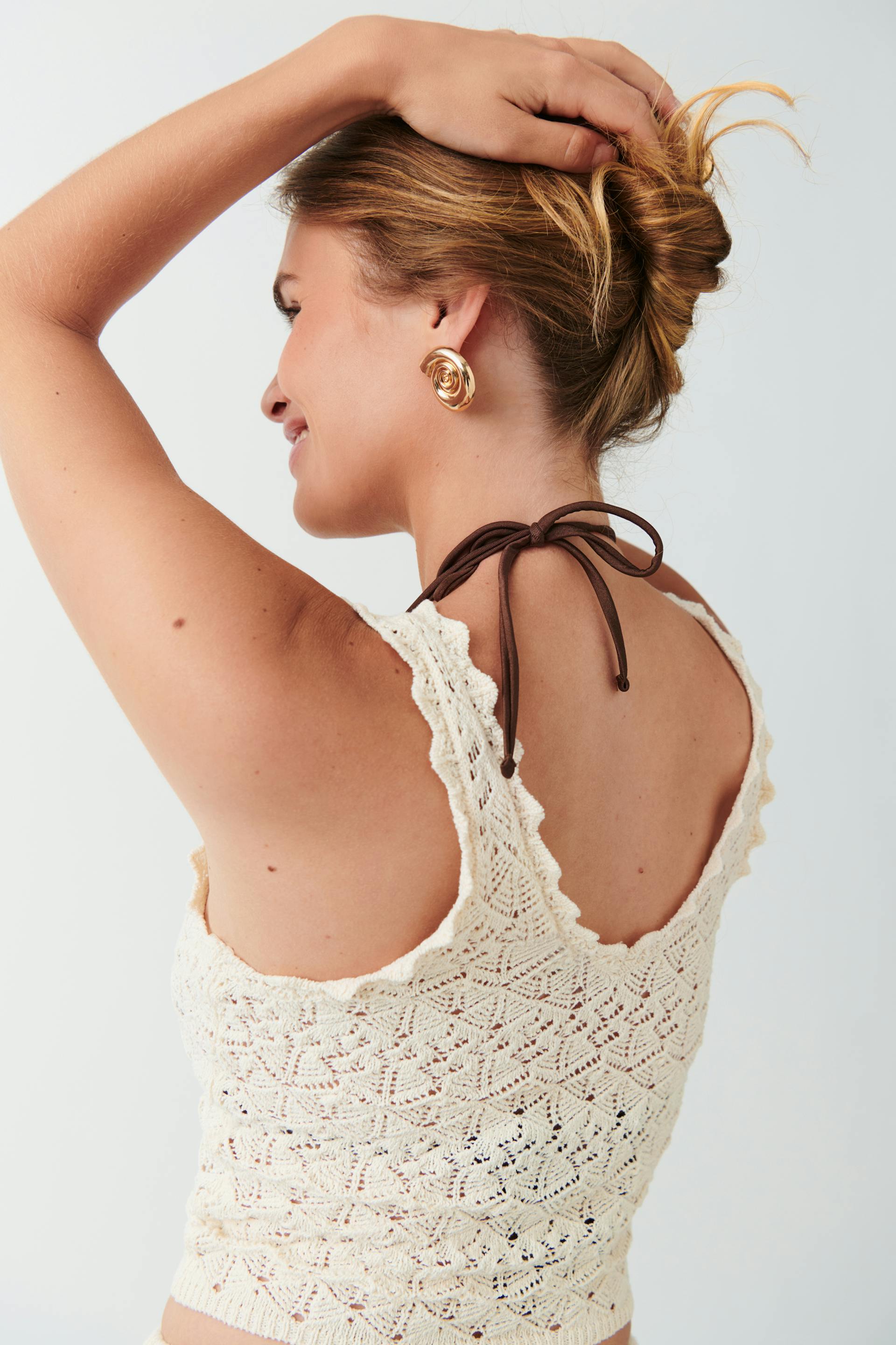 Crocheted singlet with v-neck. The singlet is beige and has regular fit.