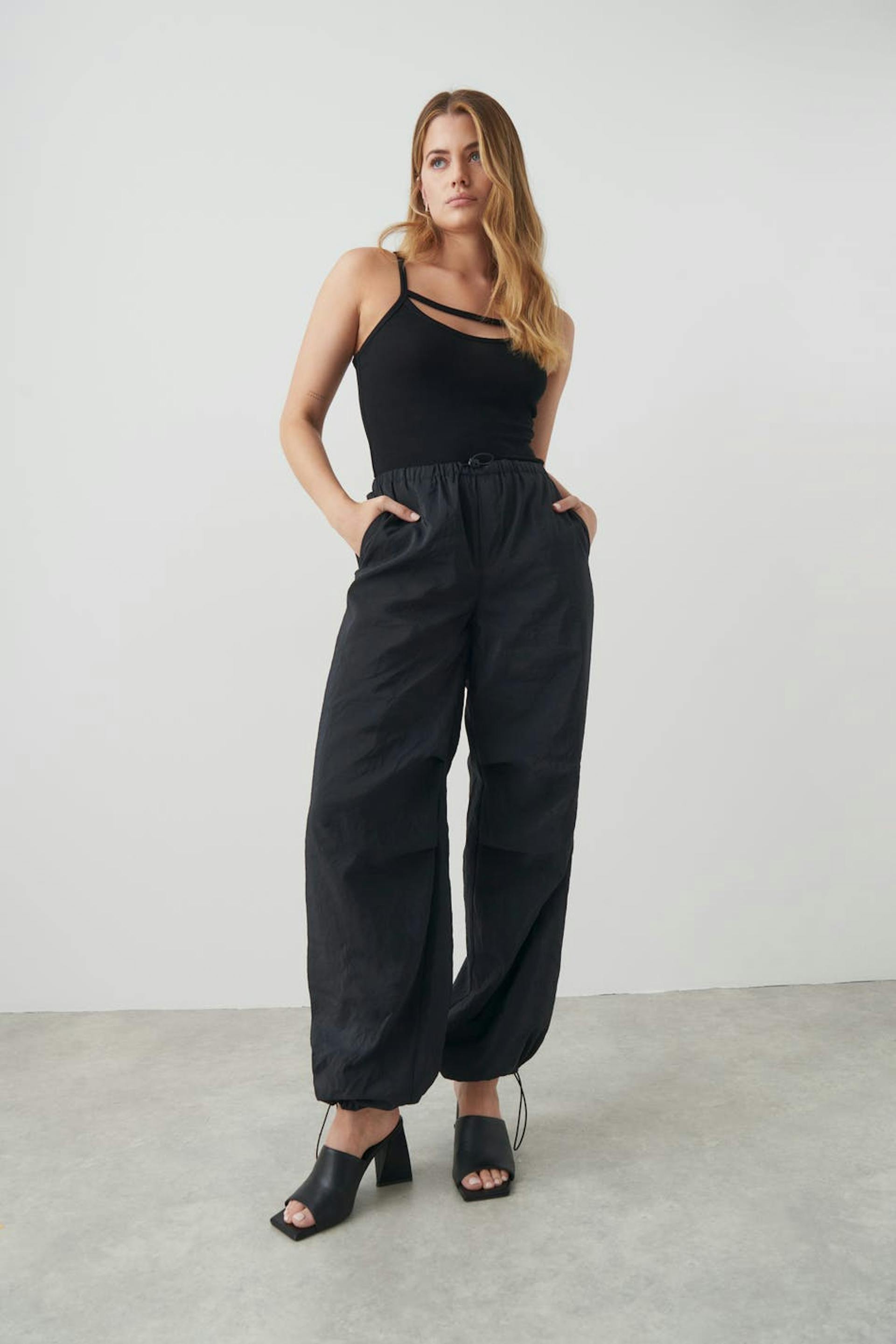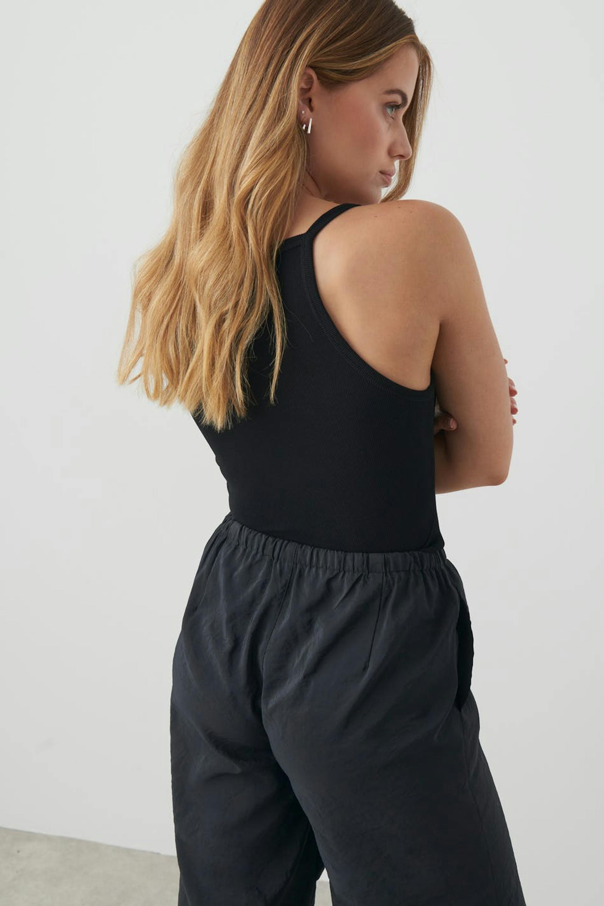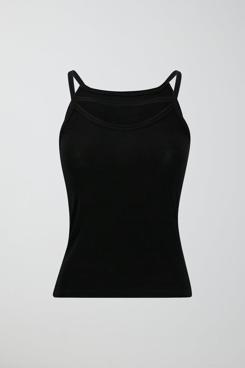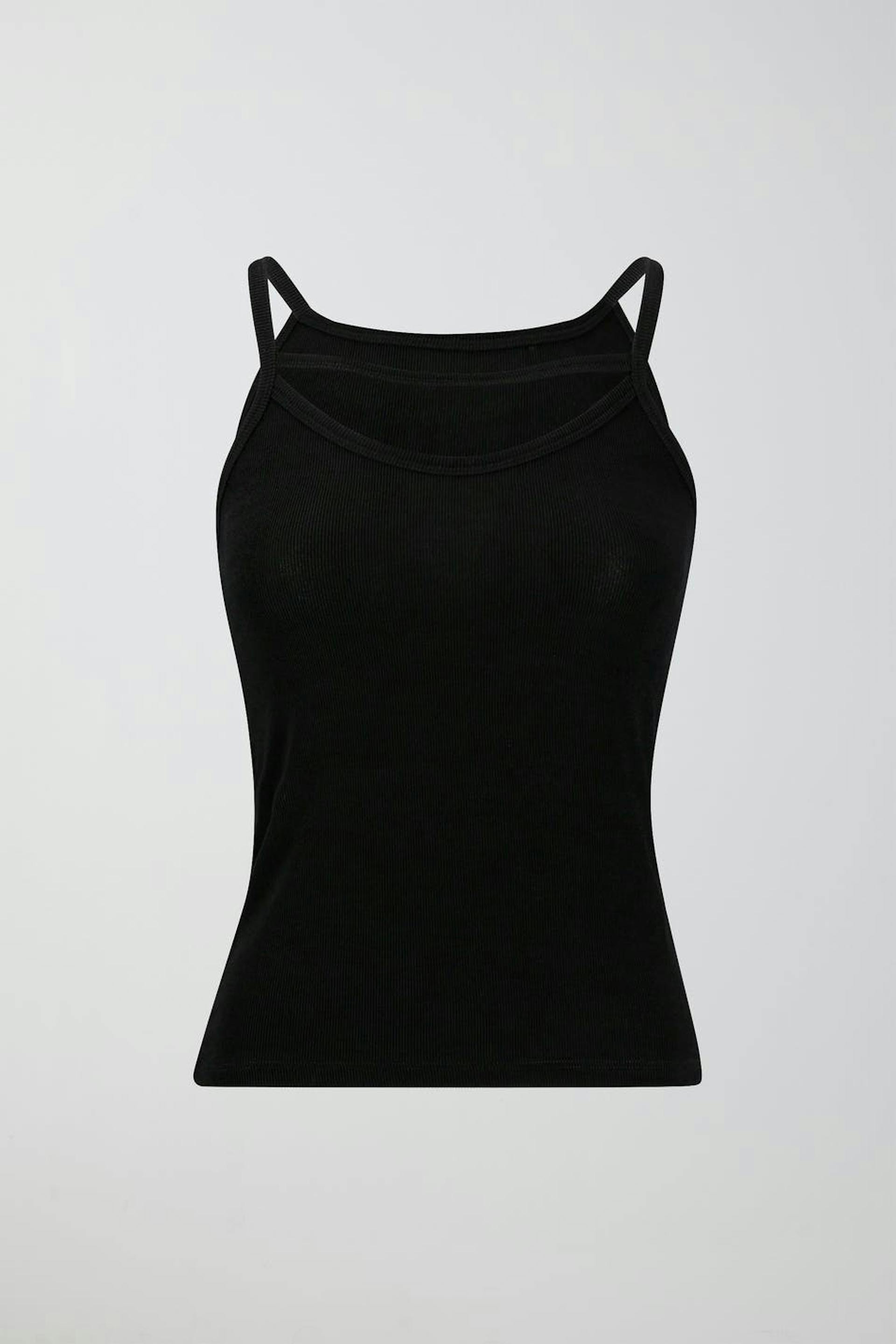 Ribbed singlet in jersey with figure-hugging fit. The singlet is black and has thin shoulder straps.