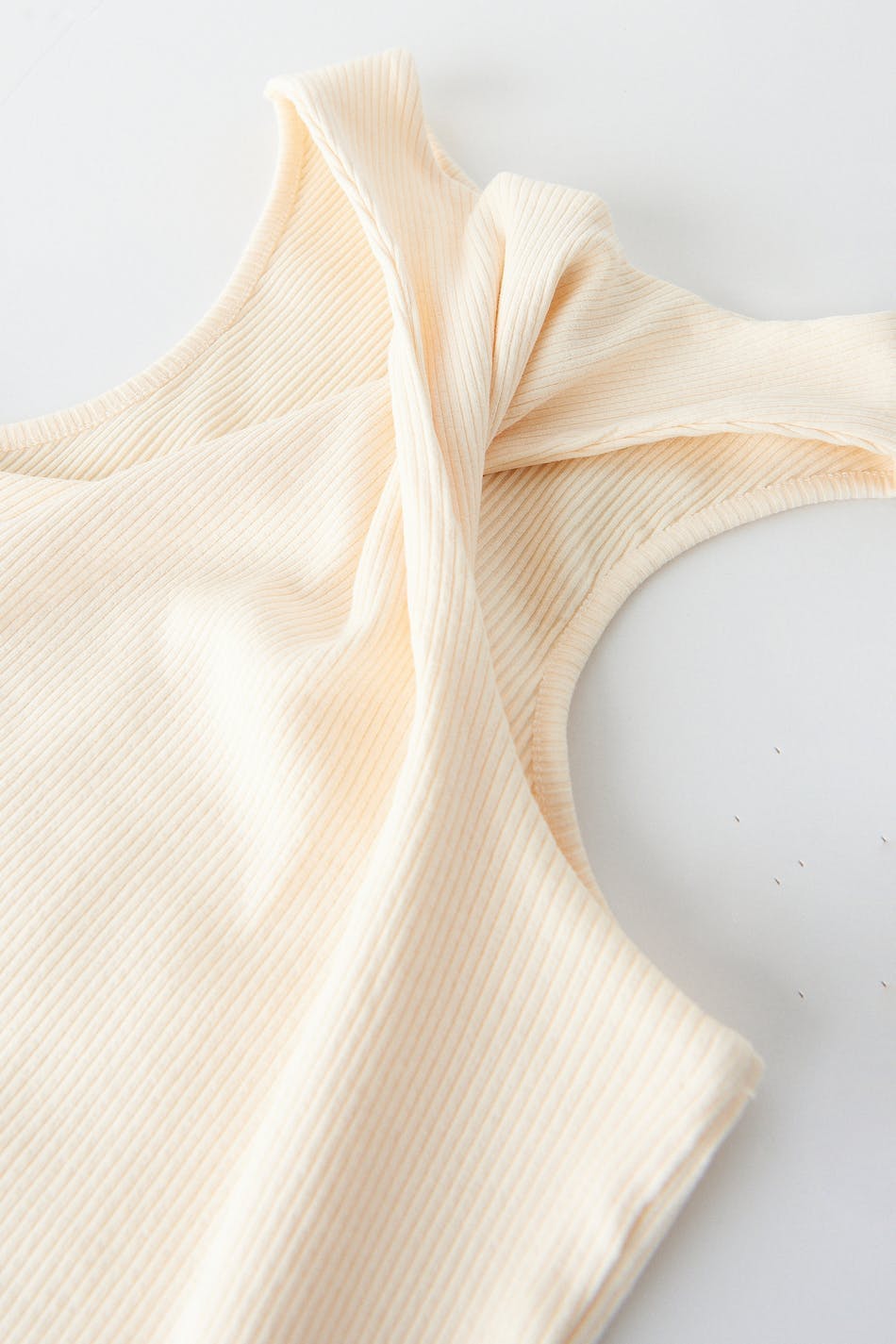 Ribbed top in jersey with a fitted fit. The top is white and has a twisted detail at the neck. It has a fitted fit.
