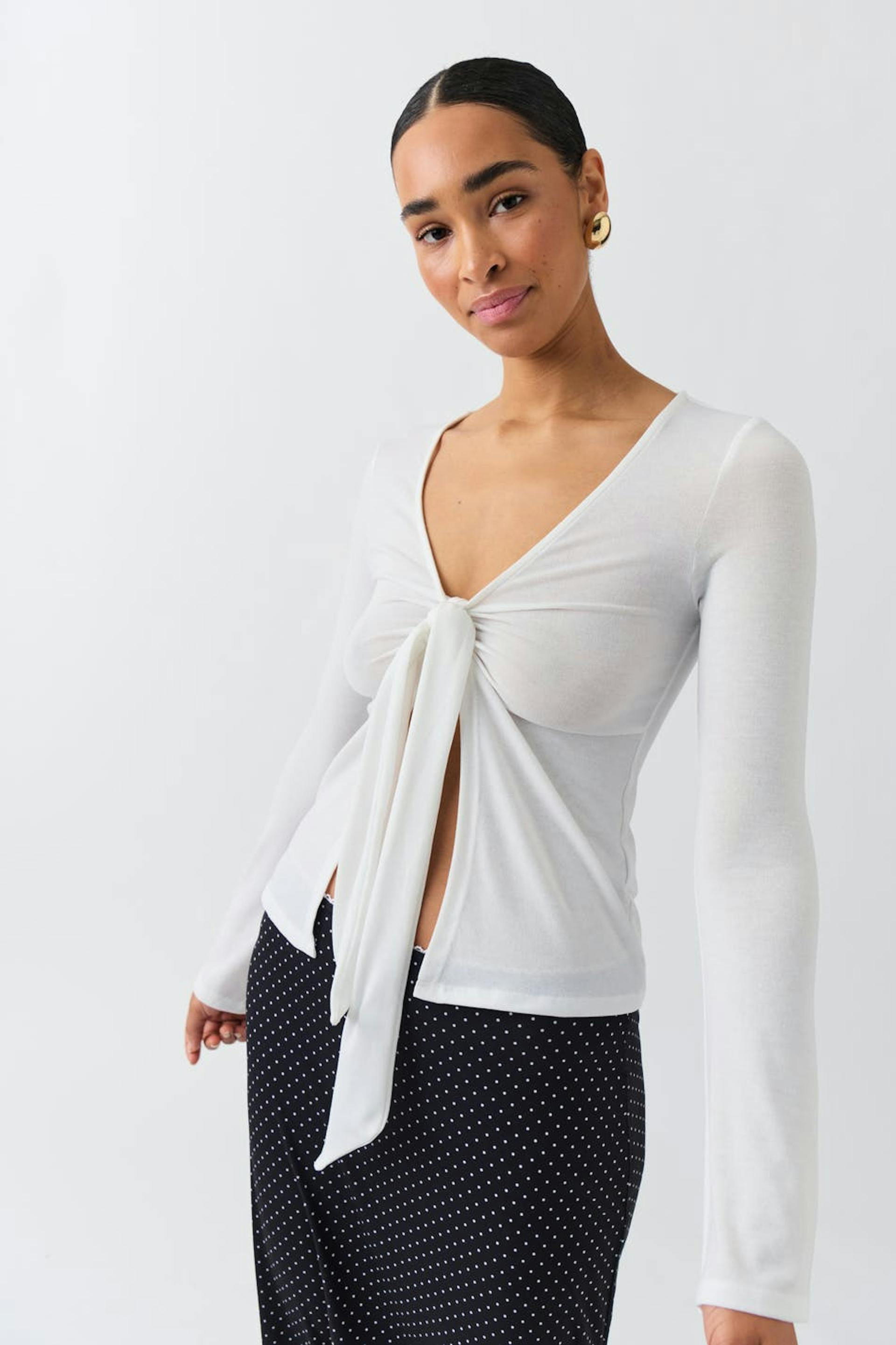 Tie front long sleeve top