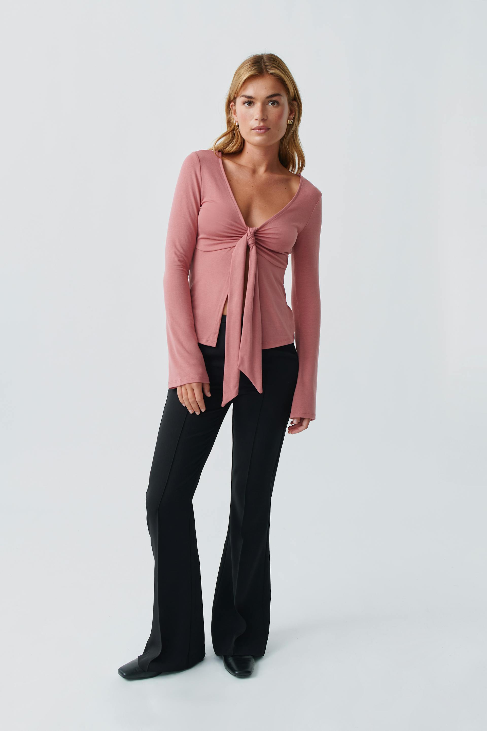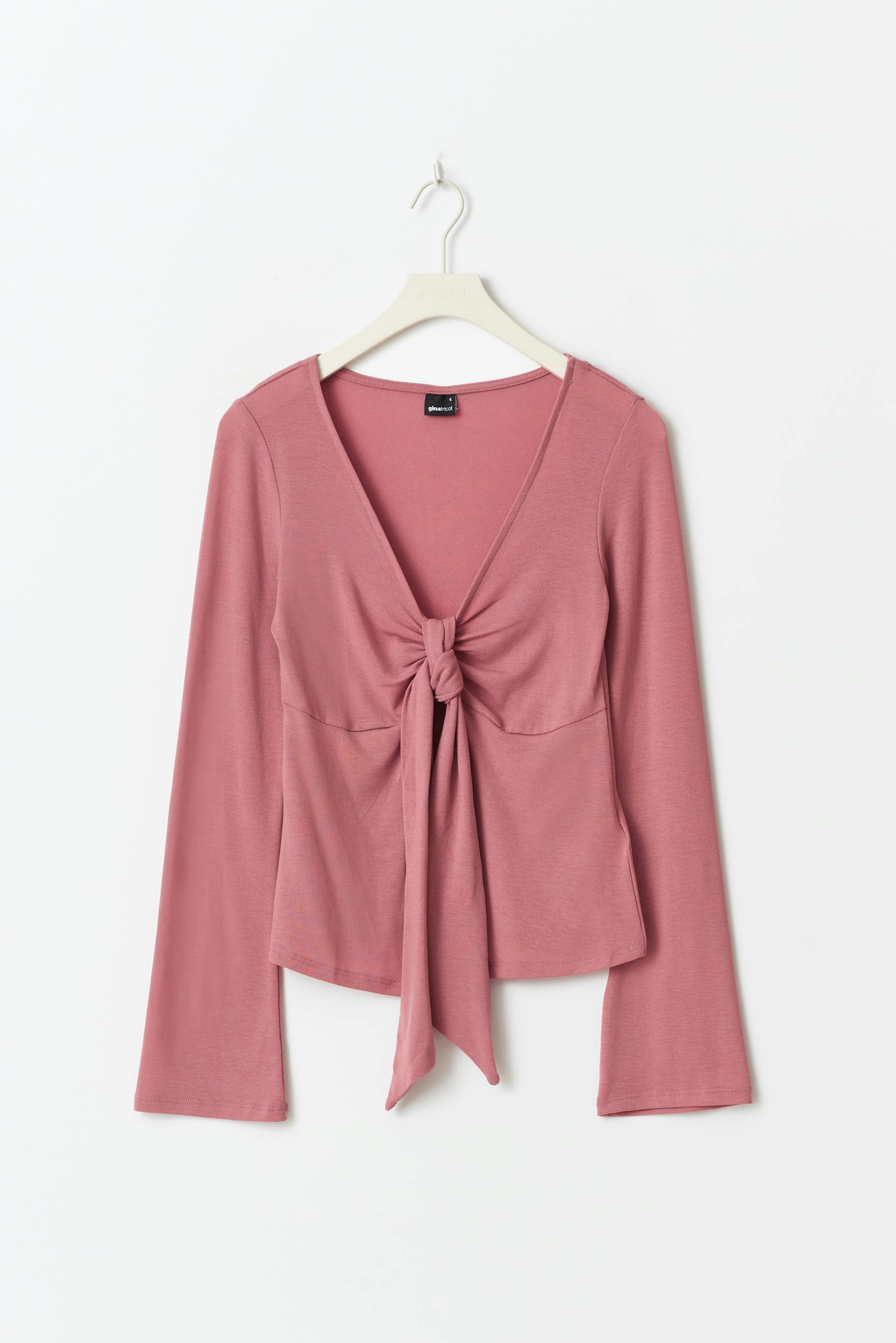 Long-sleeved top in jersey with knot detail at the front. The top is pink and has V-neck. It has regular fit and stretchy quality.