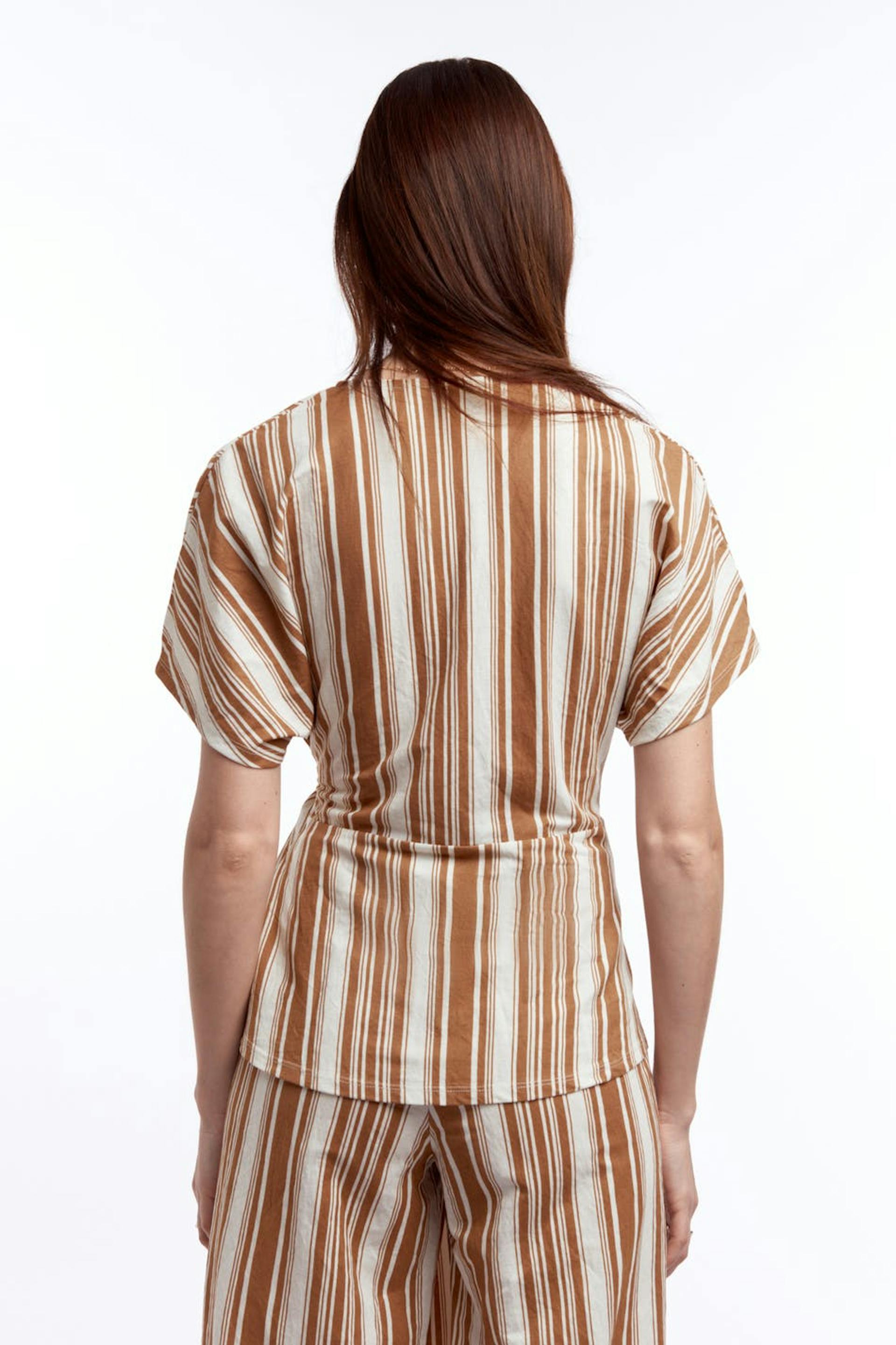 Striped top with a regular fit. The top has an overlap design. It is made of jersey and has a belt tie at the waist.