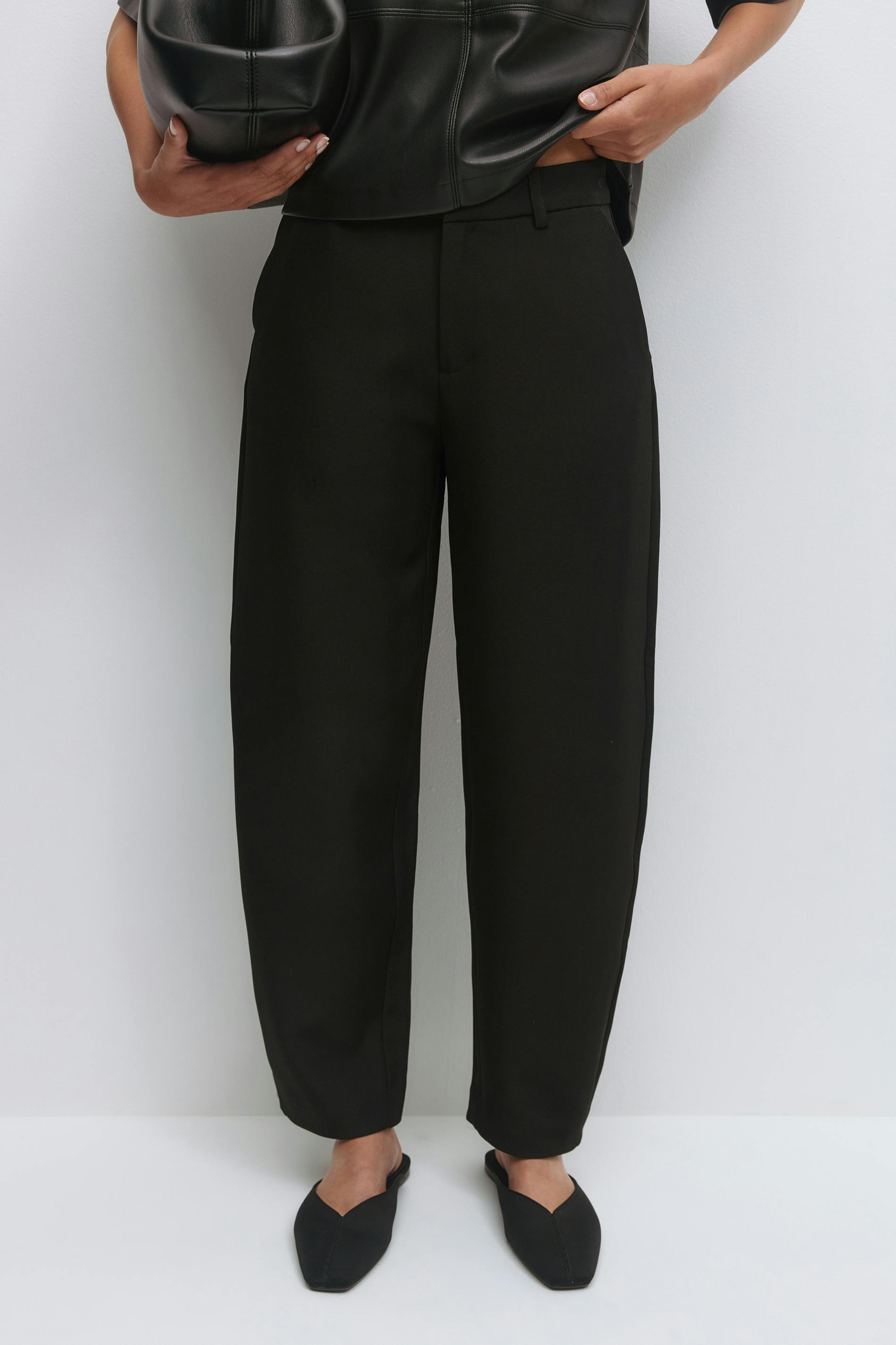 Mid waist barrel trousers