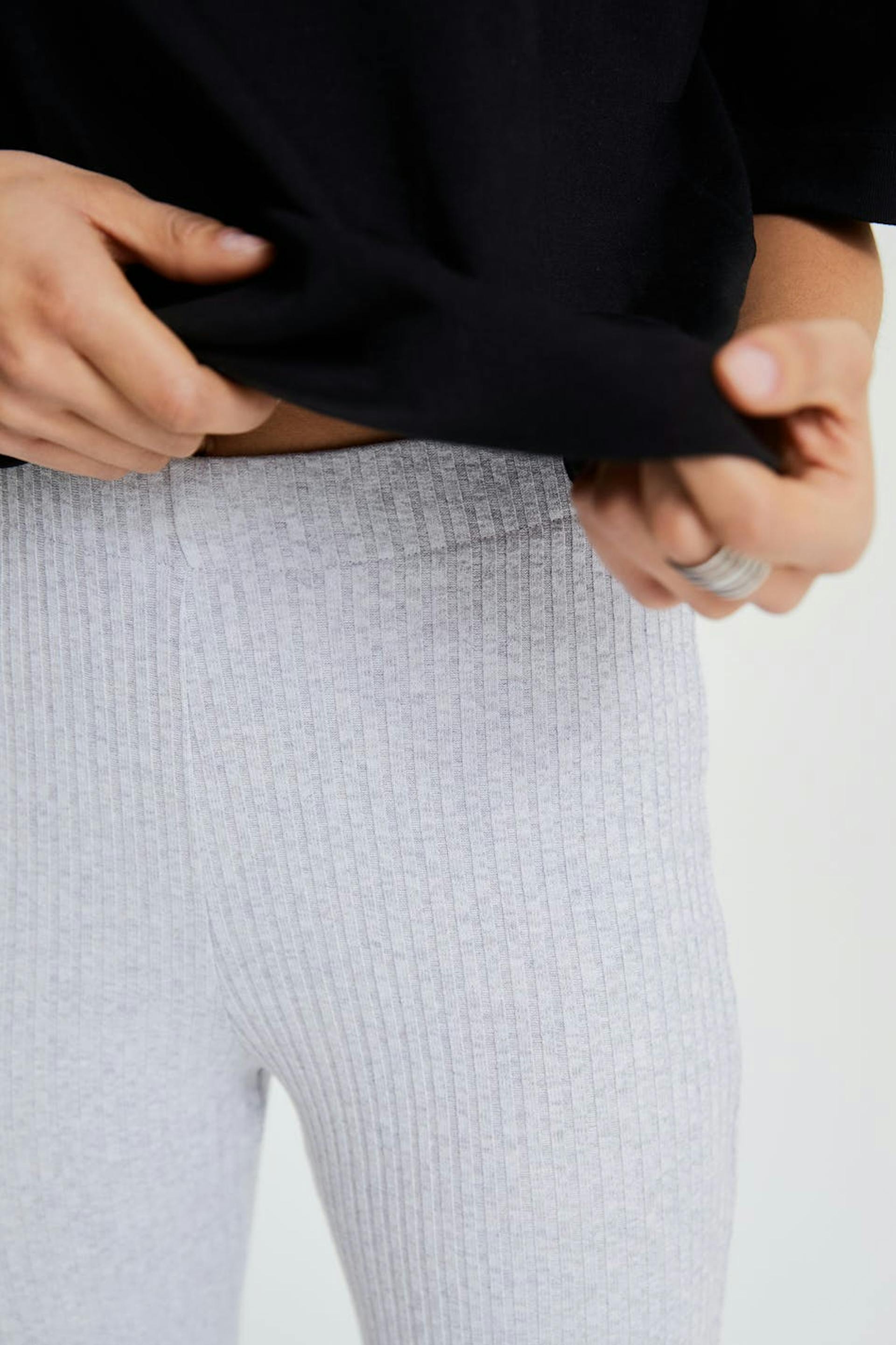 Petite trousers with a fitted fit. The trousers are grey, ribbed and soft. They are made of jersey and have an elastic band at the waist. Perfect for those who are 160 cm (5 ft 3 in.) or shorter.