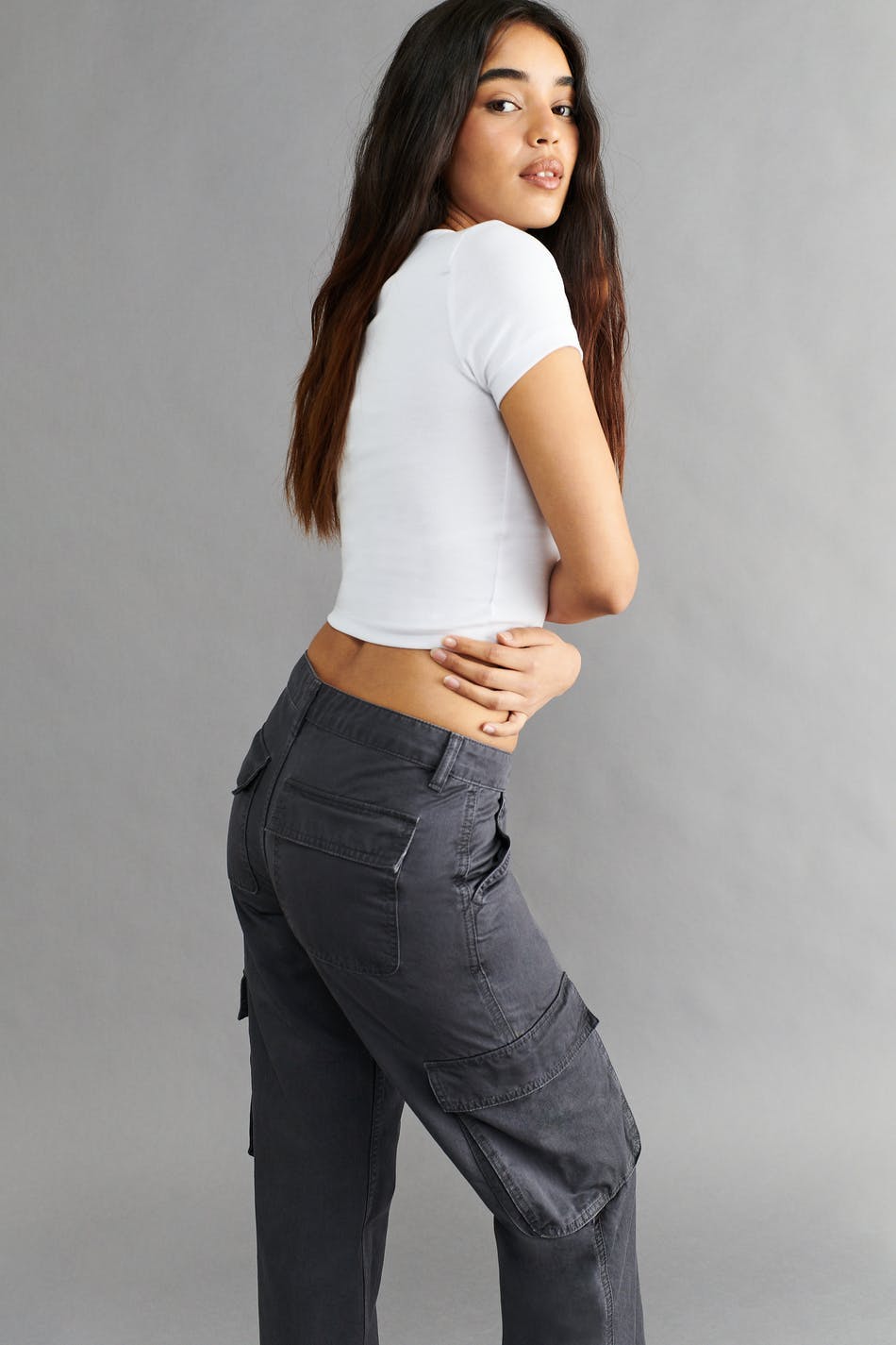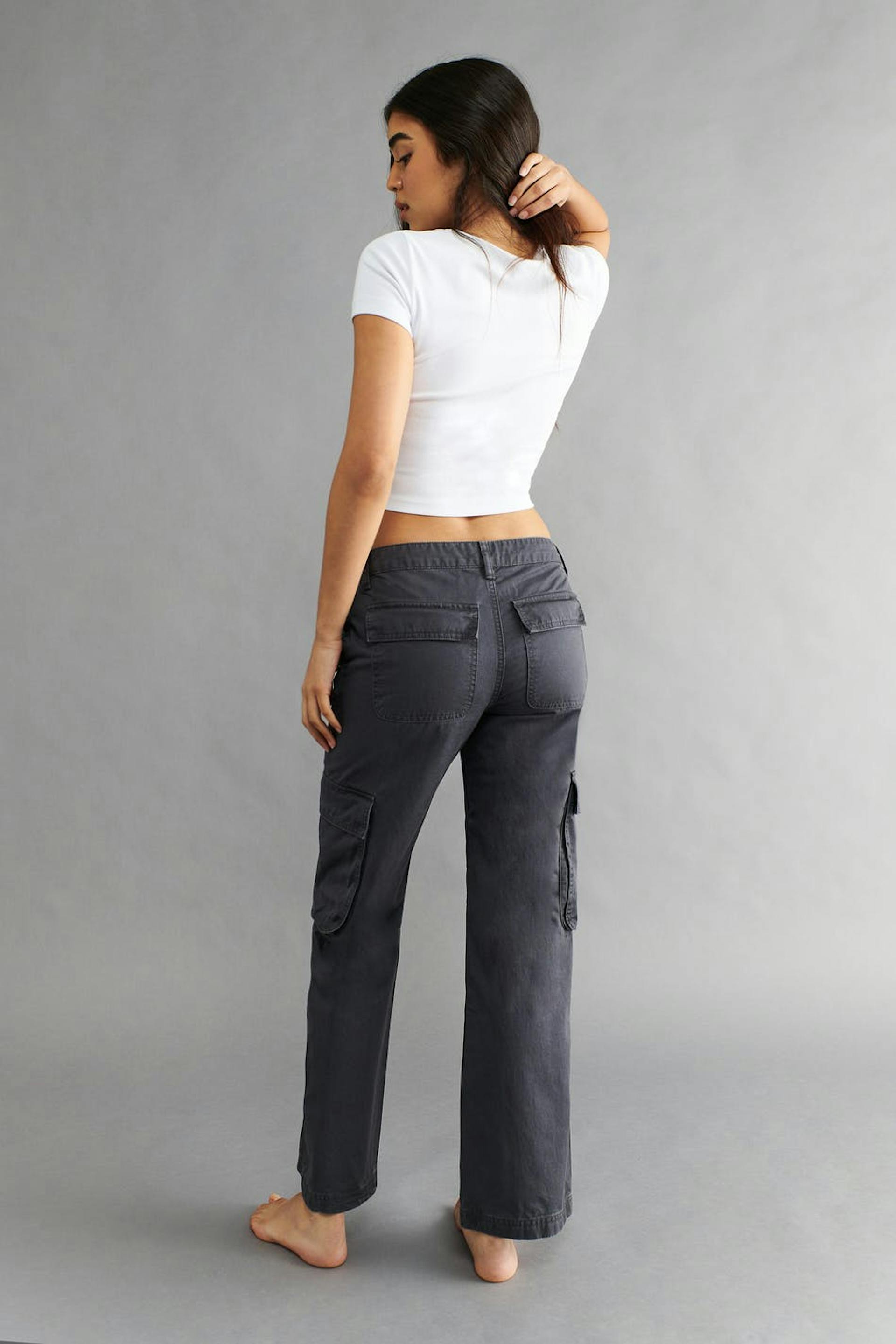 Cargo jeans with low waist in non-stretch denim. The jeans are grey and have a straight, 00s-inspired fit. Use our size guide to find your size.
