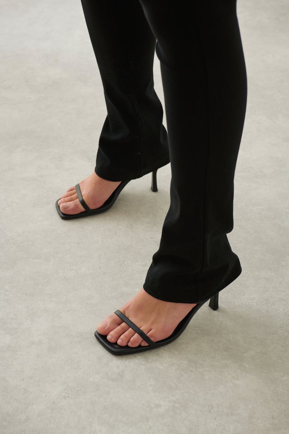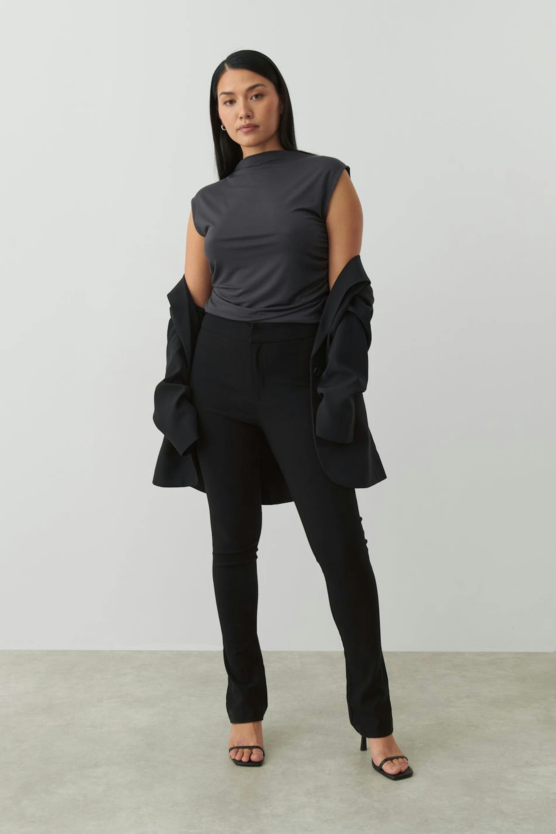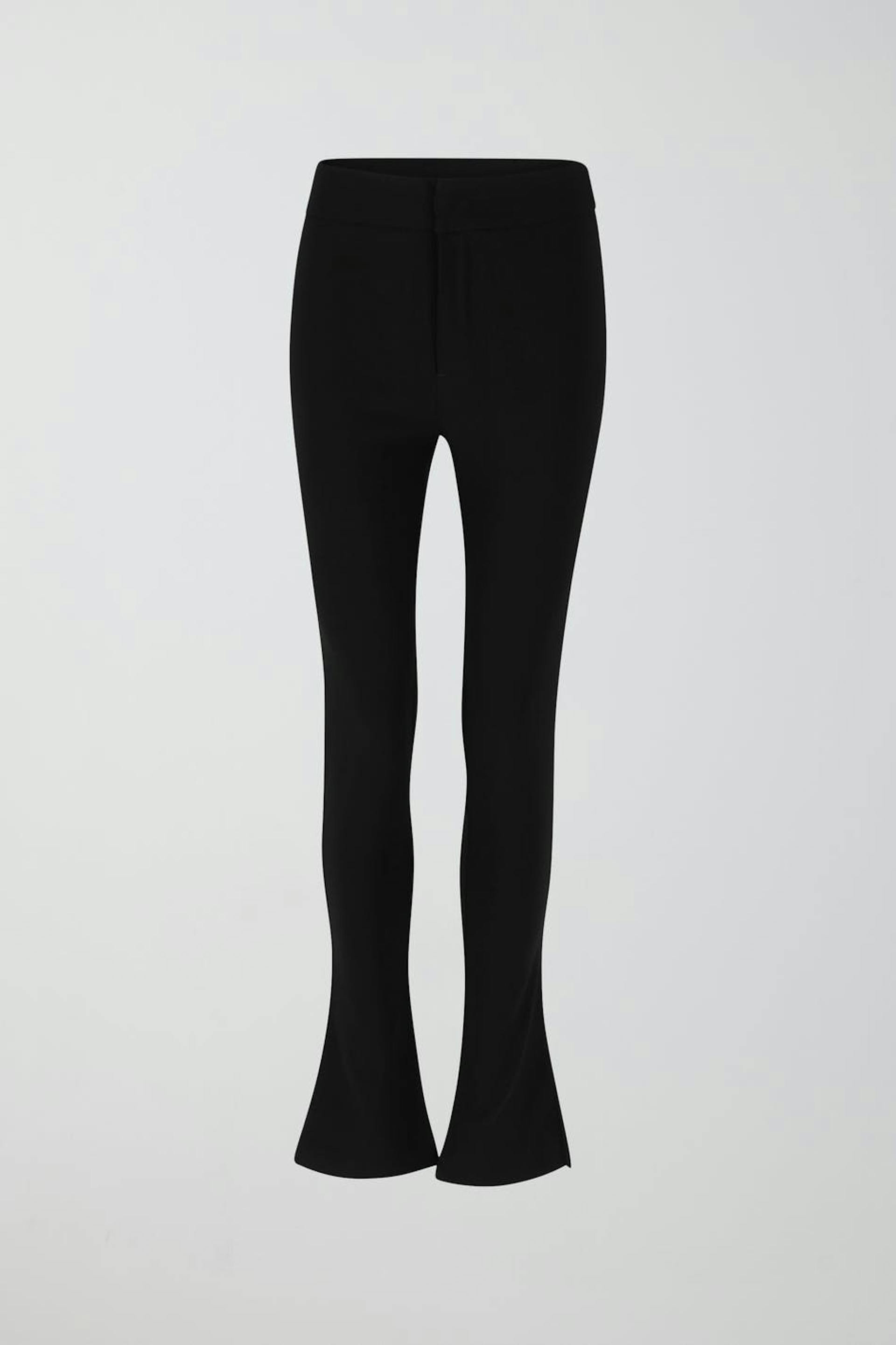 Flared suit trousers with slim fit. The trousers are black and have zip fly.