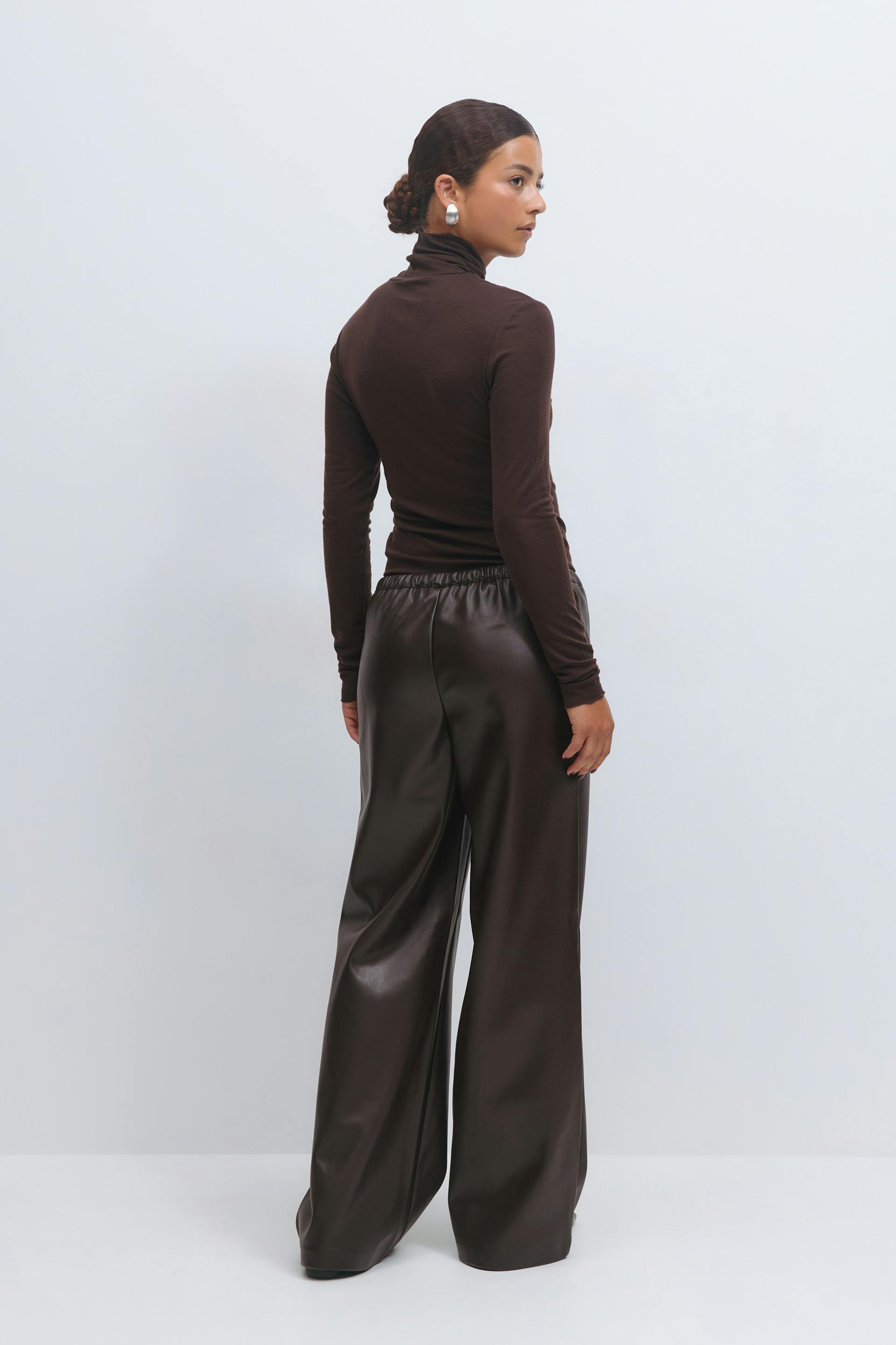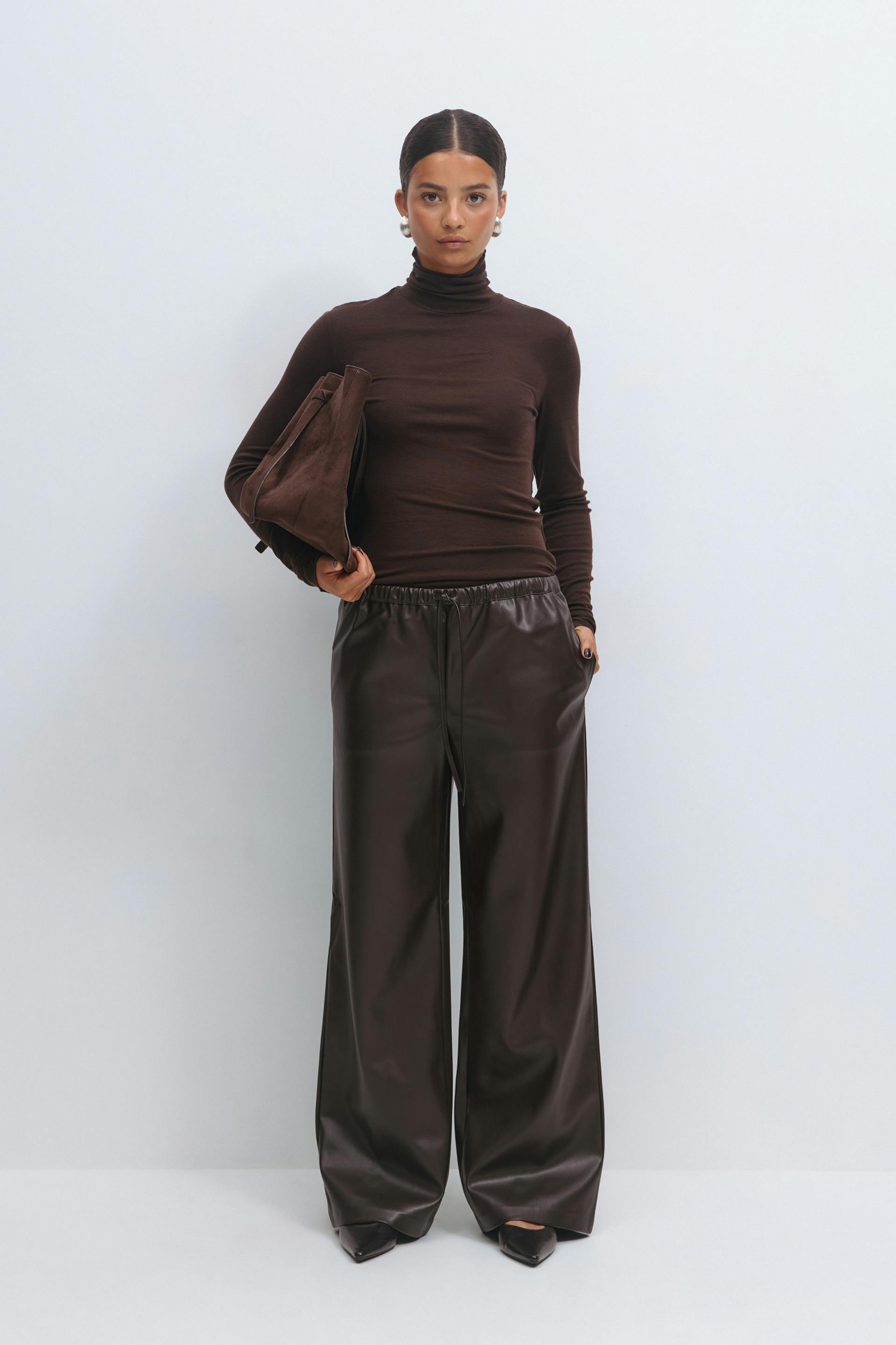 Wide drawstring pu trousers