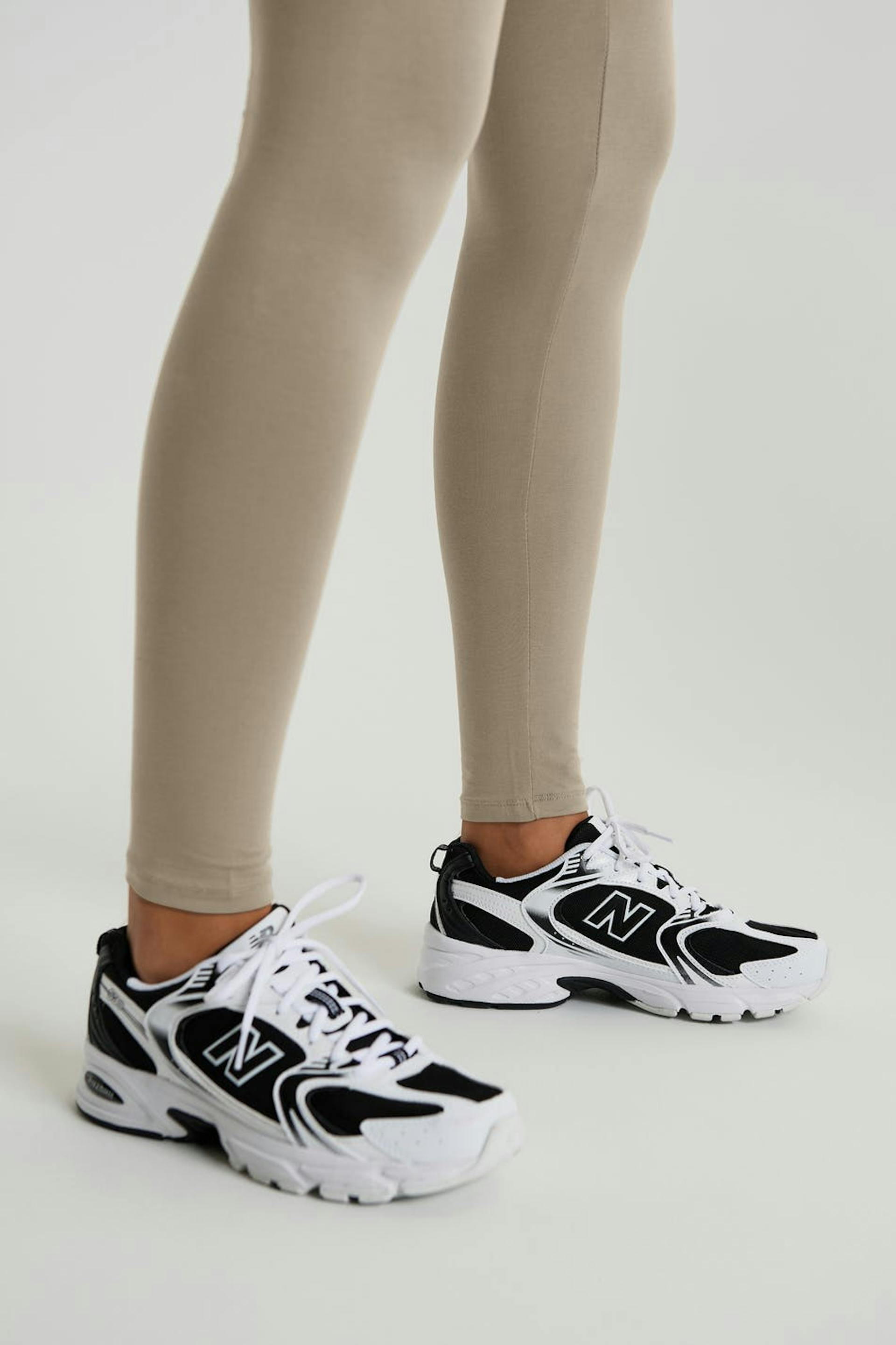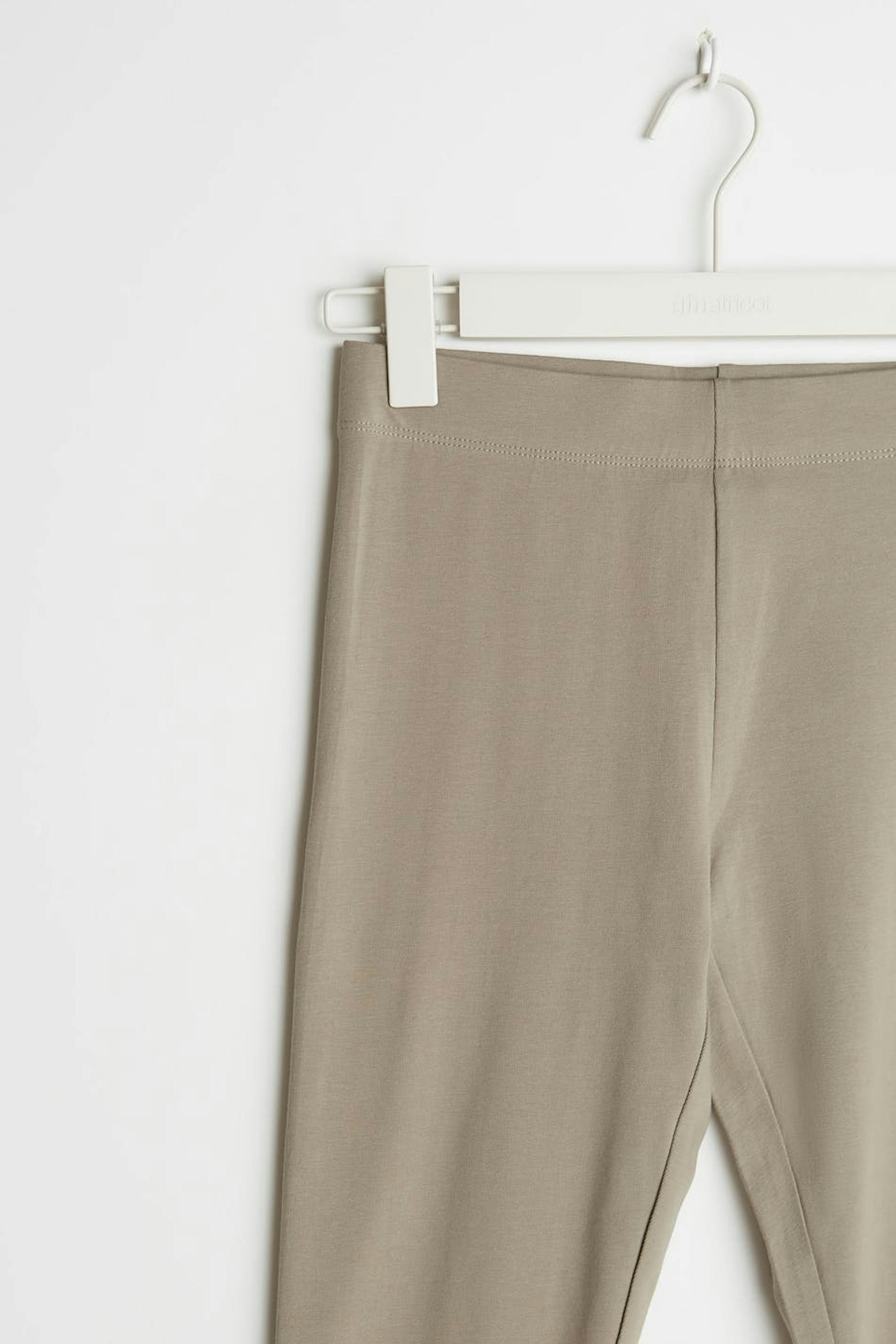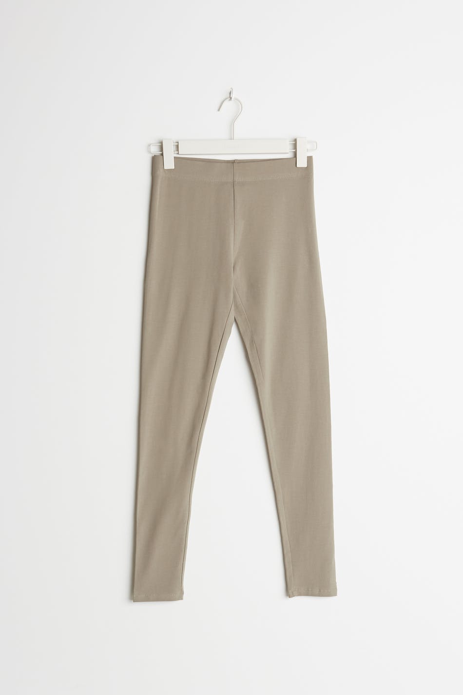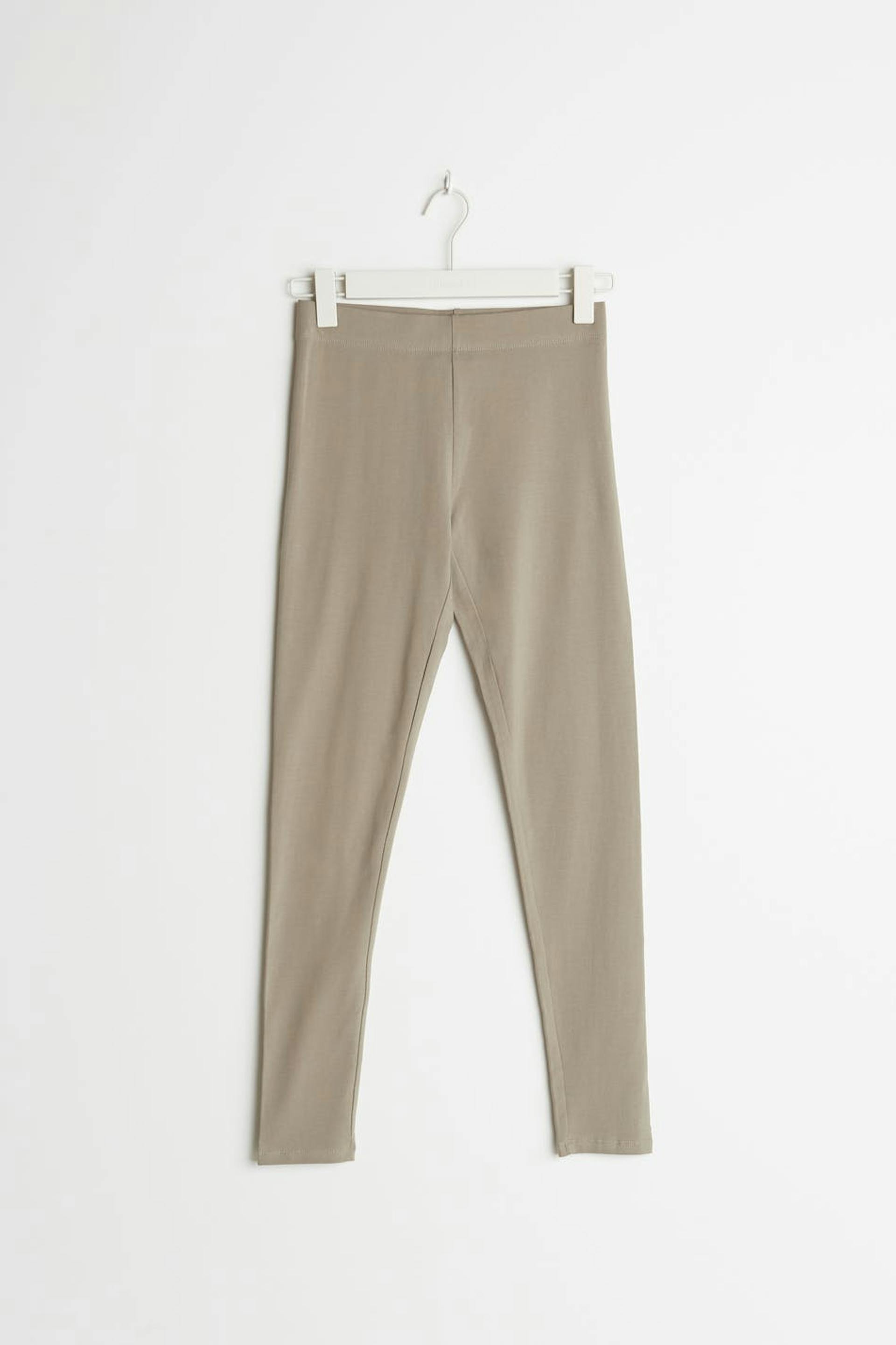 Leggings with a fitted fit. The leggings is beige.