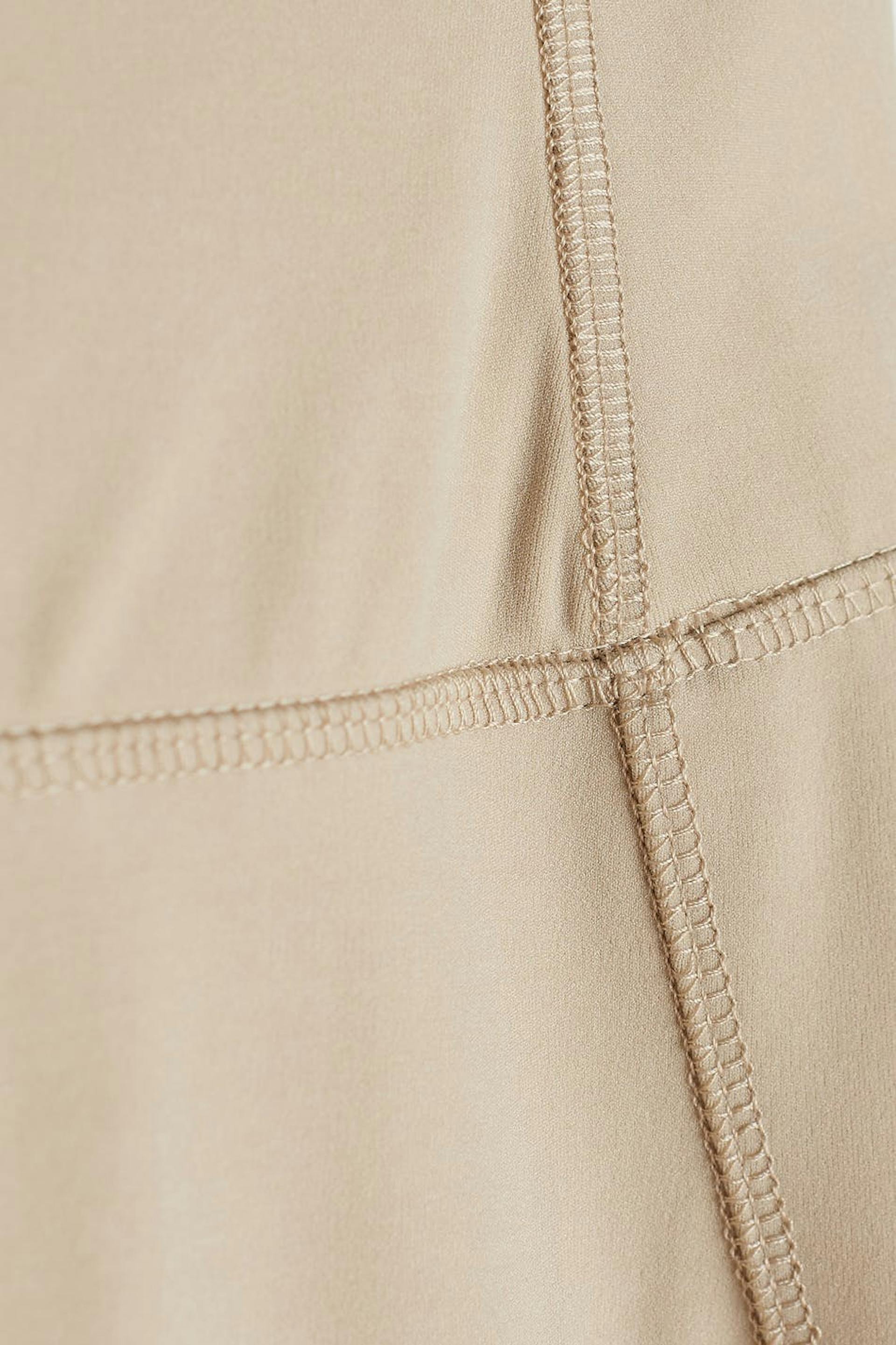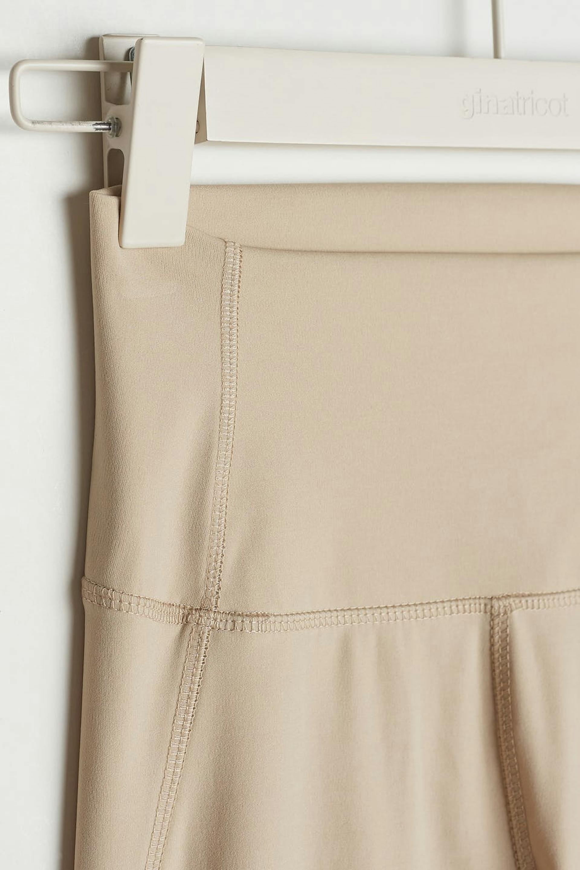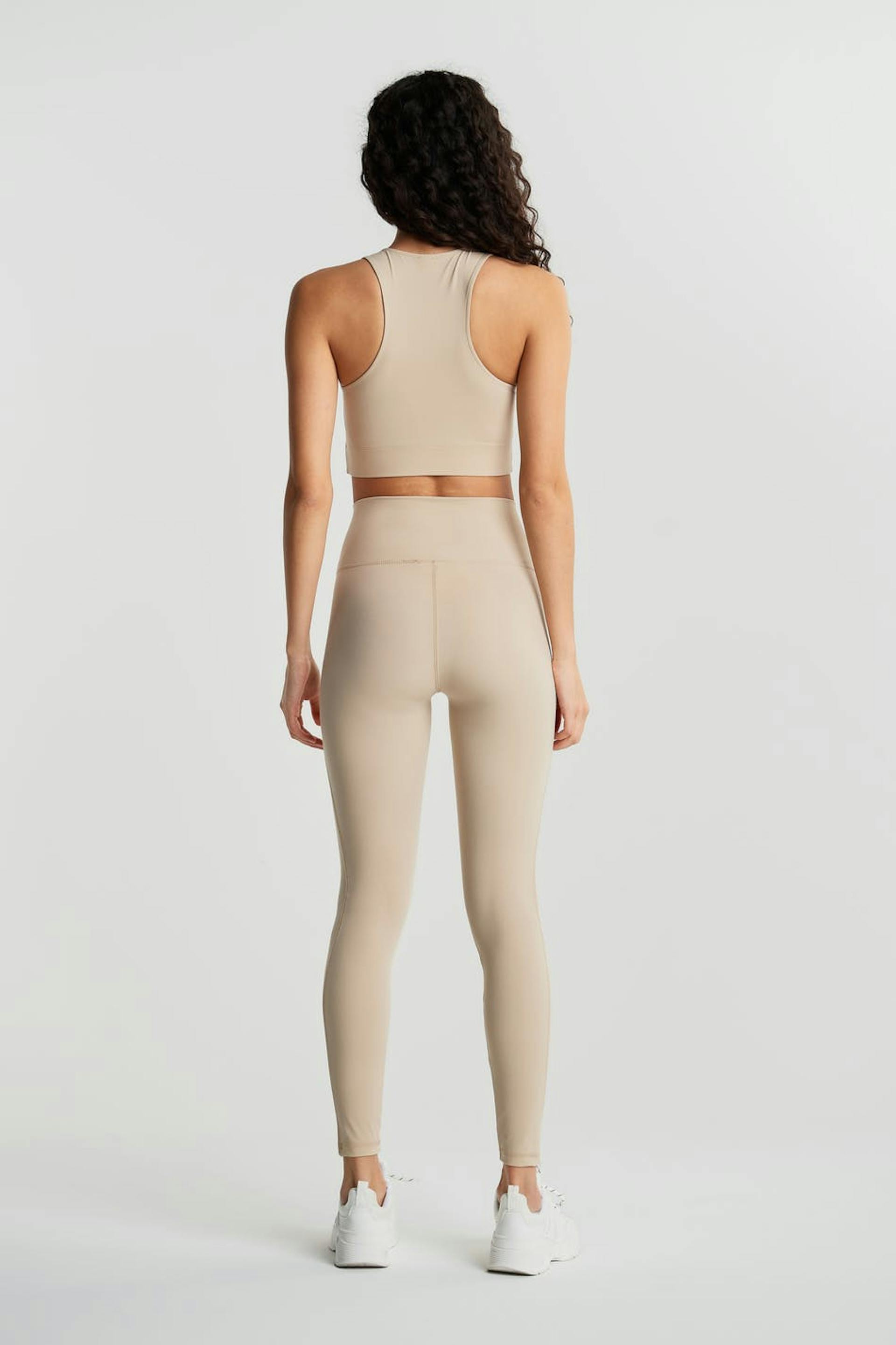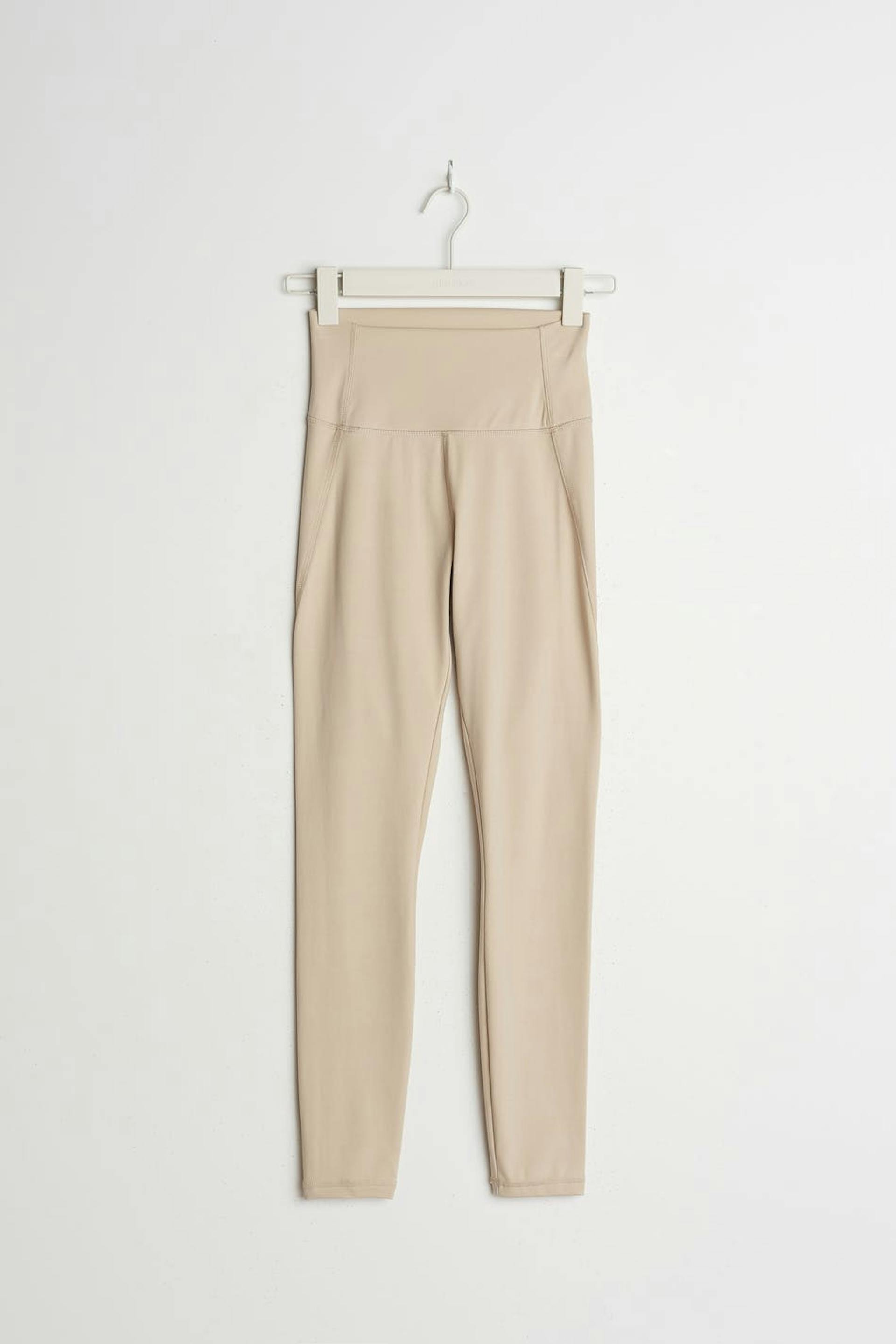 Soft leggings with a fitted fit. The leggings is beige and has a high waist.