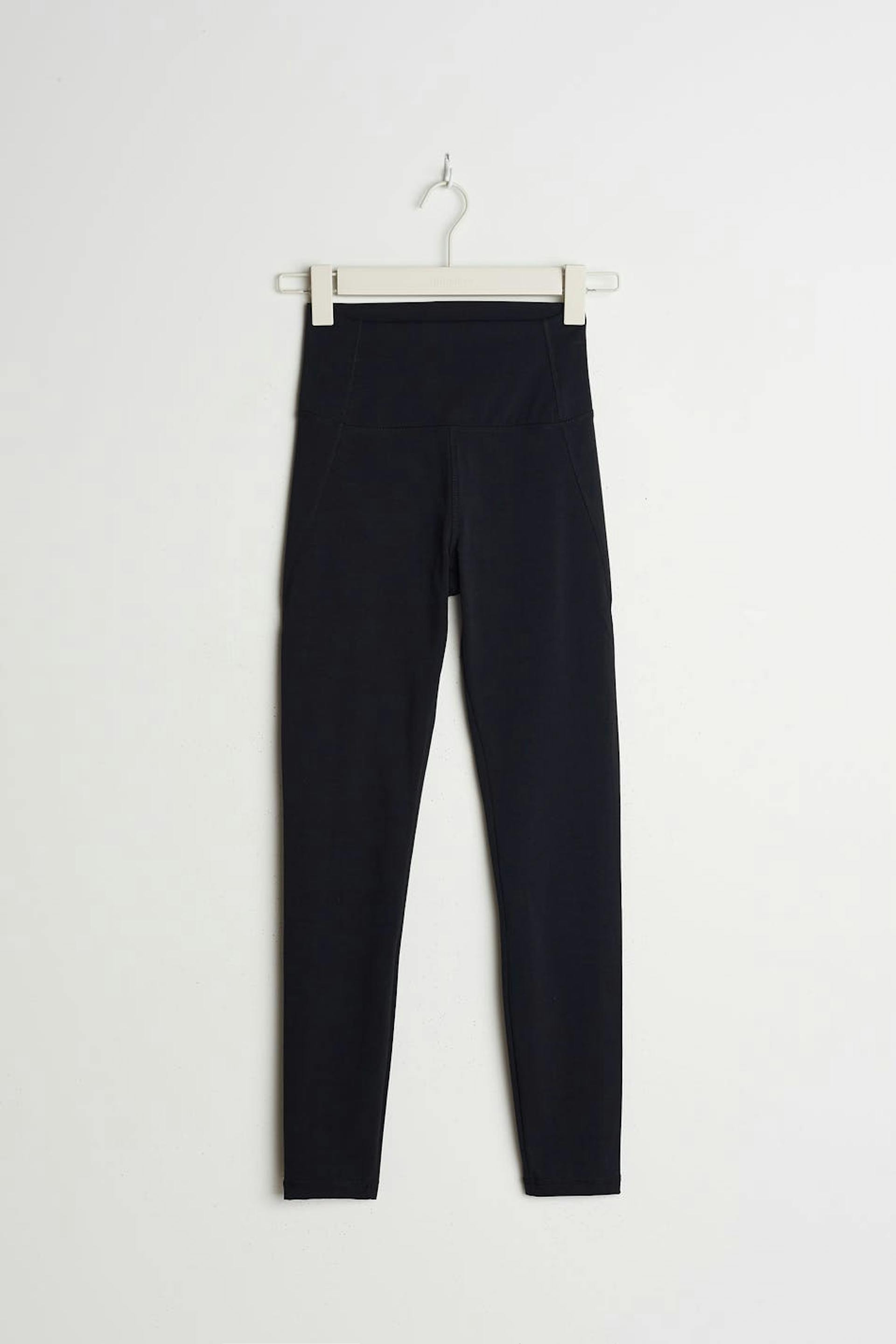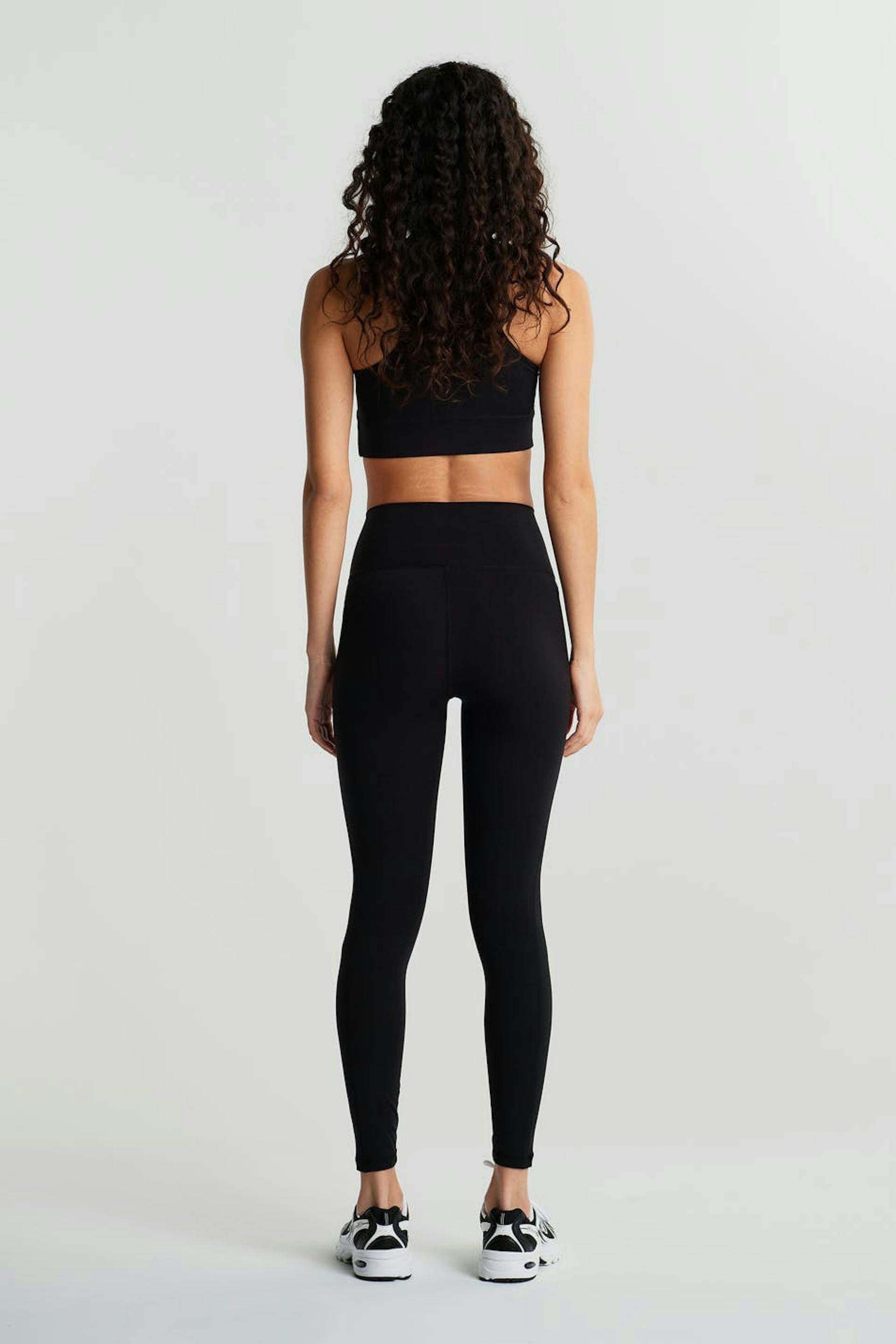 Soft leggings with a fitted fit. The leggings is black and has a high waist.