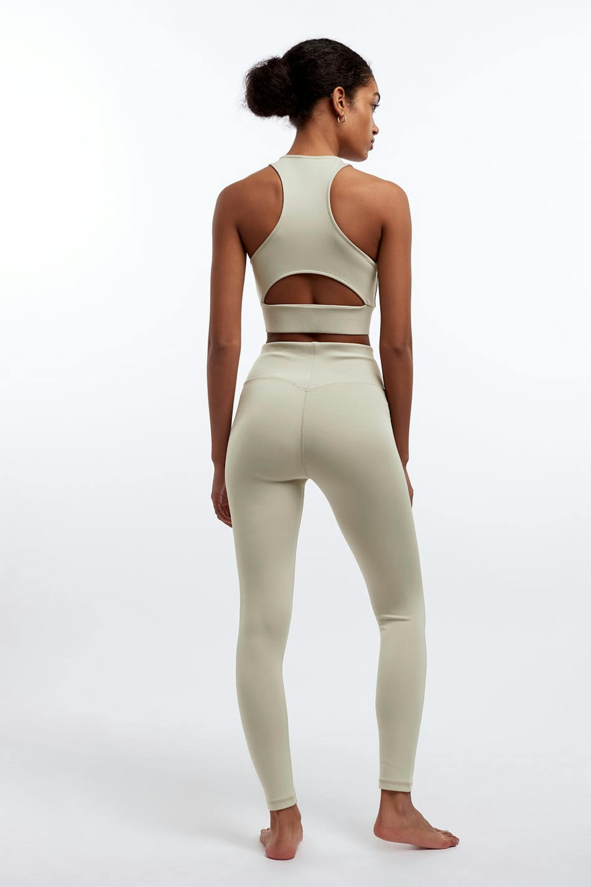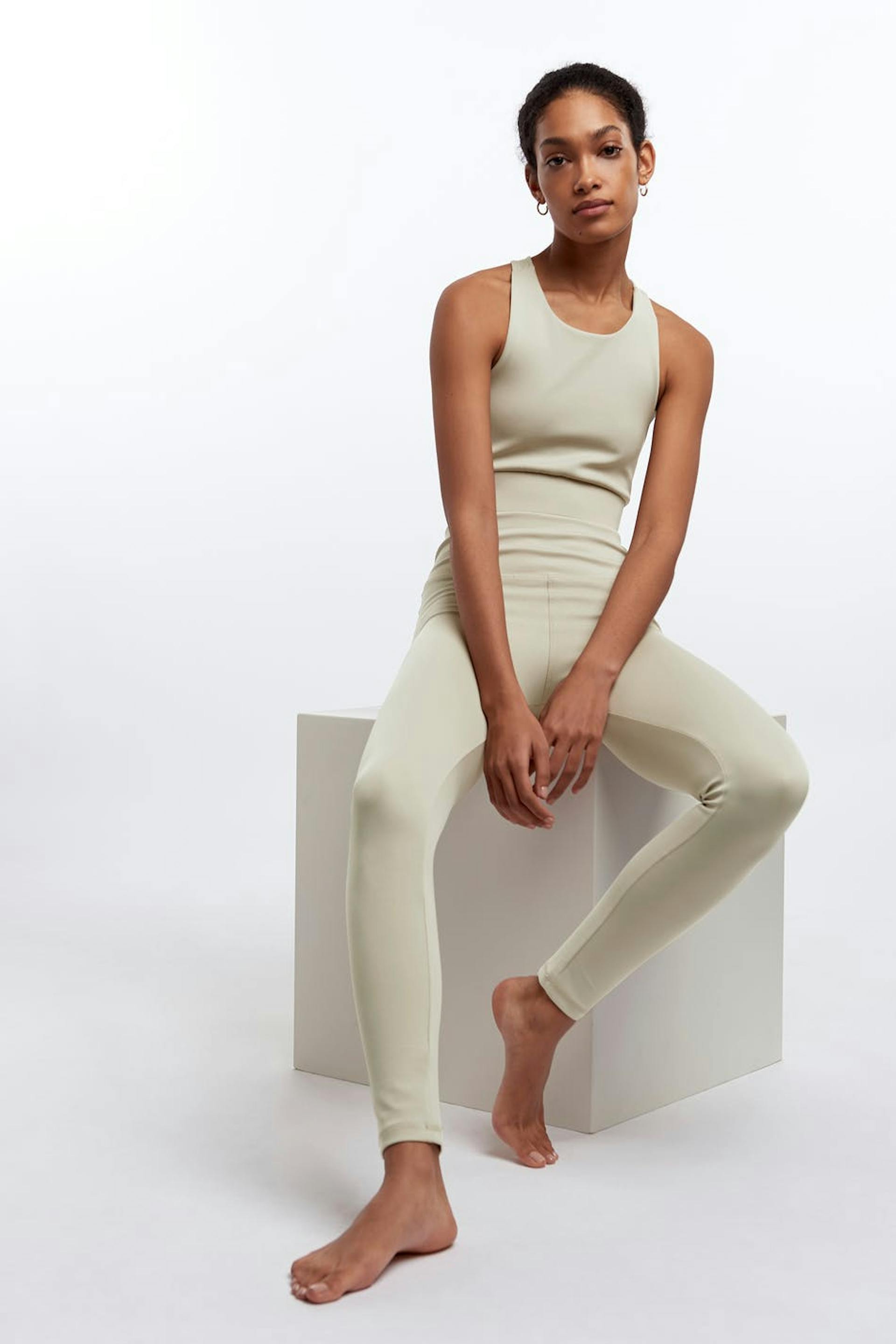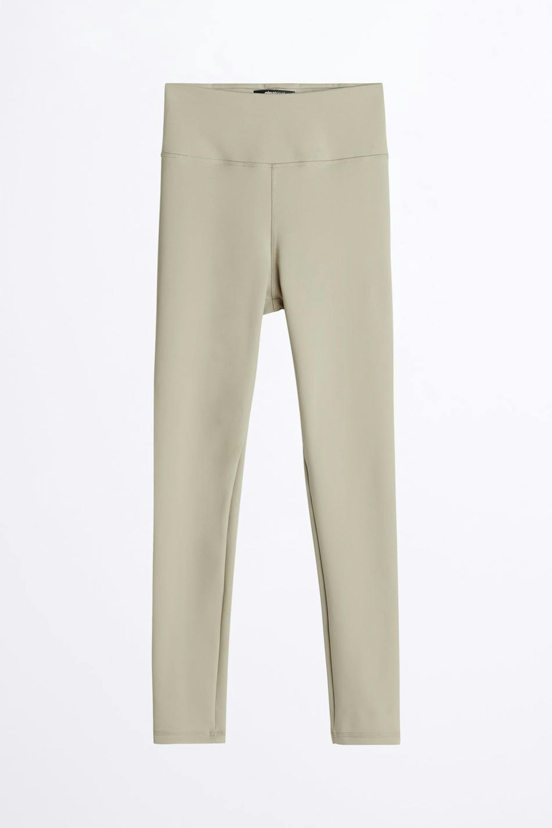 Leggings with a fitted fit. The leggings is beige and has a high waist. It has an elastic band at the waist.