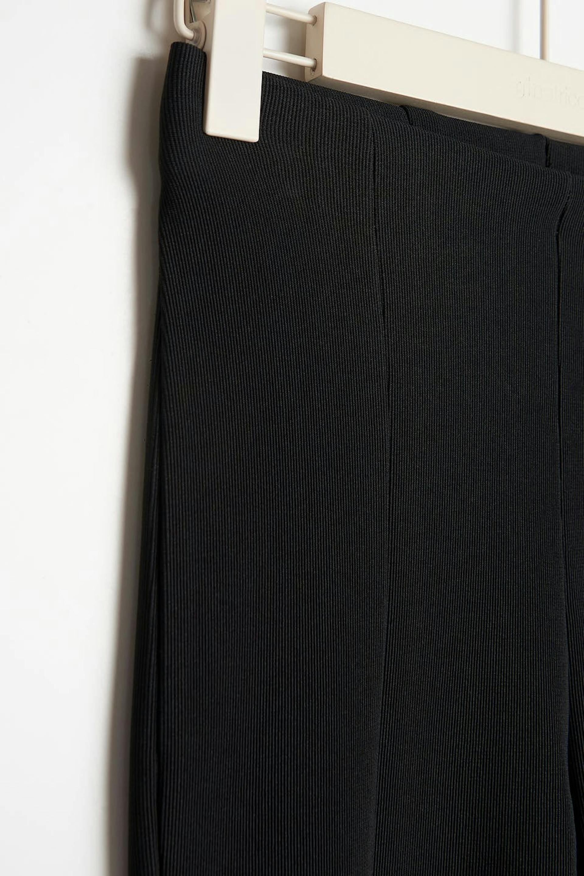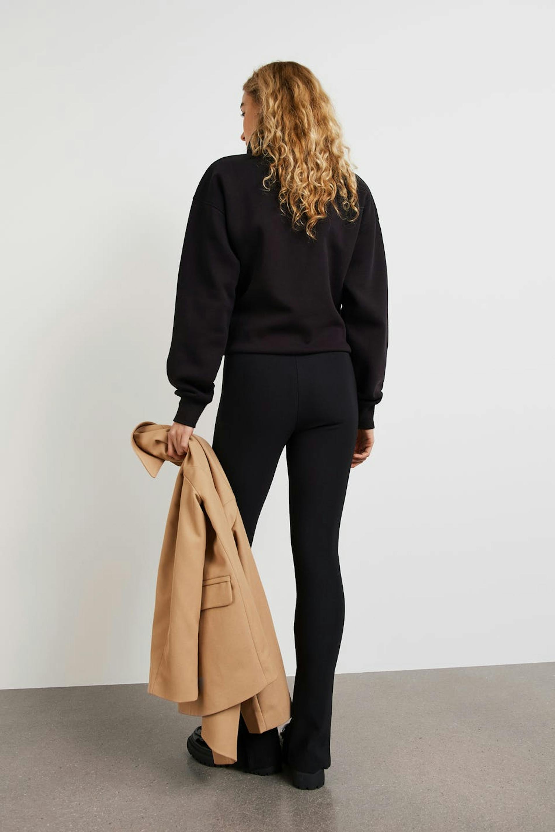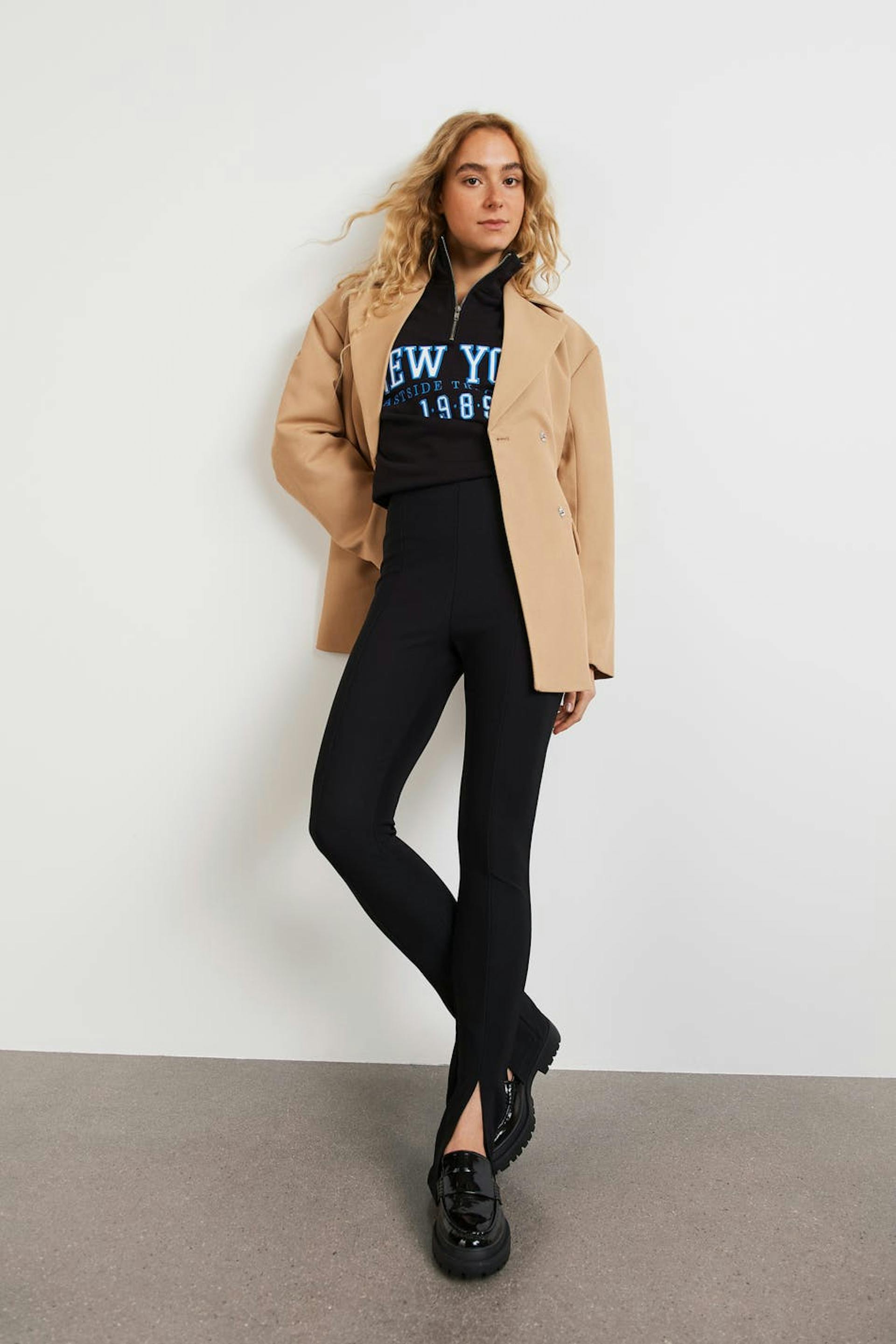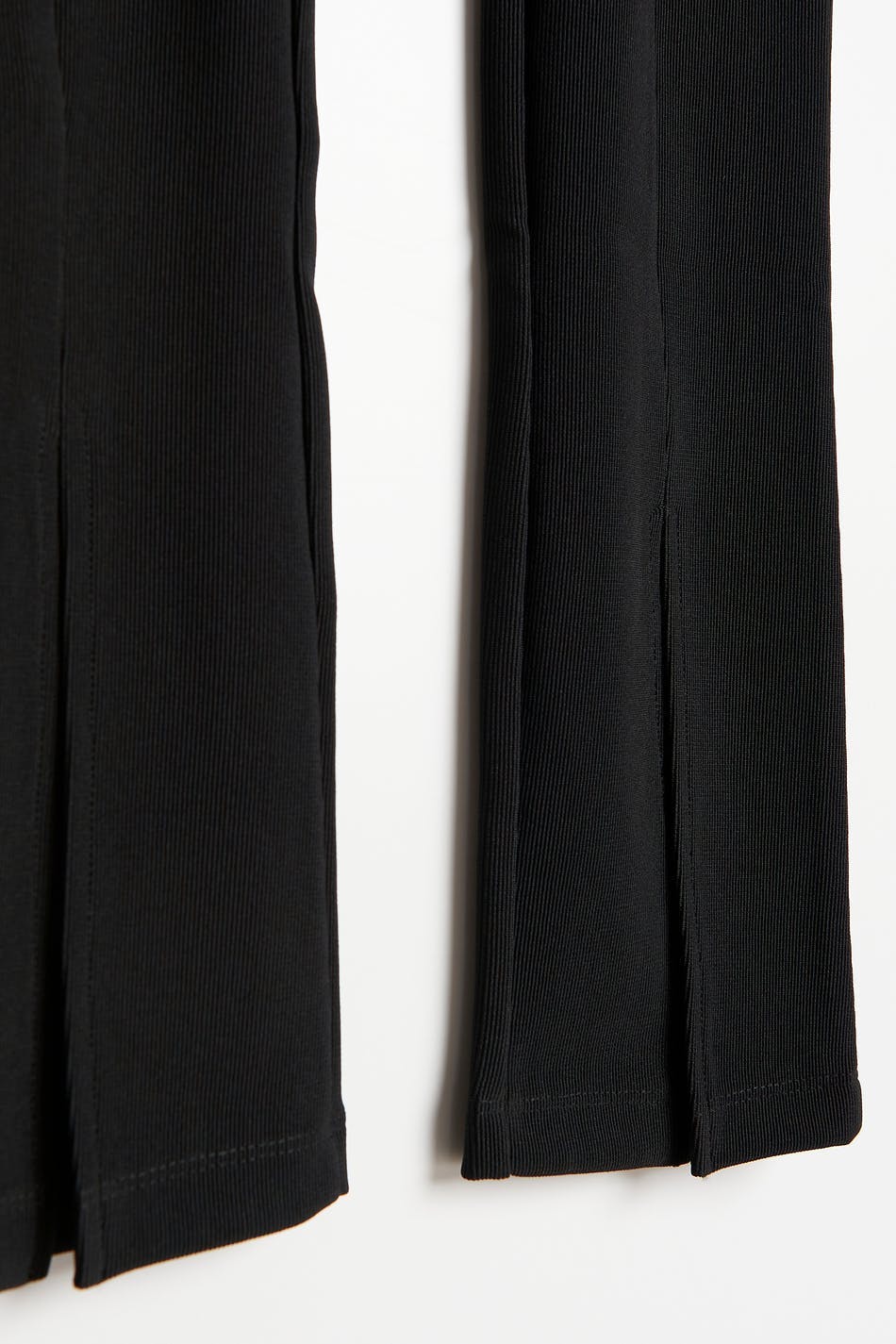 Leggings with slit. The leggings are black and have a treaded fabric in jersey. They have an elastic at the waist and a fitted fit.