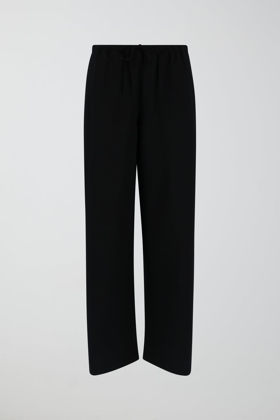 Trousers in linen-blend with wide trouser legs. The trousers are black and have mid high waist. They have side pockets and slim waistband with elastic and drawstring.