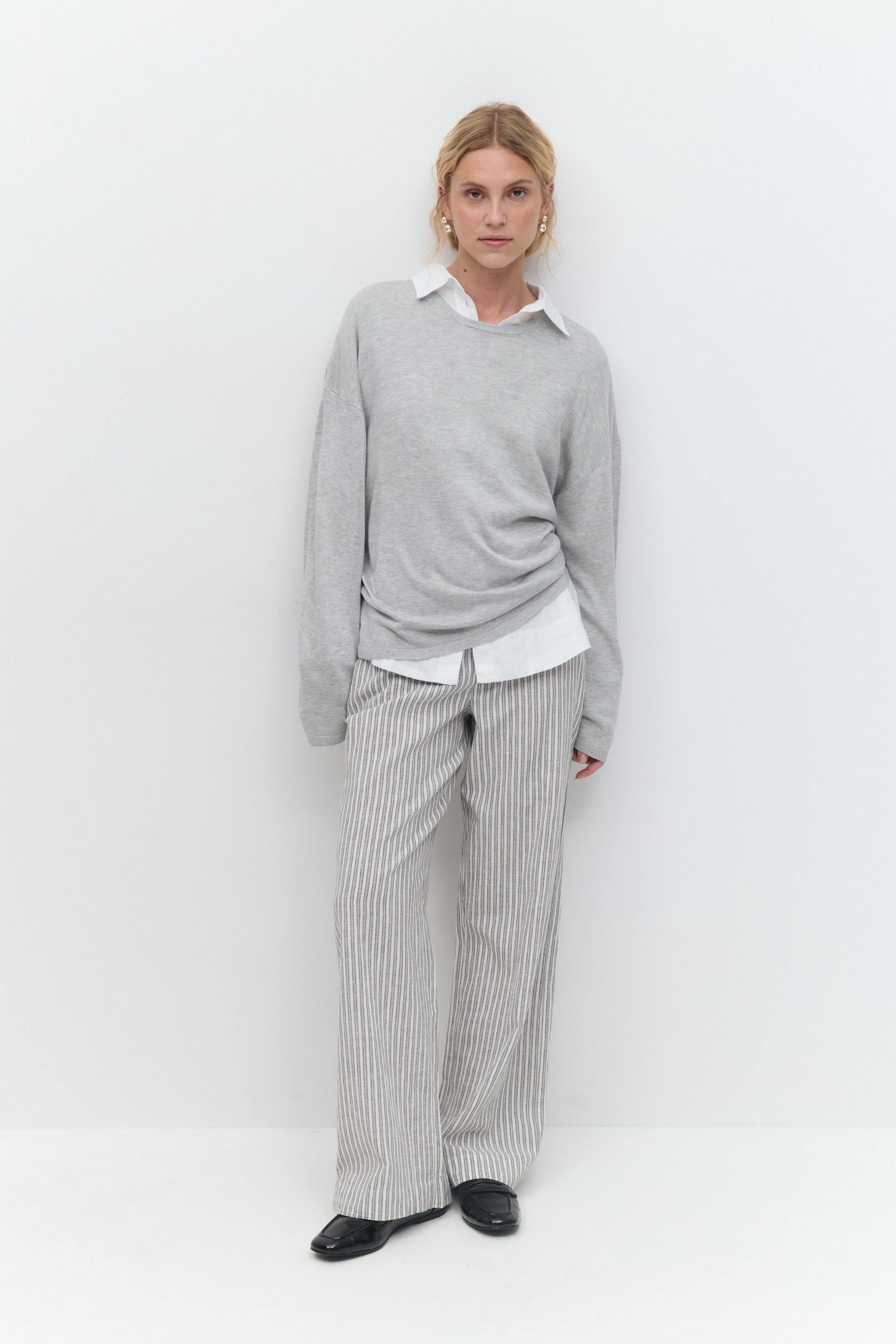 Wide linen blend trousers