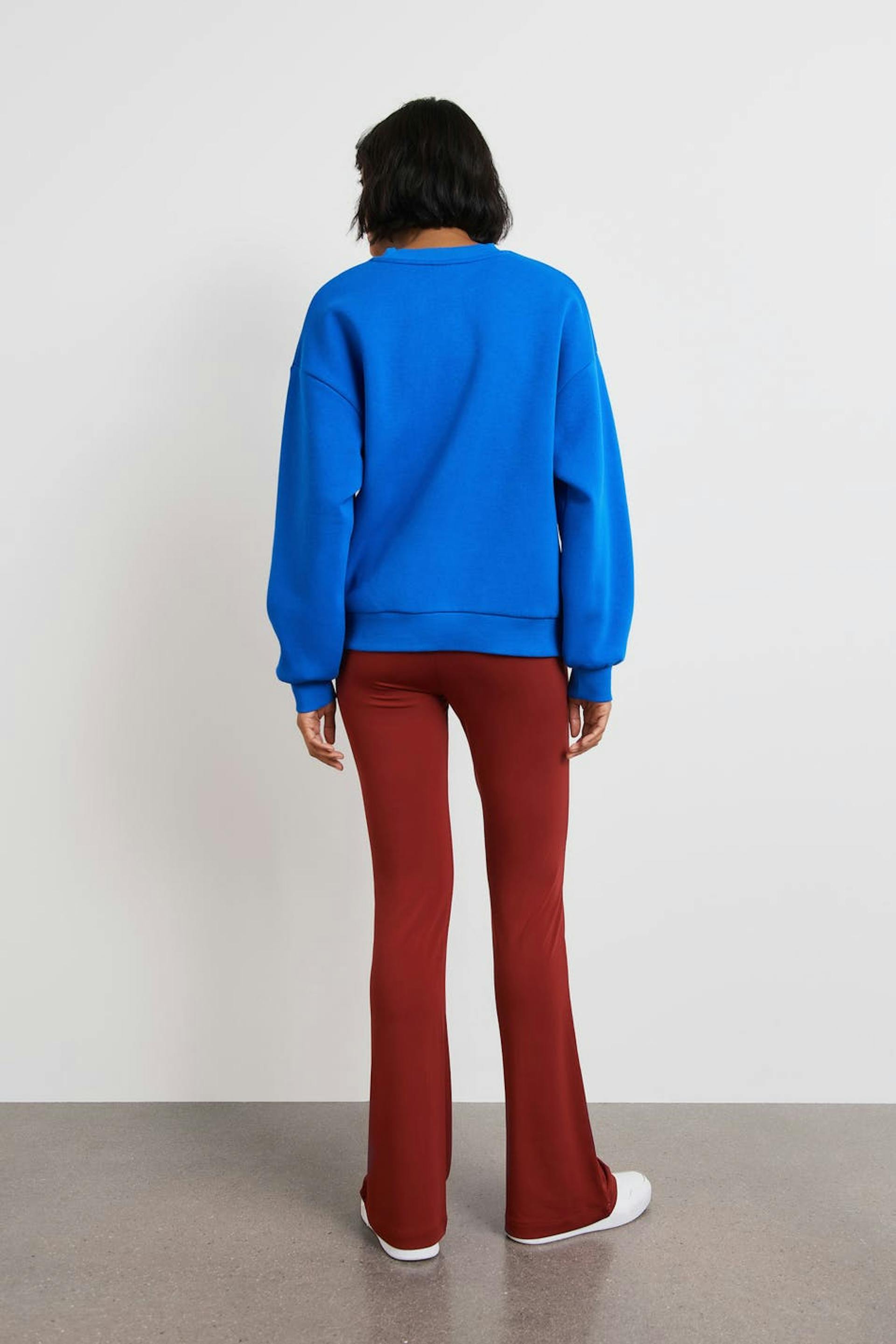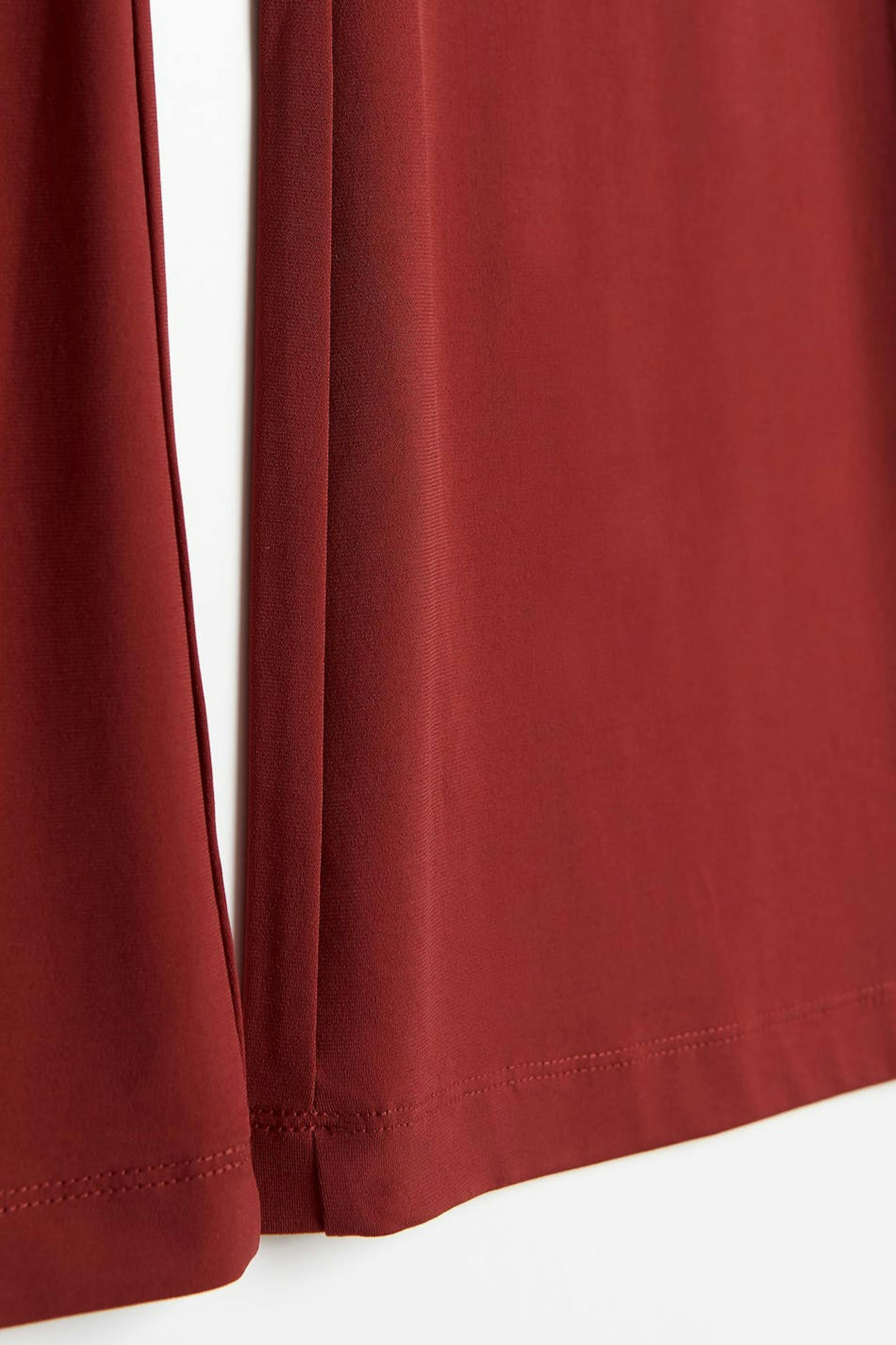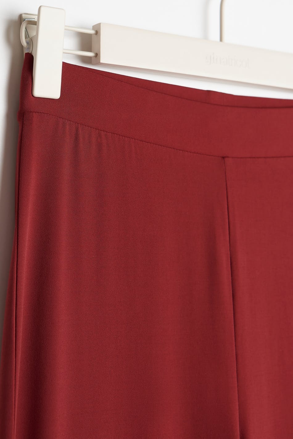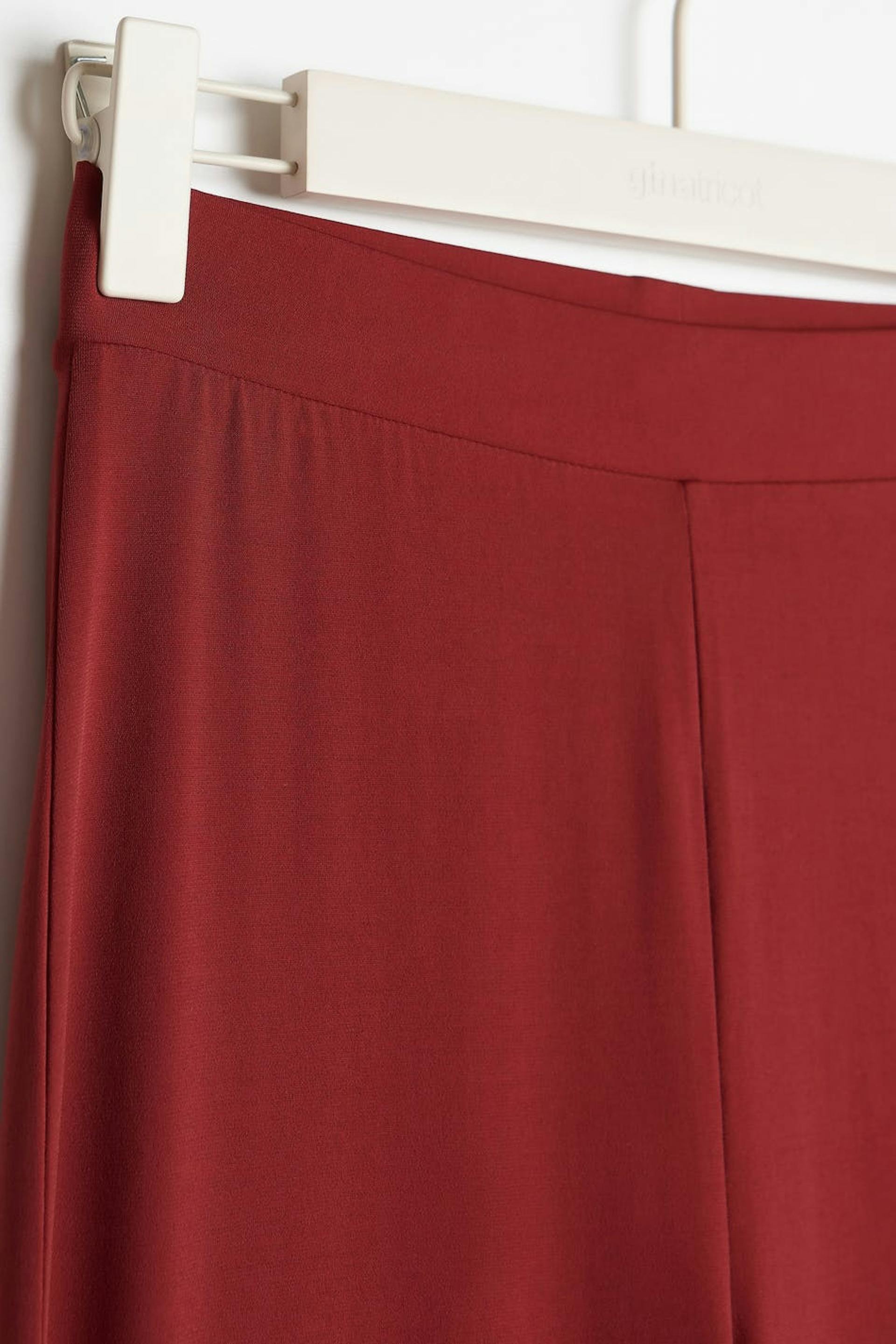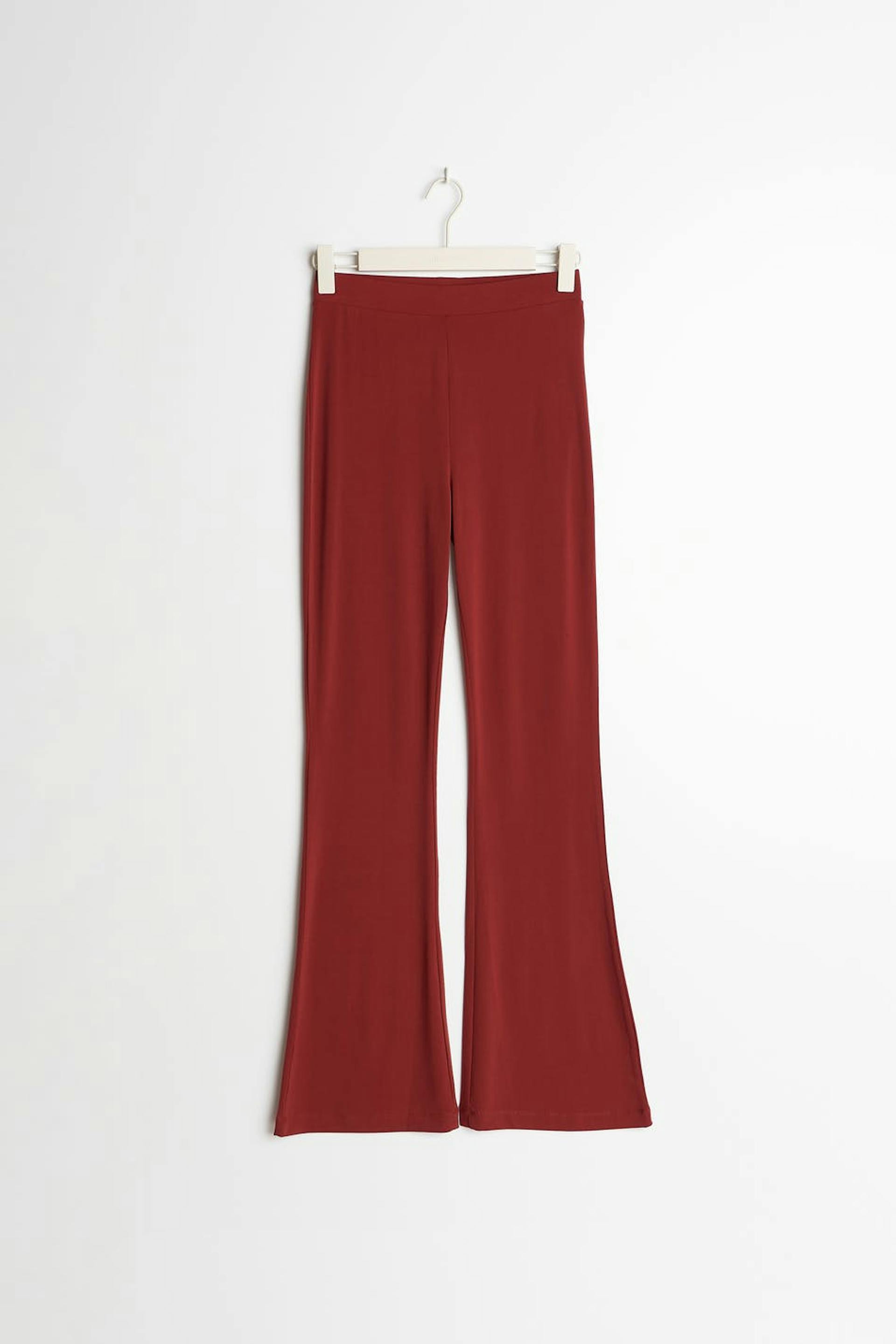 Flared trousers with a regular fit. The trousers are red and have elastic at the waist. They are made of jersey.