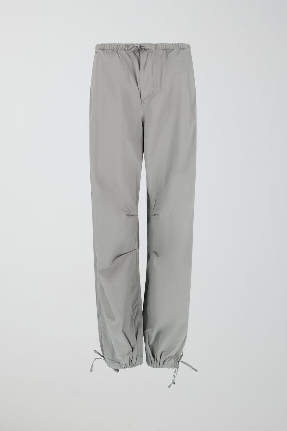 Petite parachute trousers in soft cotton with wide legs. The trousers are grey and have a sporty design with self-tie drawstrings at the waist and at the end of the legs. They have side pockets, welt pockets with flaps at the back and elastic at the waist. Perfect for those who are 160 cm (5 ft 3 in.) or shorter.