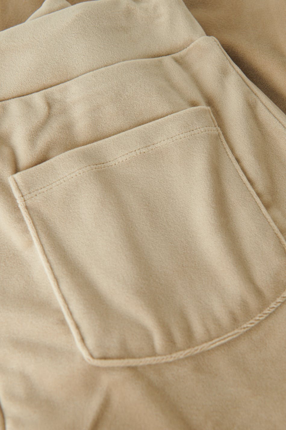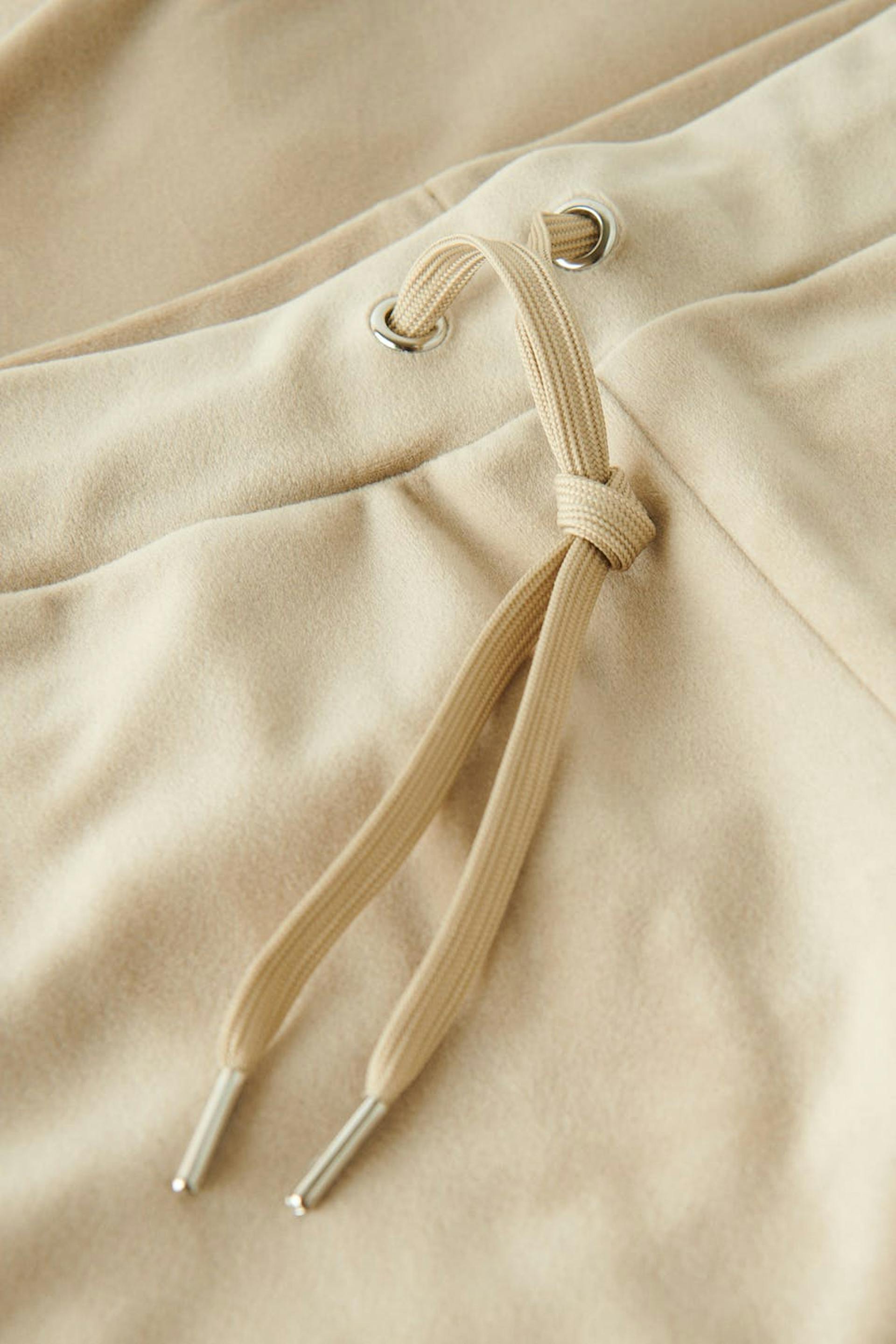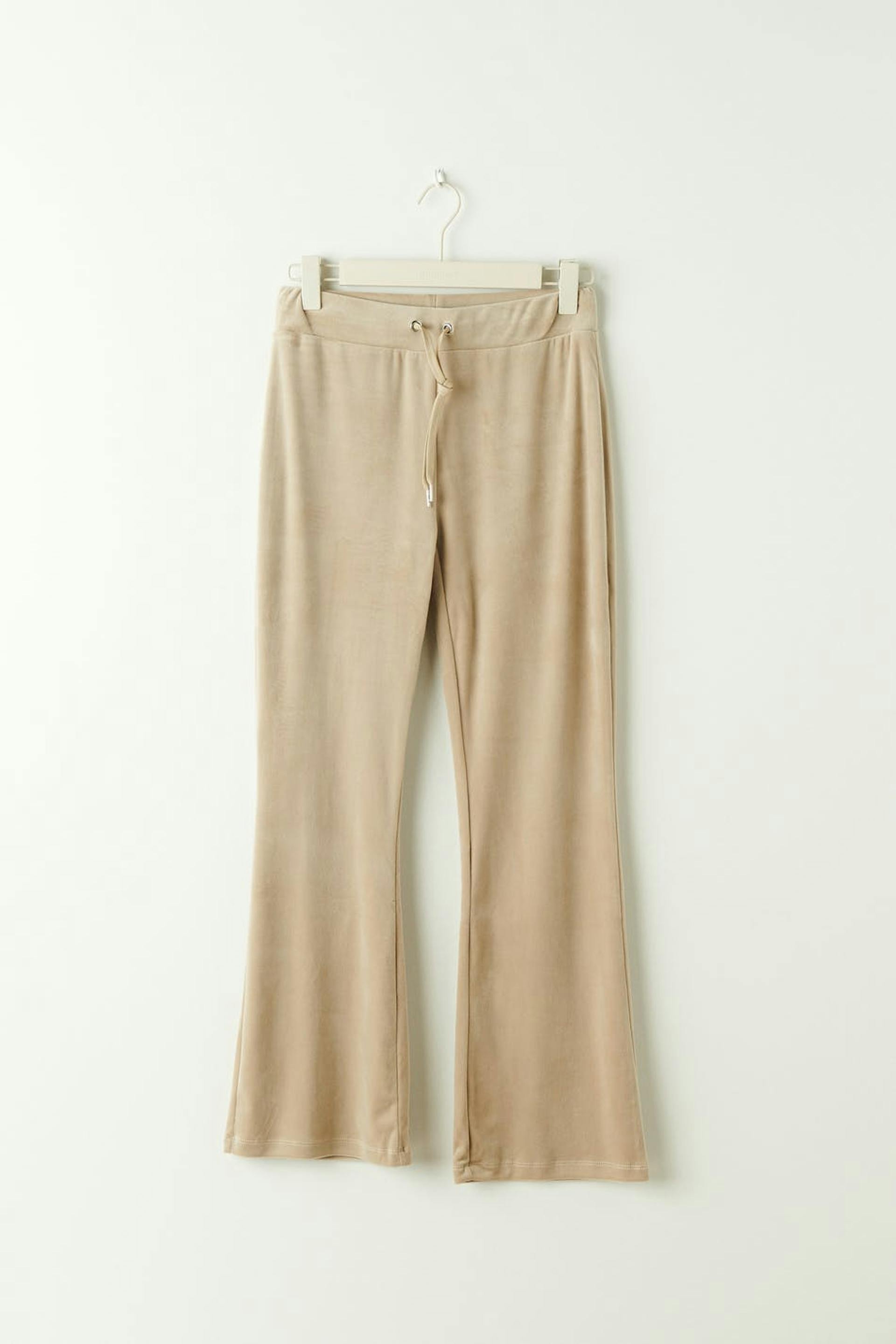 Petite lounge pants in velour with pockets at the back. The trousers are beige and have a soft elastic at the waist with drawstrings. Perfect for those who are 160 cm (5 ft 3 in.) or shorter.