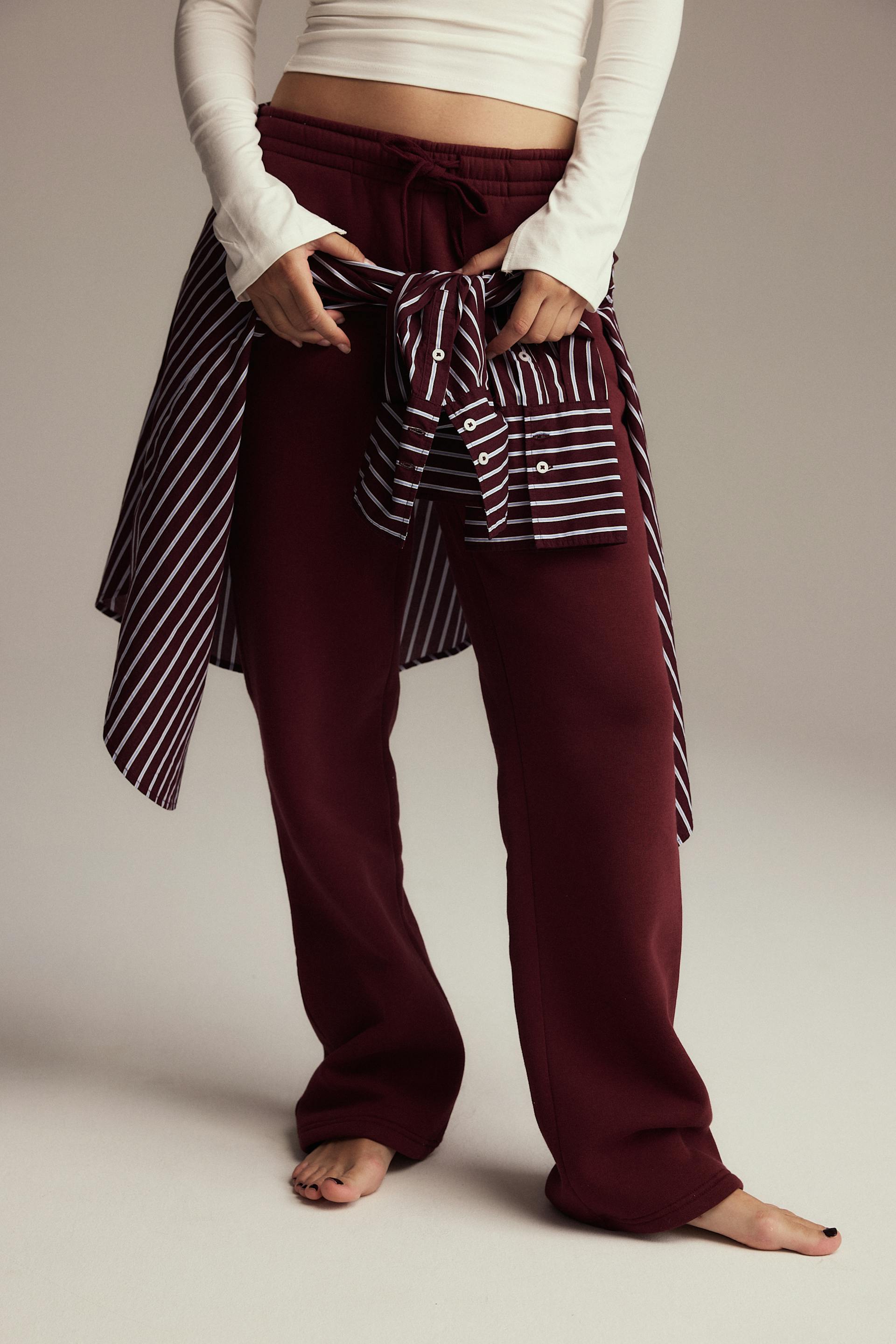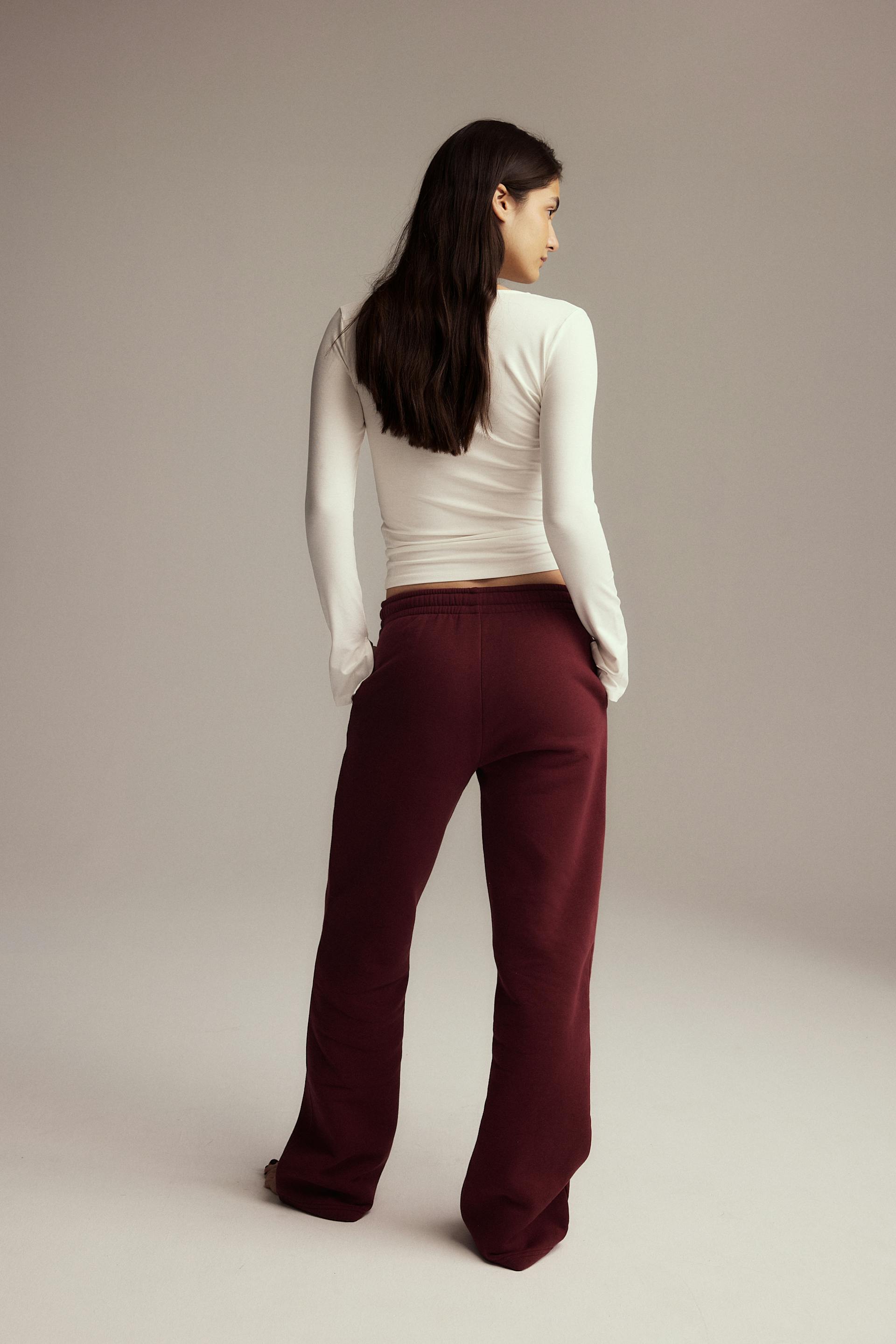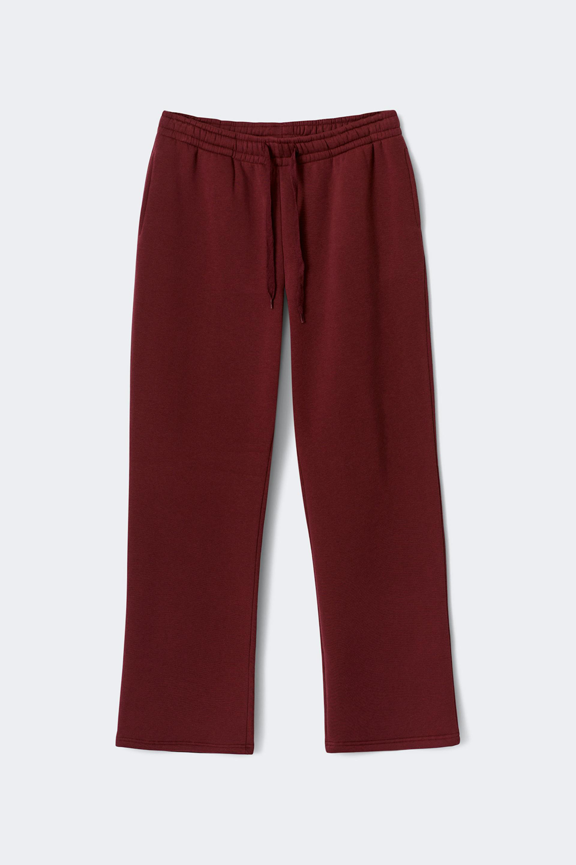 Straight fit sweatpants with a soft brushed inside. Regular waist with a waist tie for an easy fit. In the color wine. Never goes out of style.