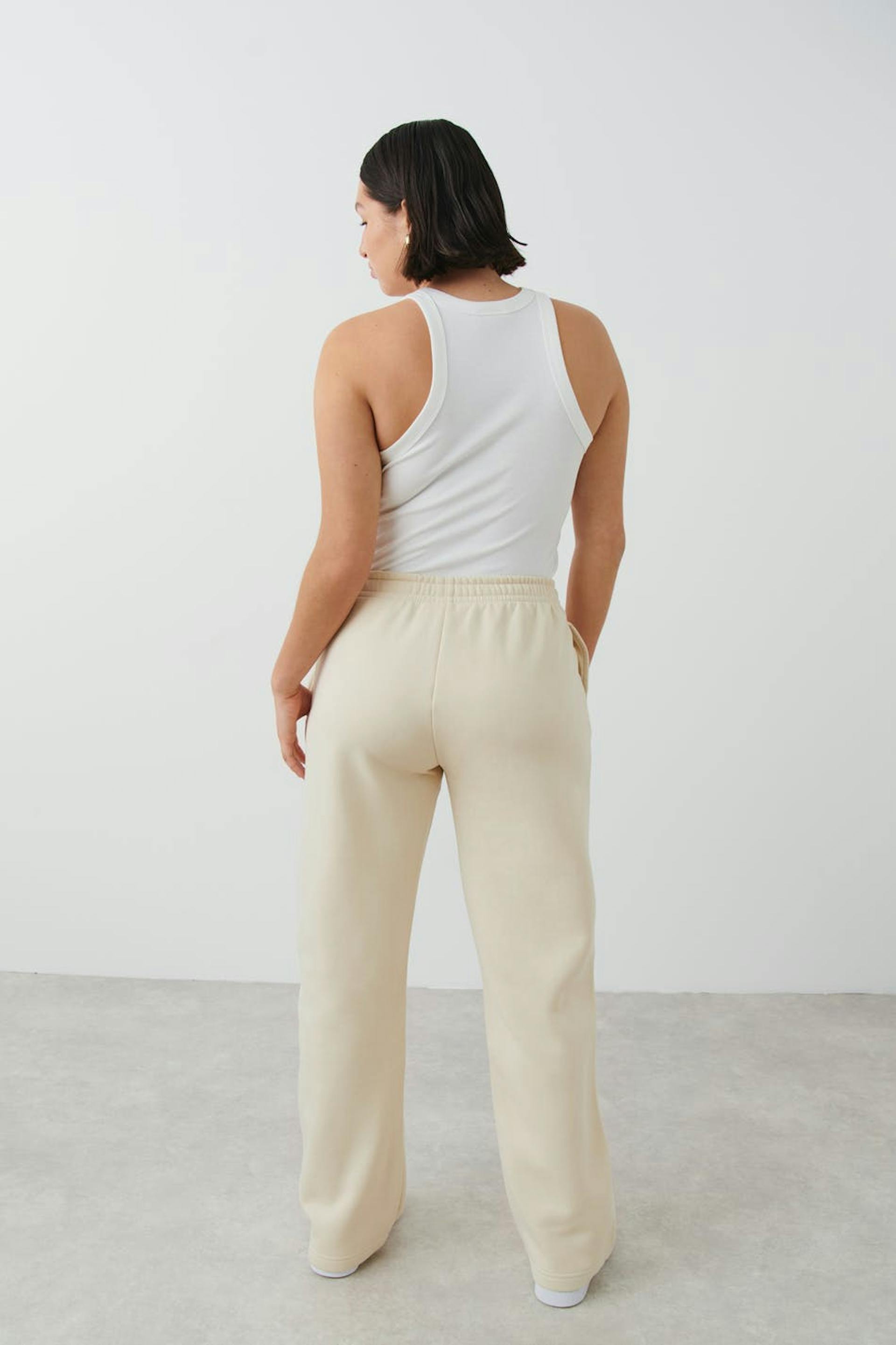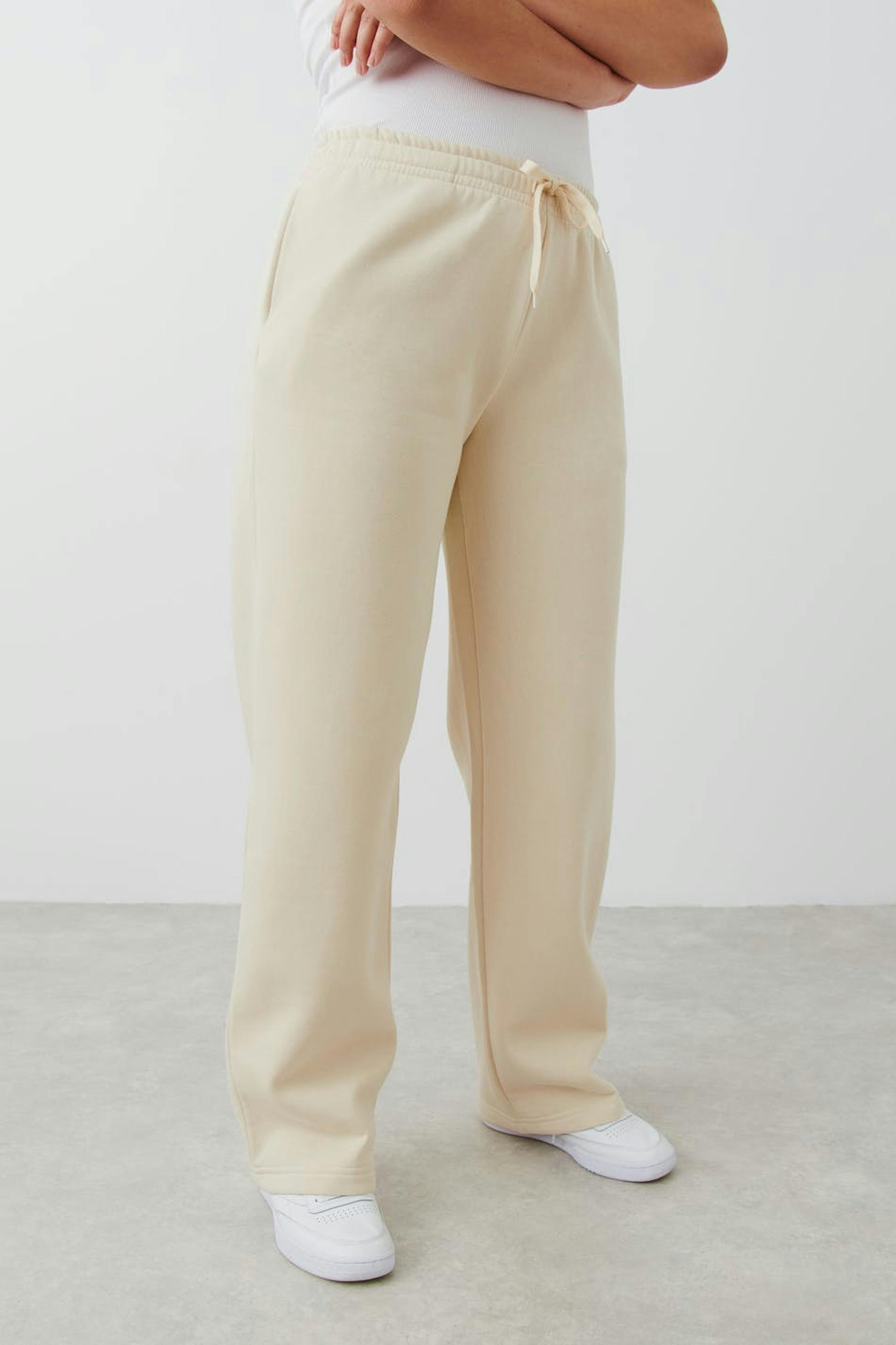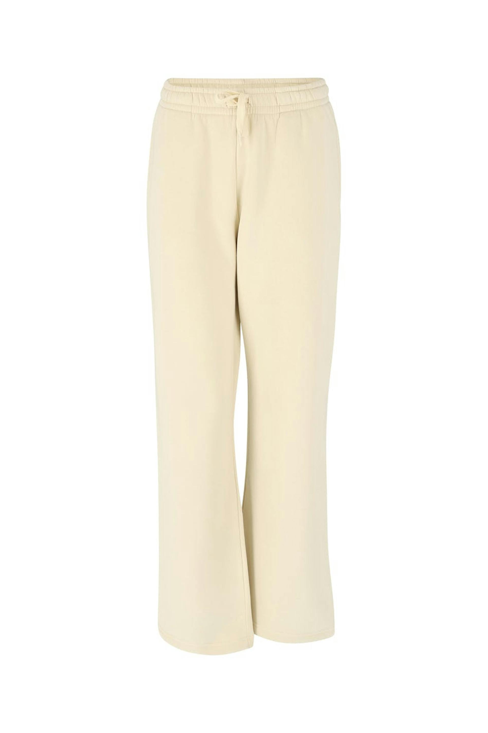 Tracksuit trousers with normal fit. The trousers are beige and have pockets in the sides. They have straight legs and elastic at the waist with self-tie at the front.