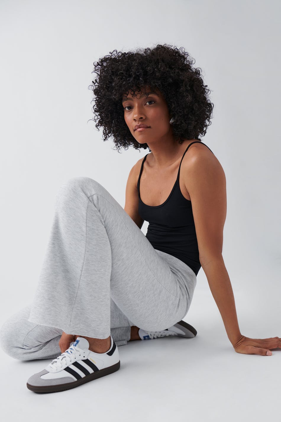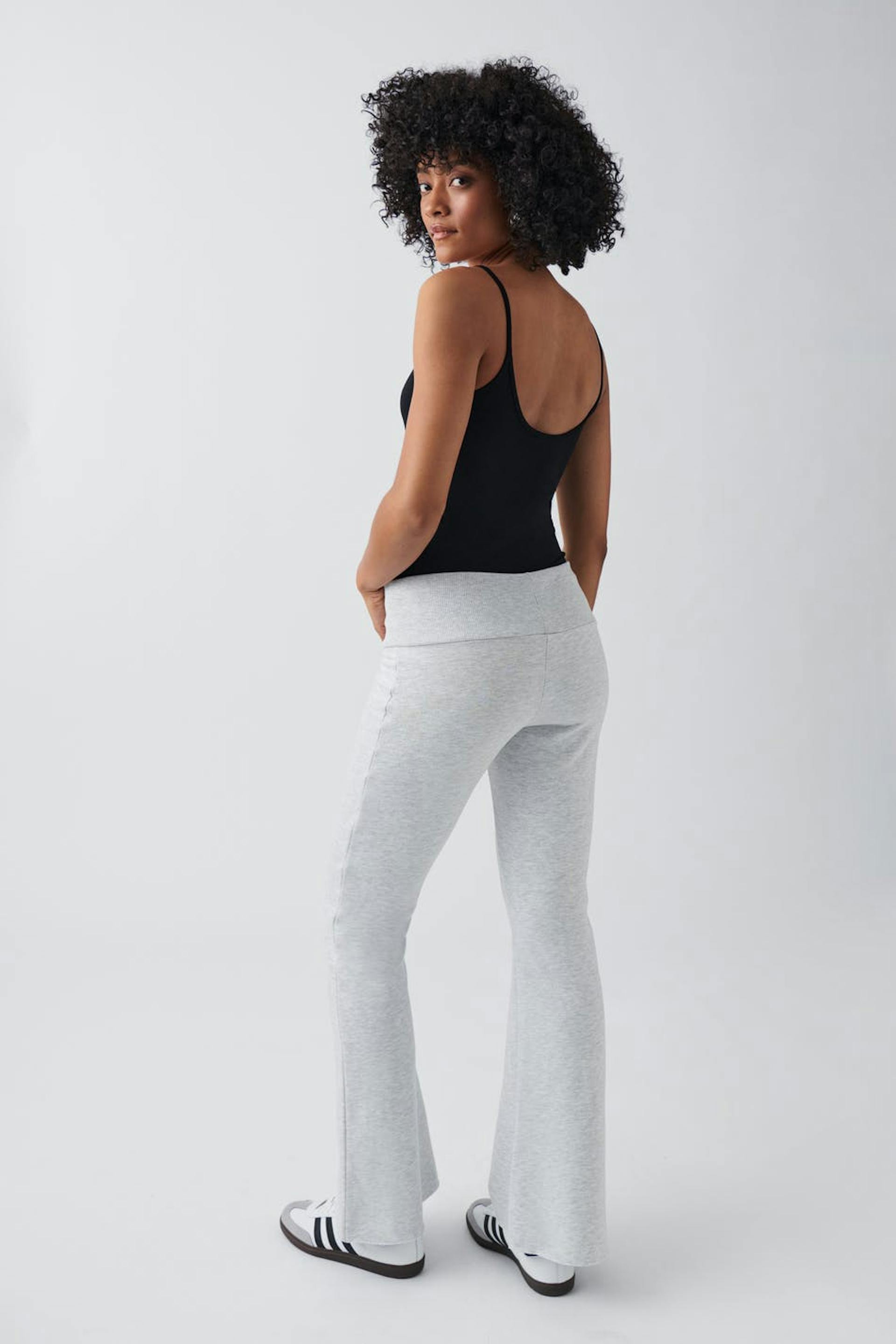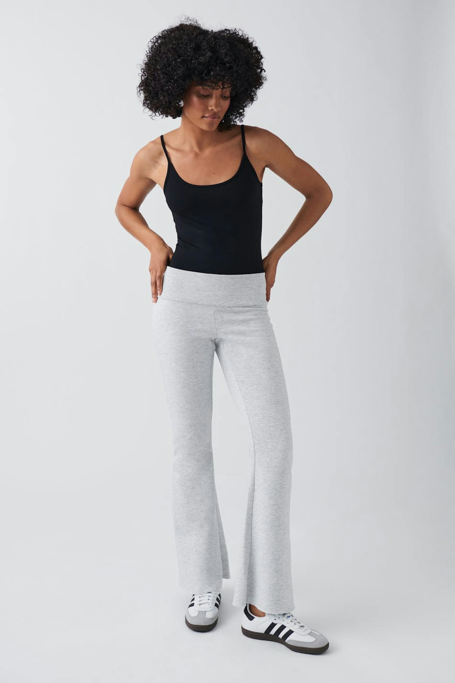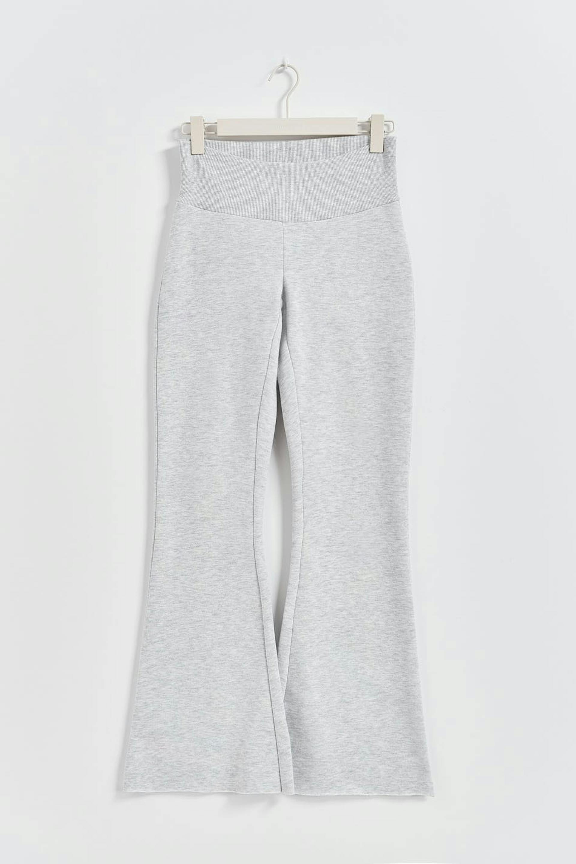Low-waisted tracksuit trousers in jersey with flared legs. The trousers are grey and have wide elastic band at the waist. They have regular fit and legs with full length.