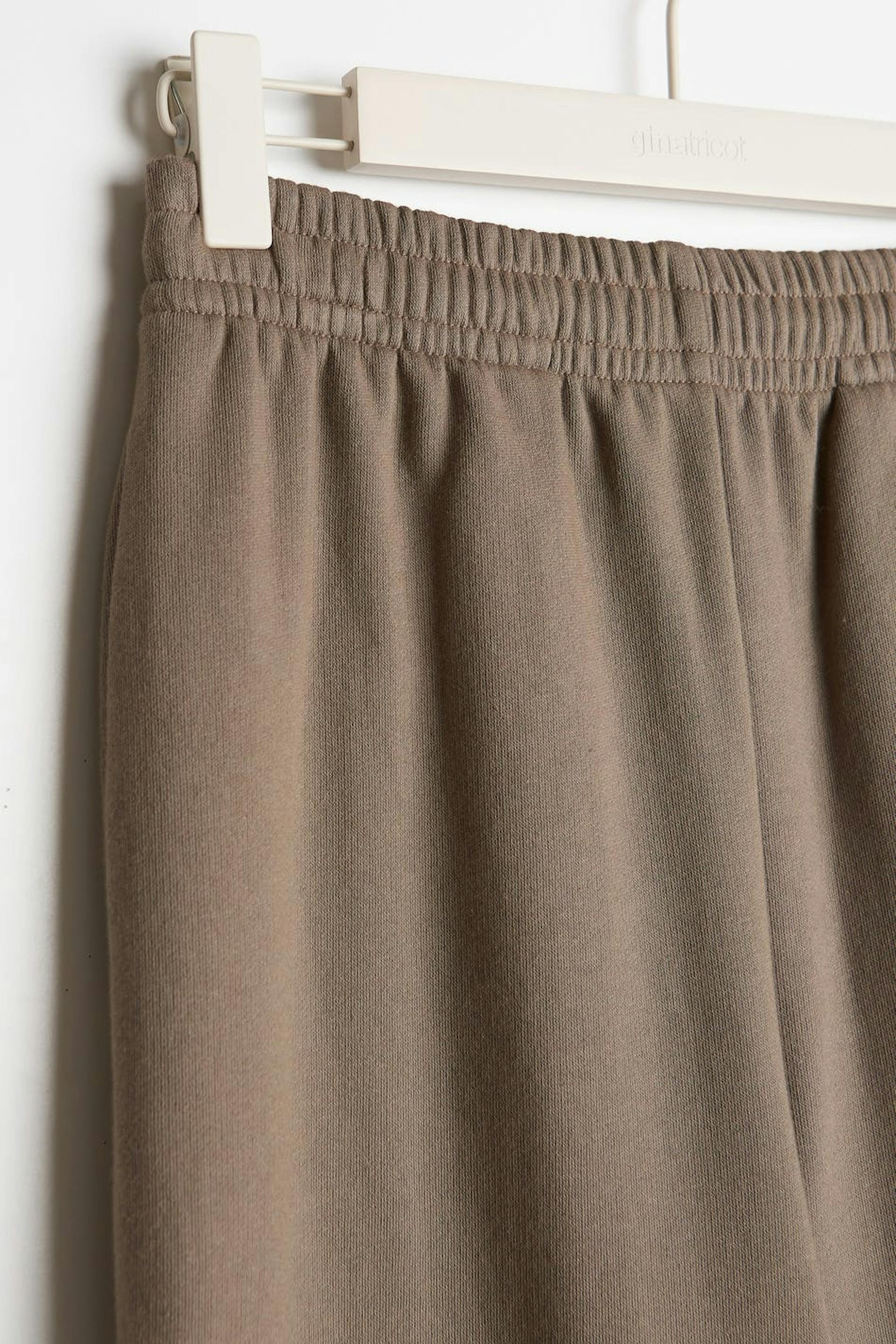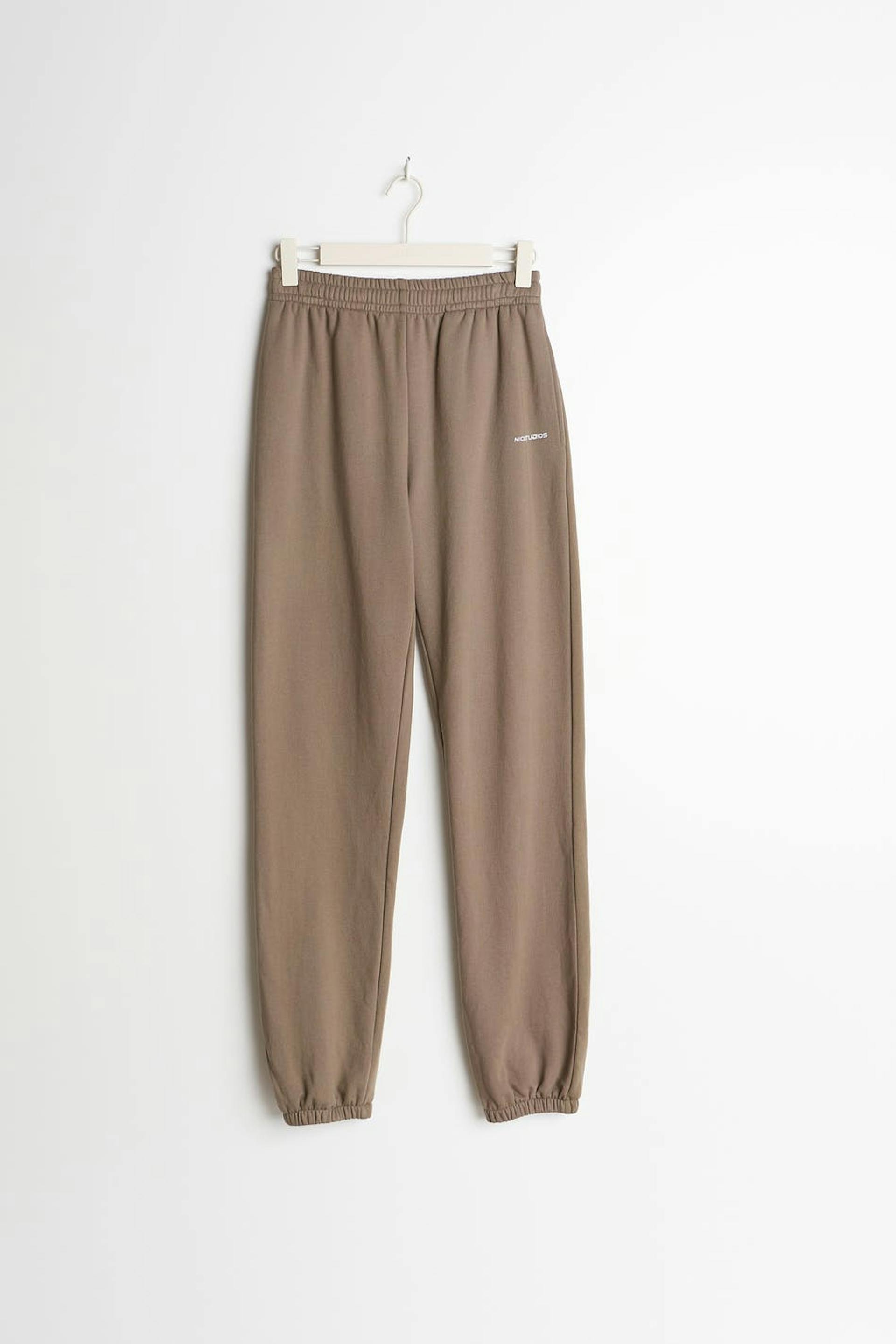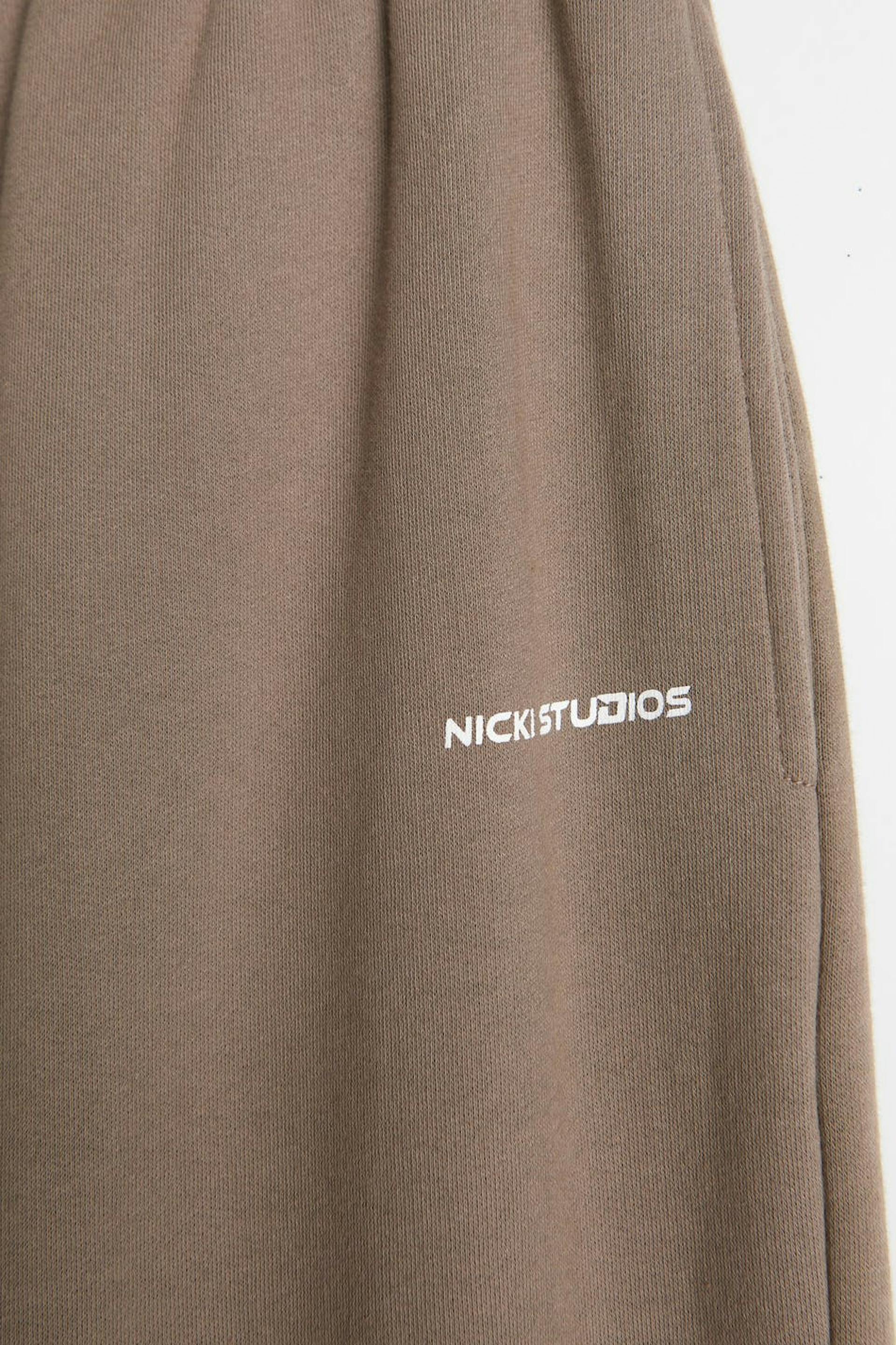 Nicki Studios X Gina Tricot. Sweatpants with a heavy cotton quality. The sweatpants are beige and have side pockets. They have a logo print at the front and a soft elastic at the waist and at the end of the legs.