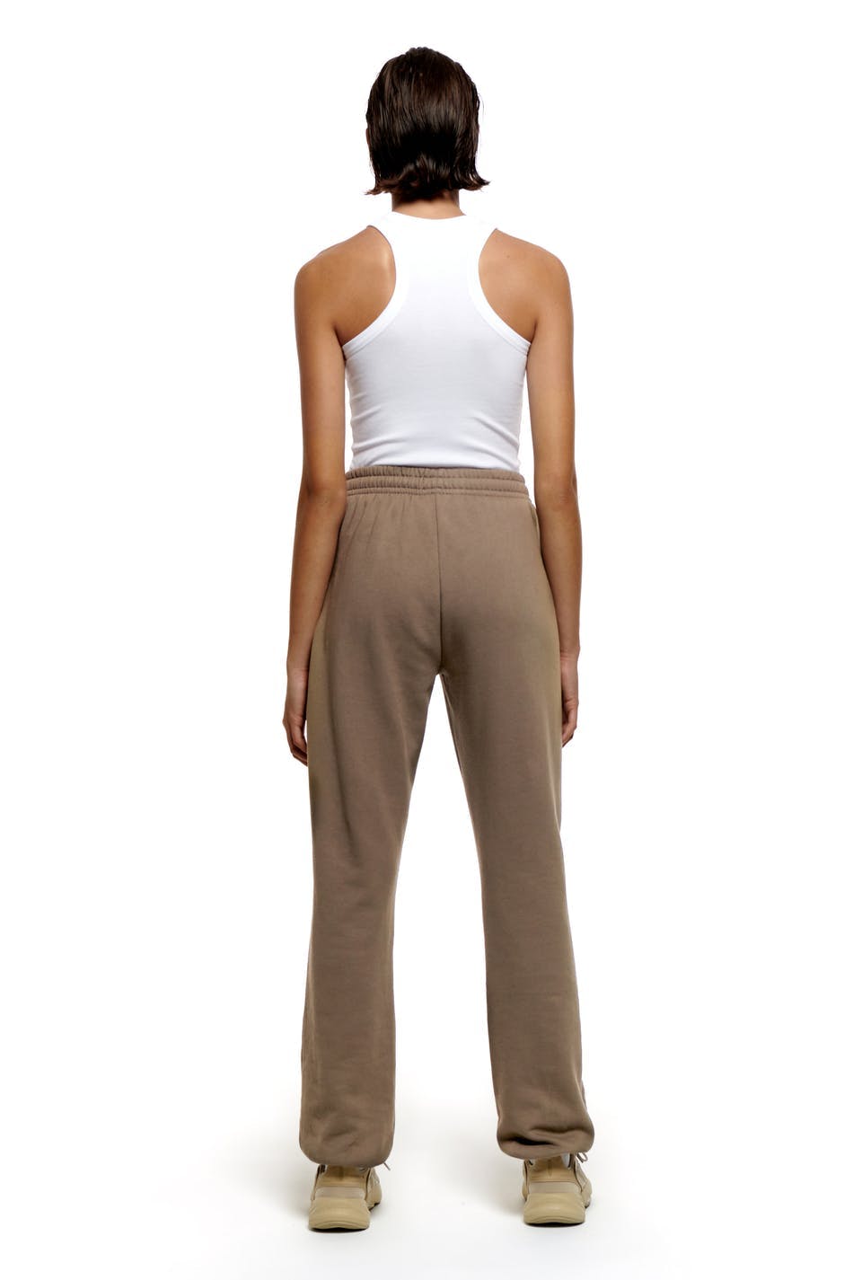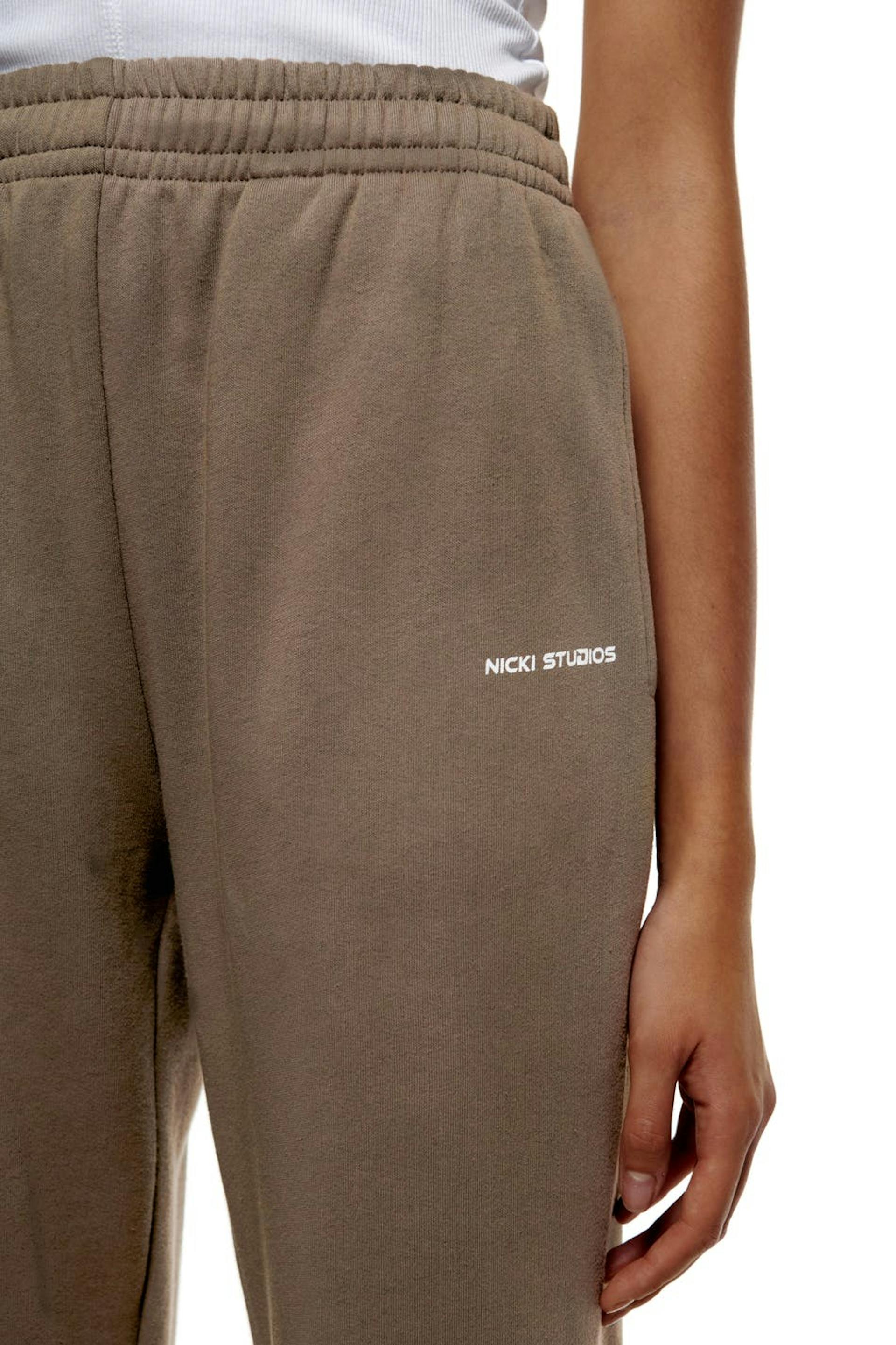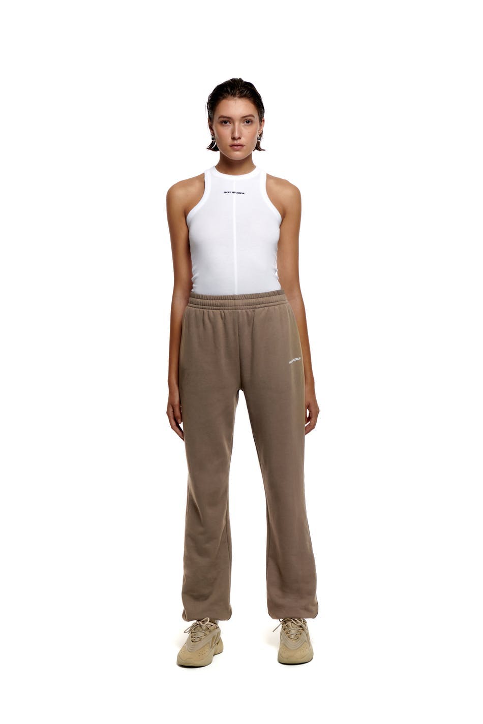 Nicki Studios X Gina Tricot. Sweatpants with a heavy cotton quality. The sweatpants are beige and have side pockets. They have a logo print at the front and a soft elastic at the waist and at the end of the legs.