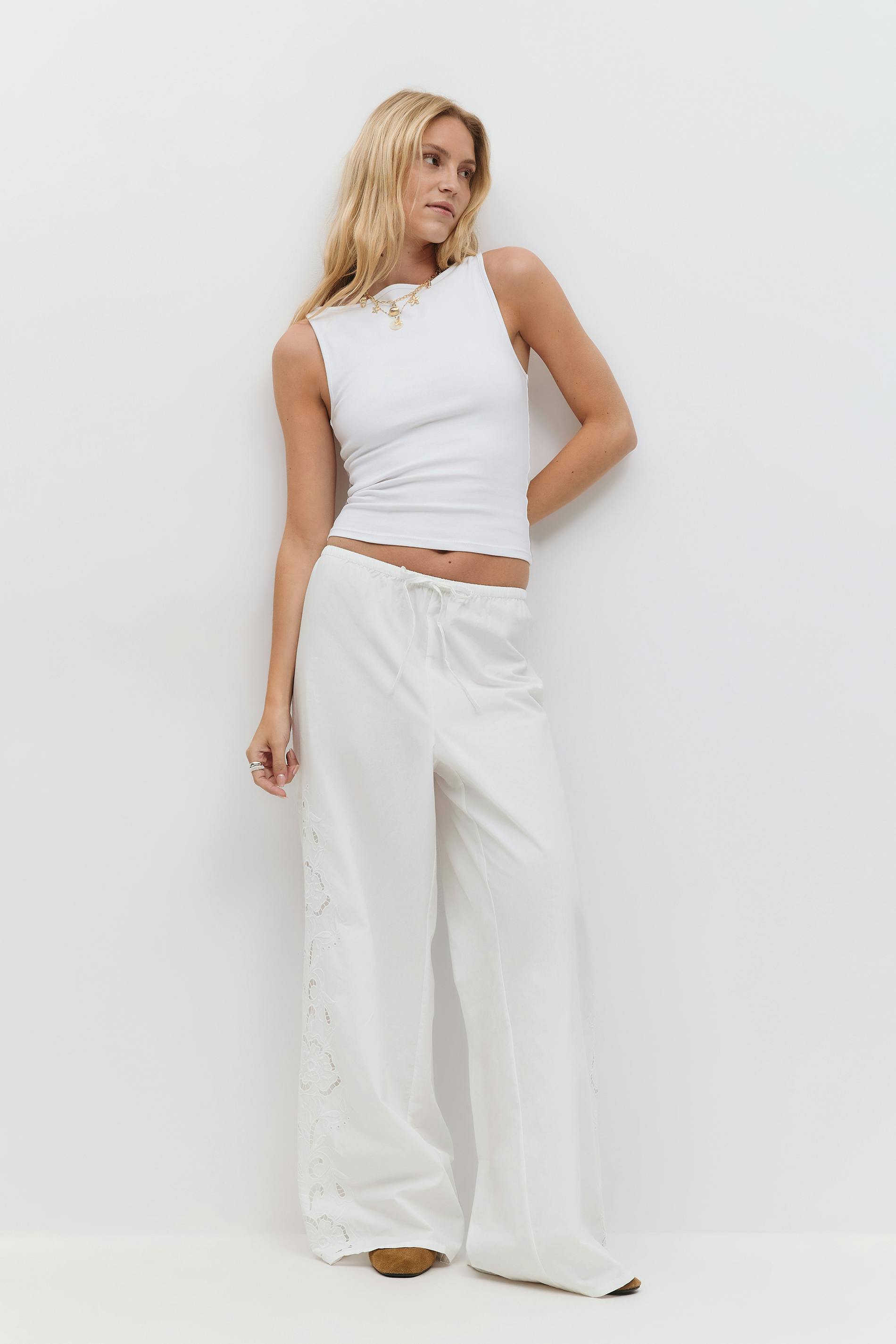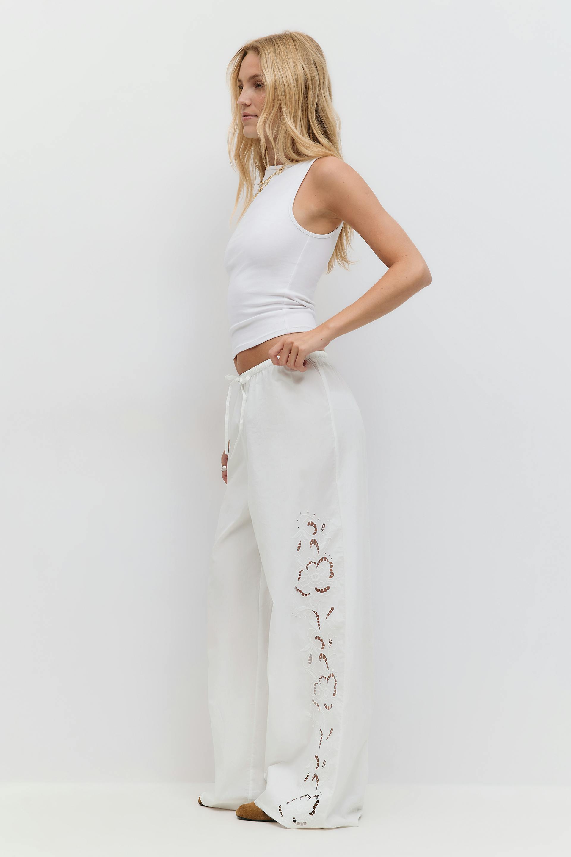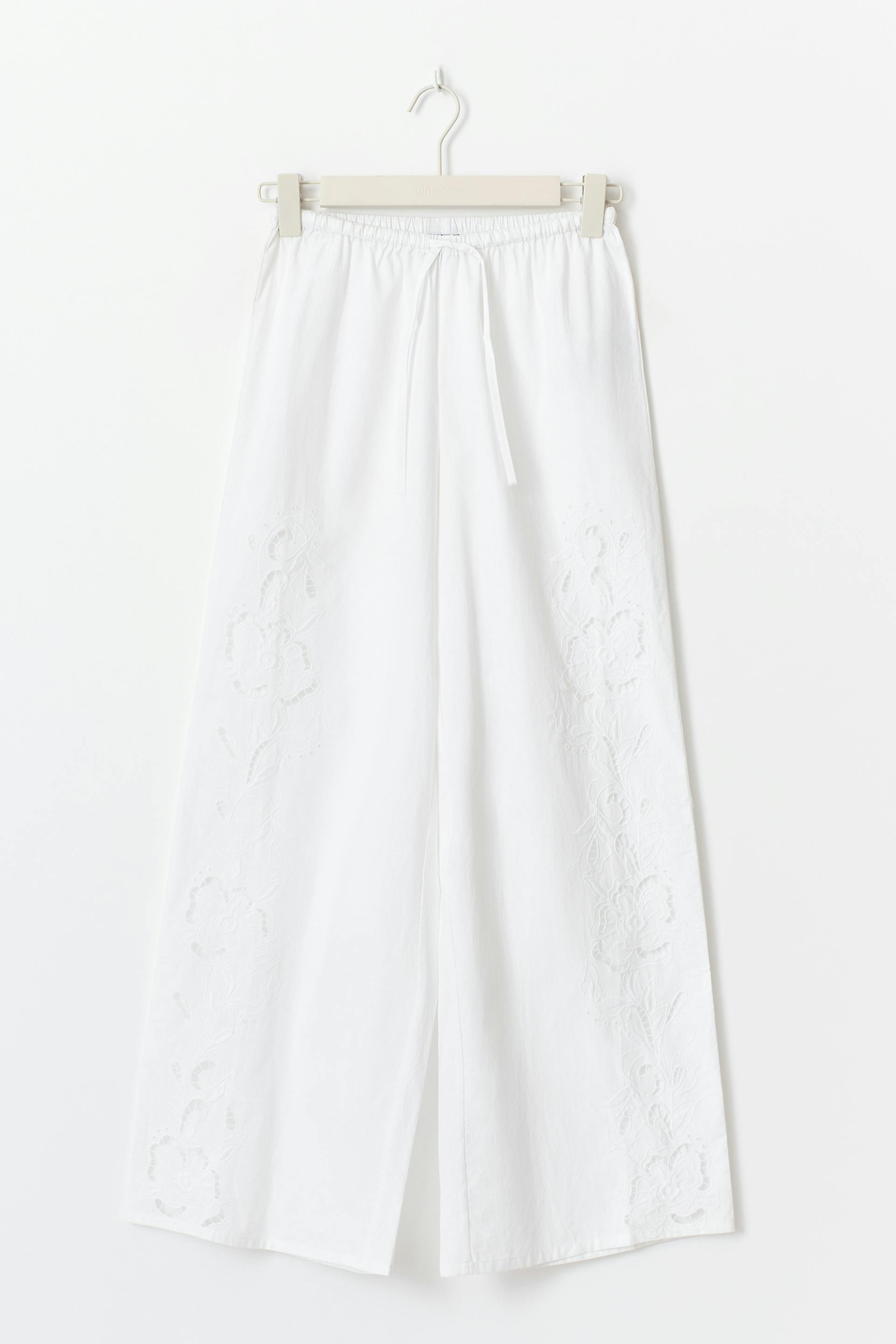 Embroidery poplin trousers