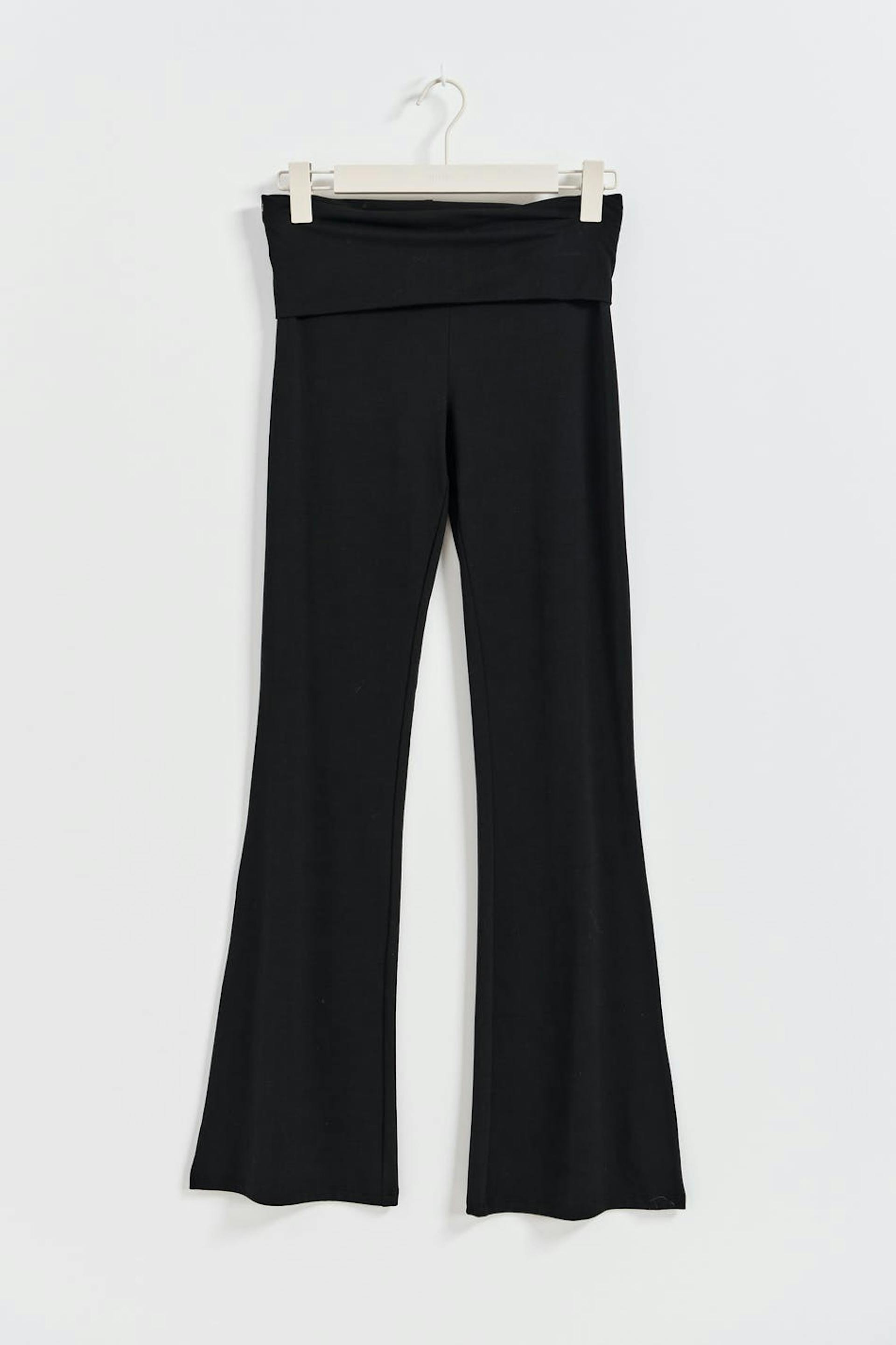 Soft touch – second skin comfort. Petite yoga pants in jersey with folded edge at the top. The trousers are black and have flared legs. They have figure-hugging fit, elastic at the waist and mid waist. Perfect for those who are 160 cm (5 ft 3 in.) or shorter.