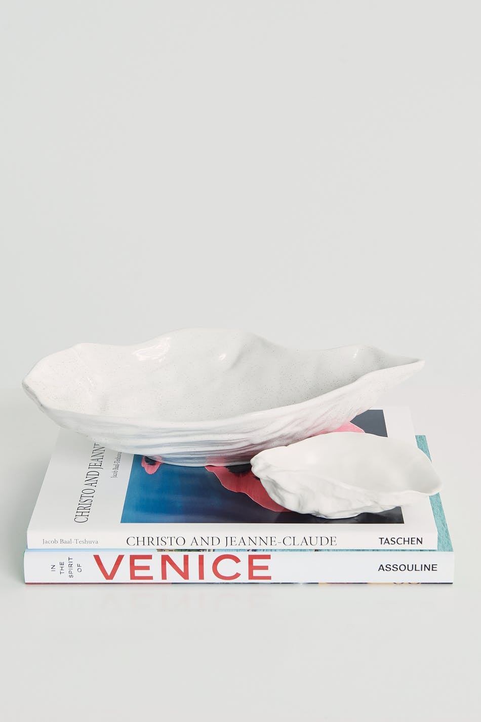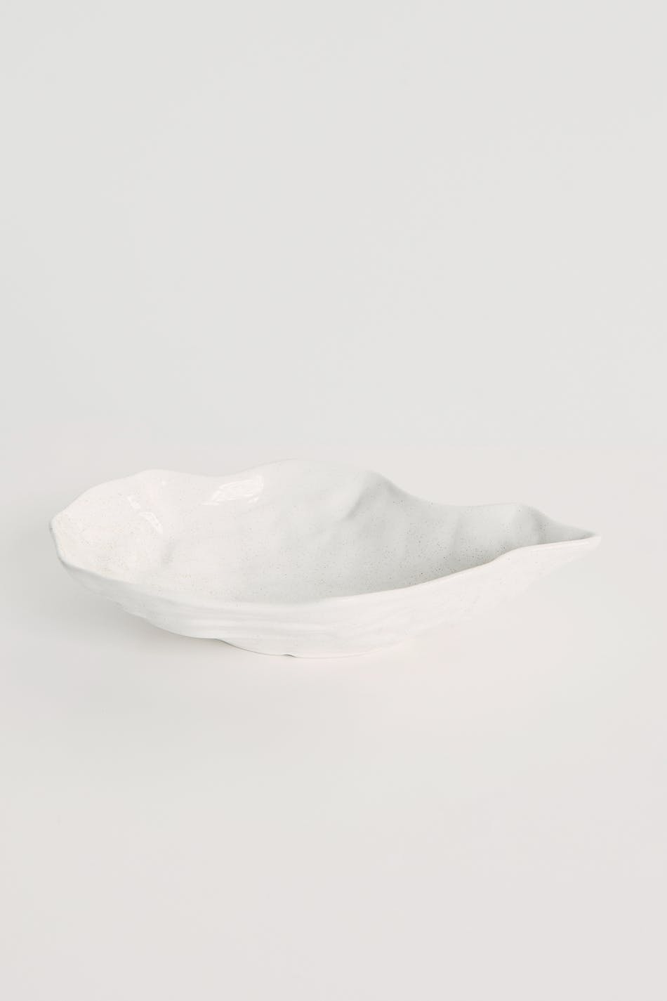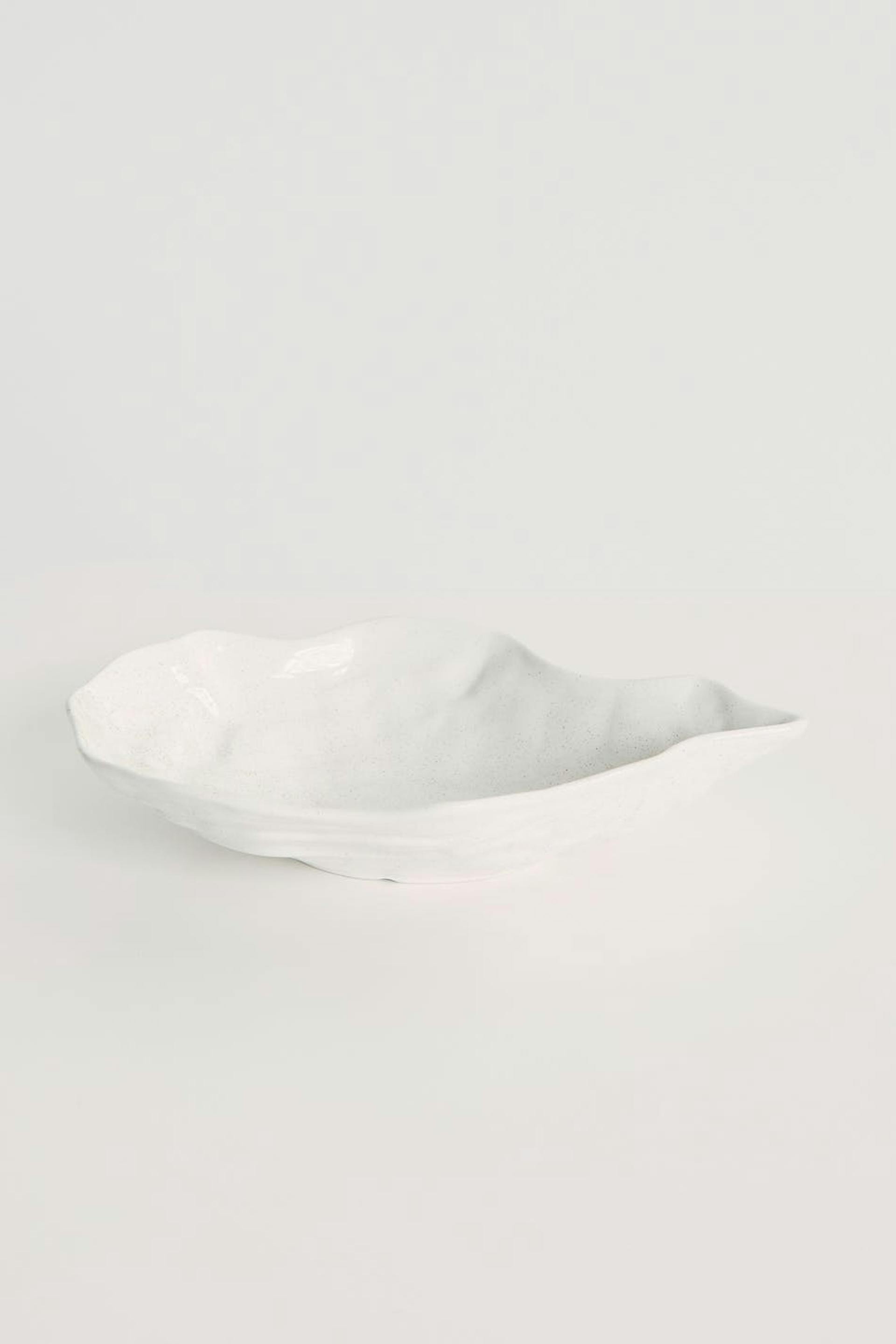 Decorative bowl by ByOn. The bowl is white and oyster shaped.