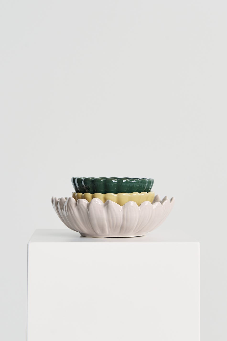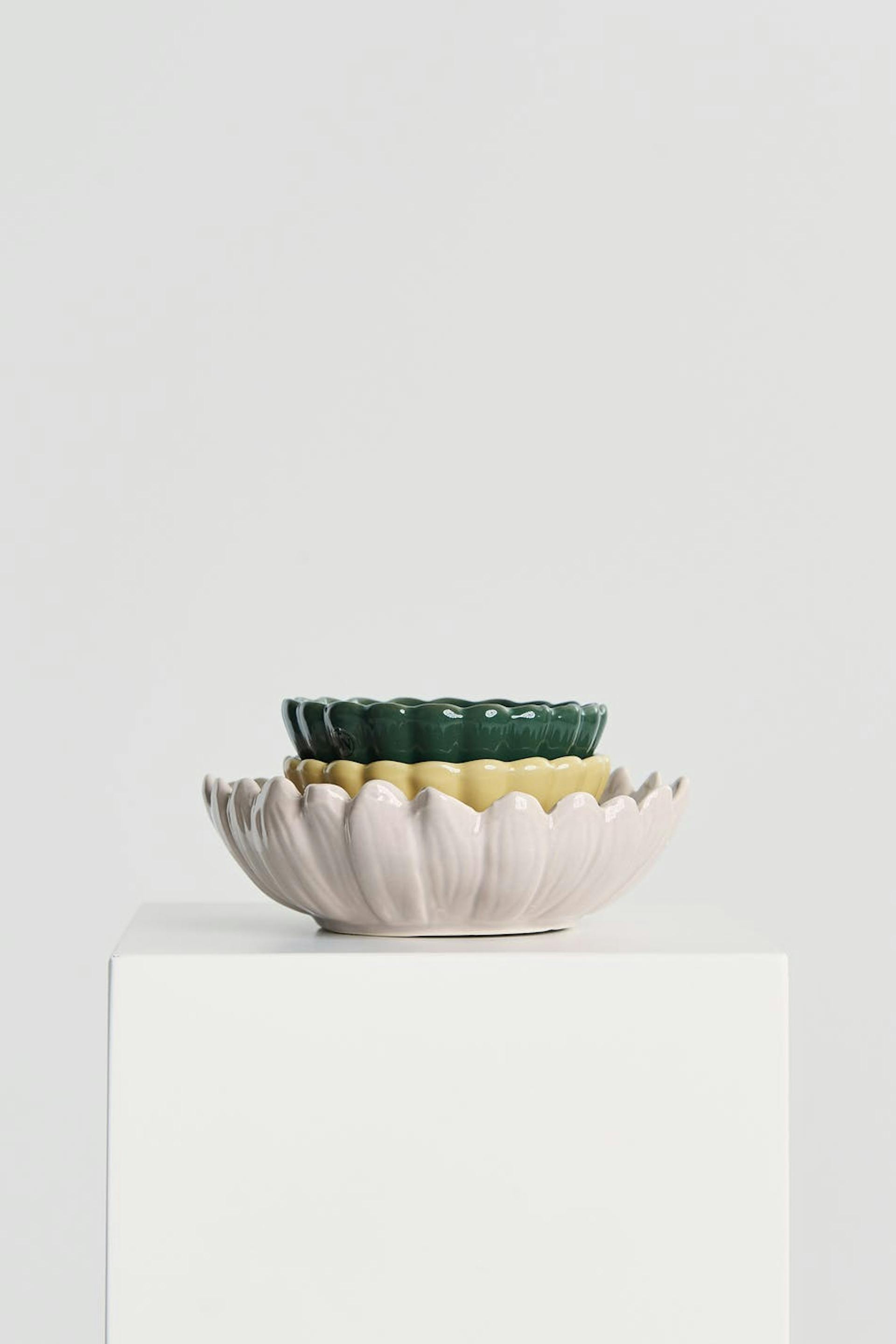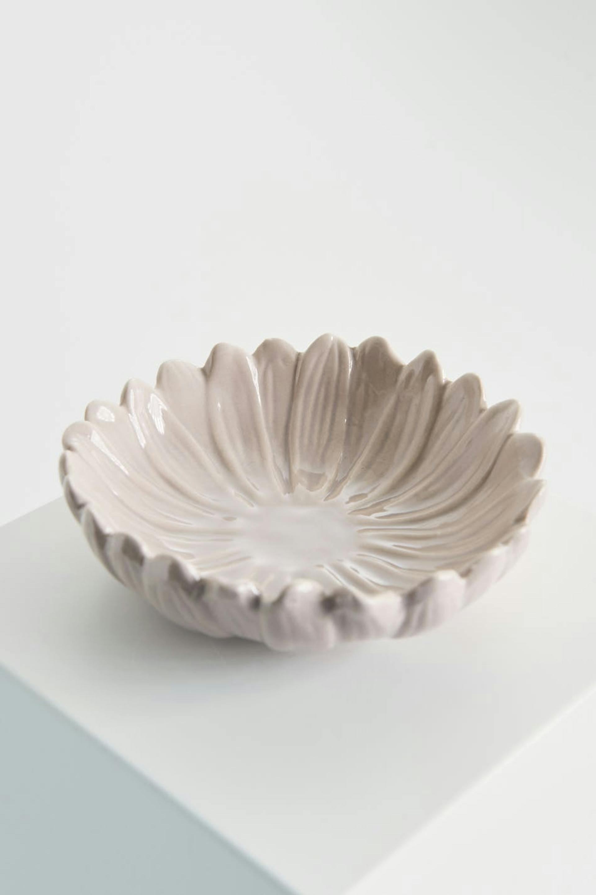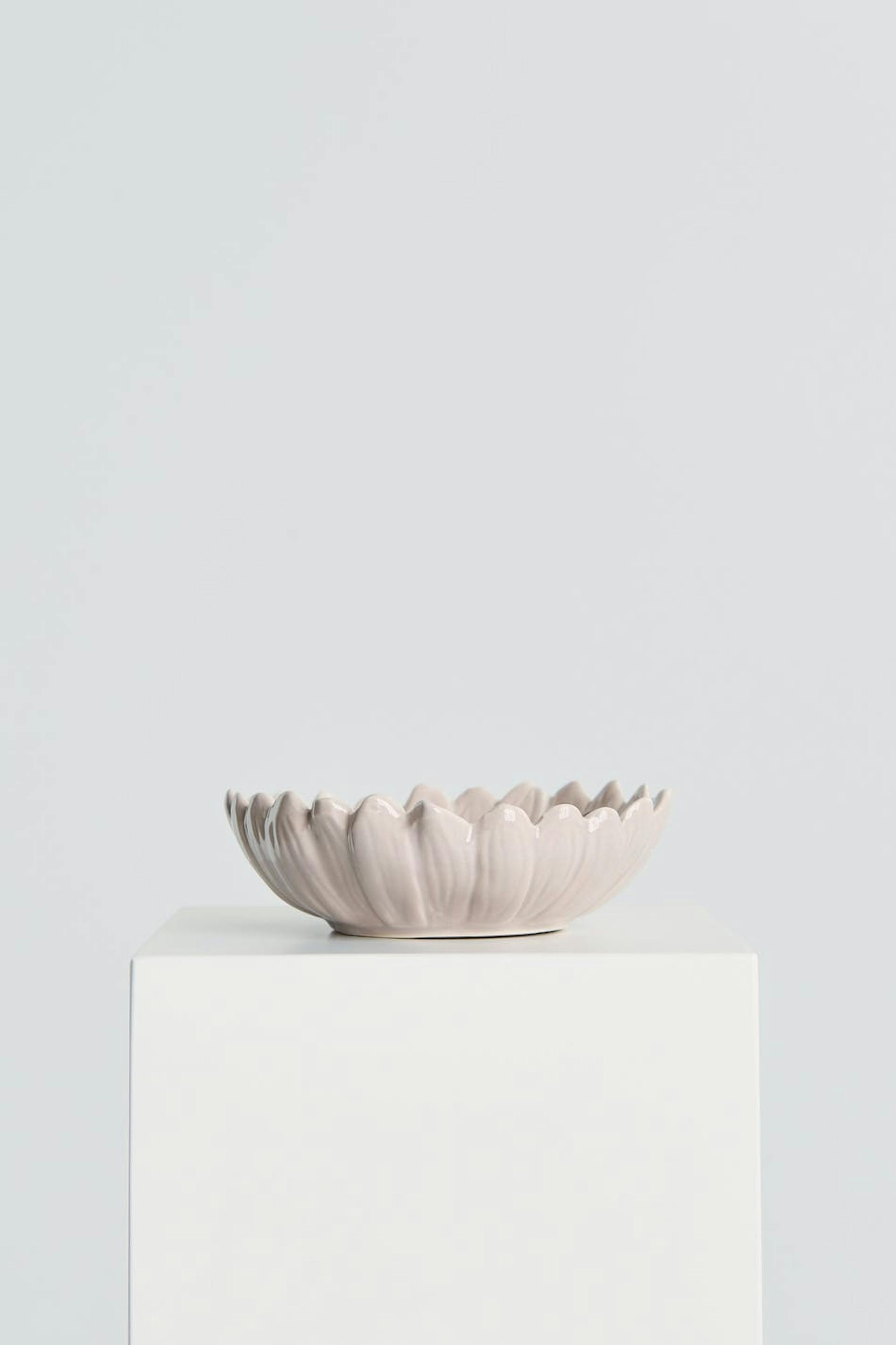 Flower shaped bowl by ByOn. The bowl is beige. It is made of porcelain.