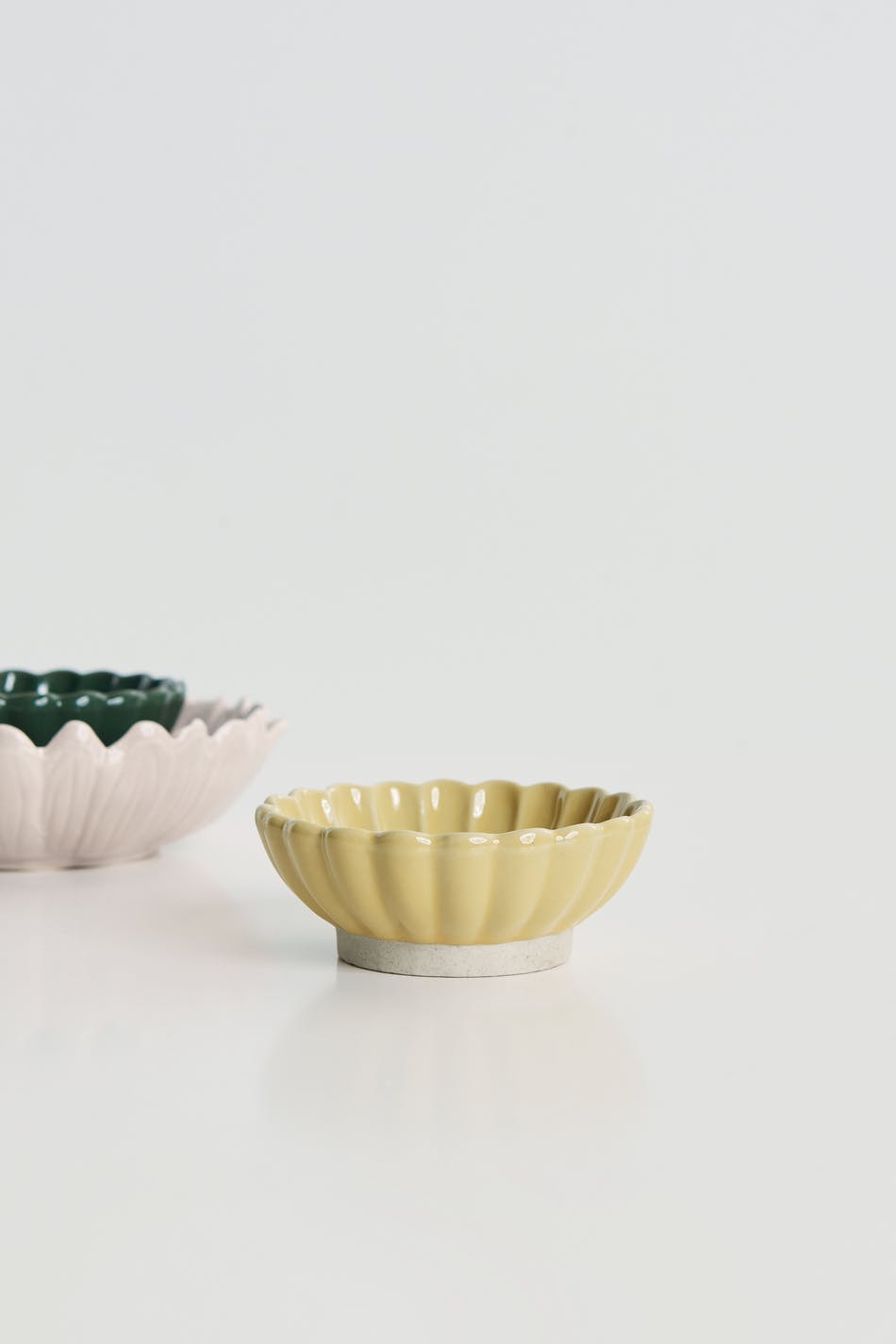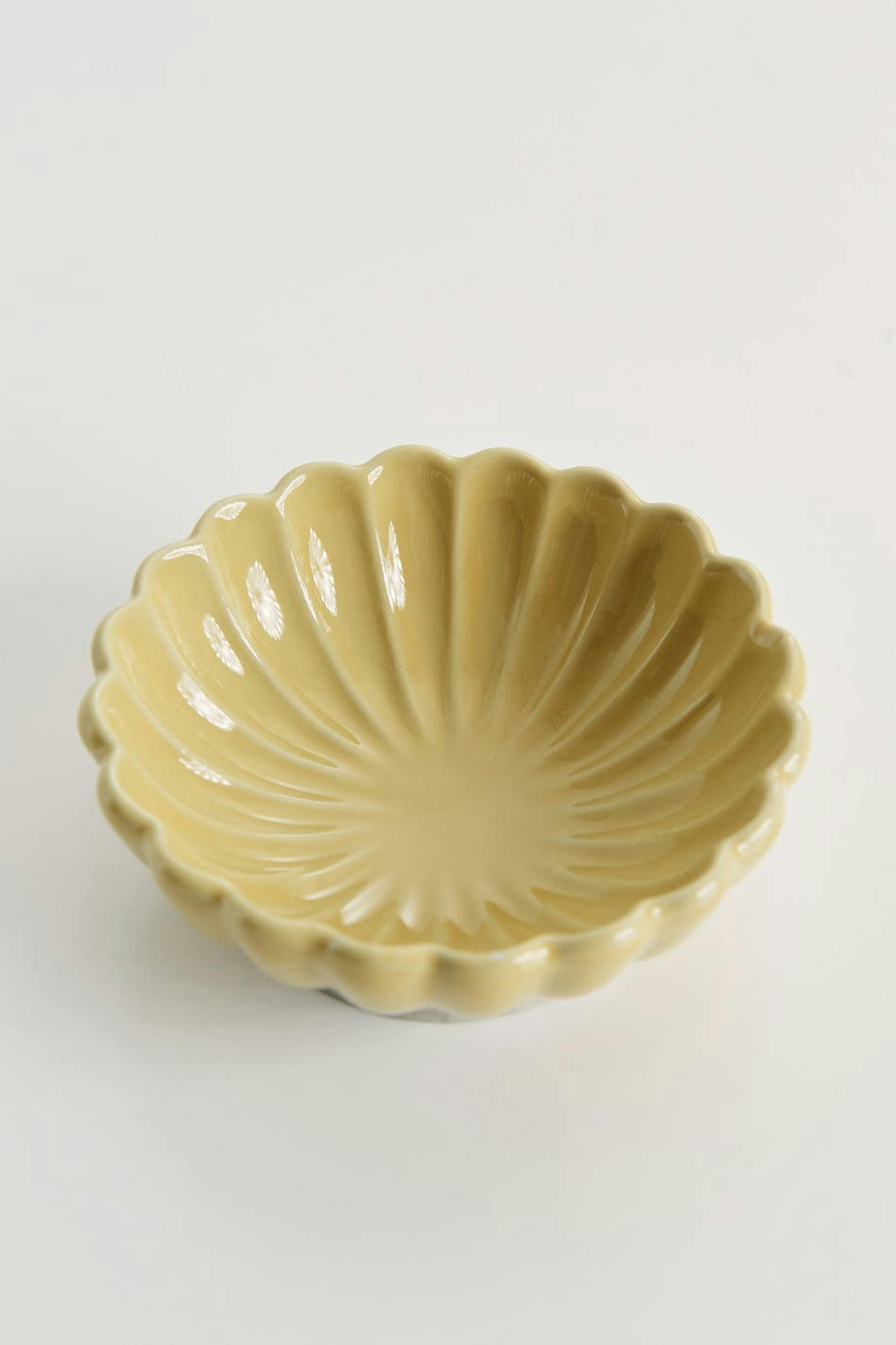 Flower shaped bowl by ByOn. The bowl is yellow and small.