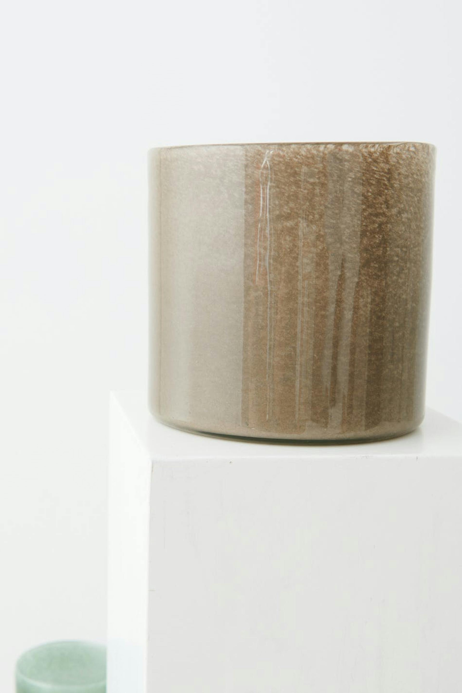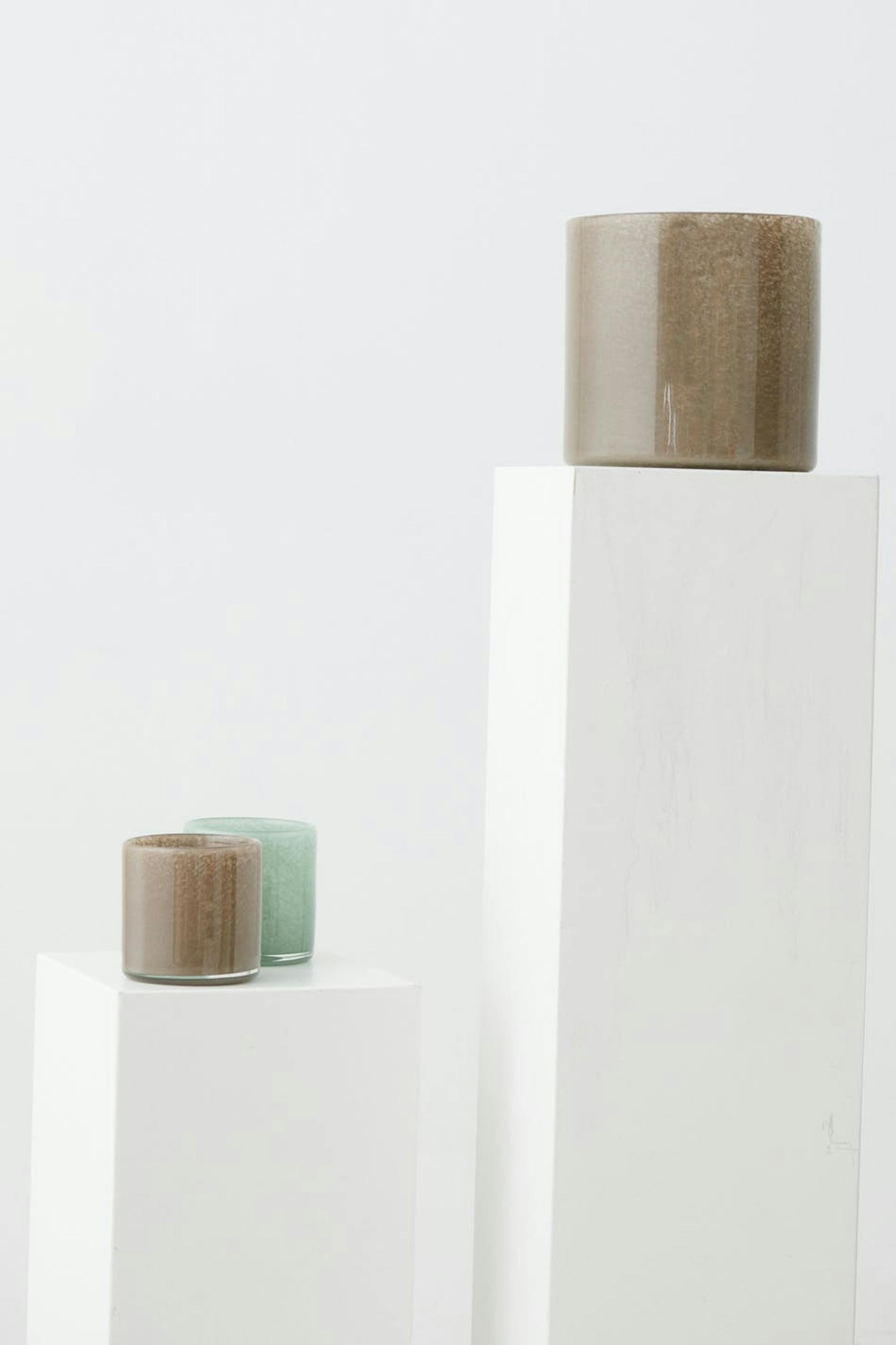 Big candle holder by Gina Home with coloured glasses. The candle holder is beige.