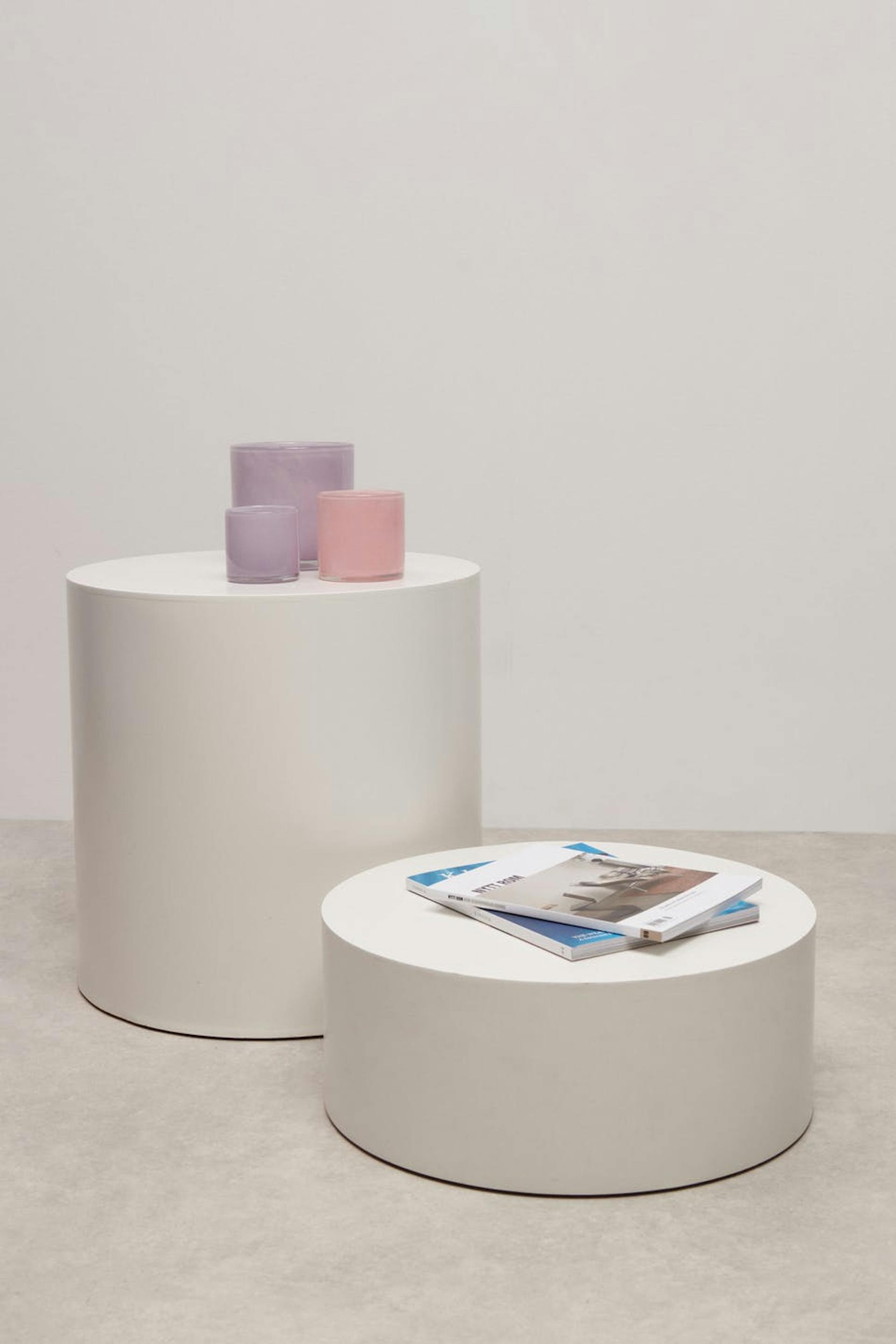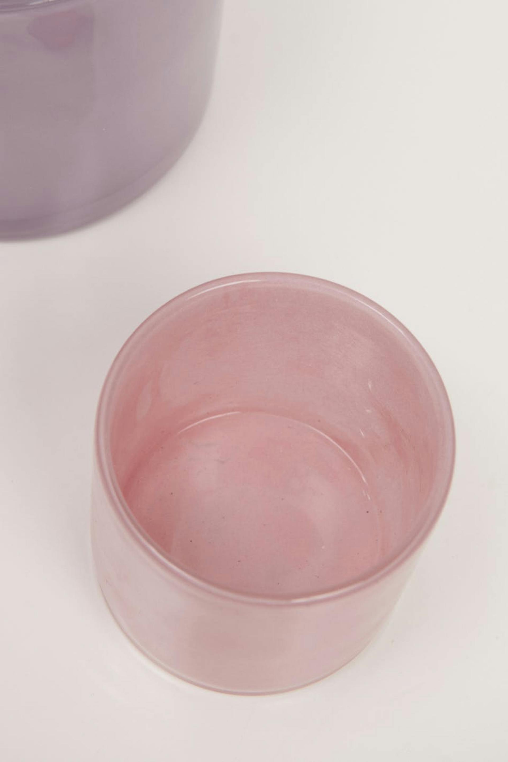 Candle holder by Gina Home with coloured glasses. The candle holder is pink.