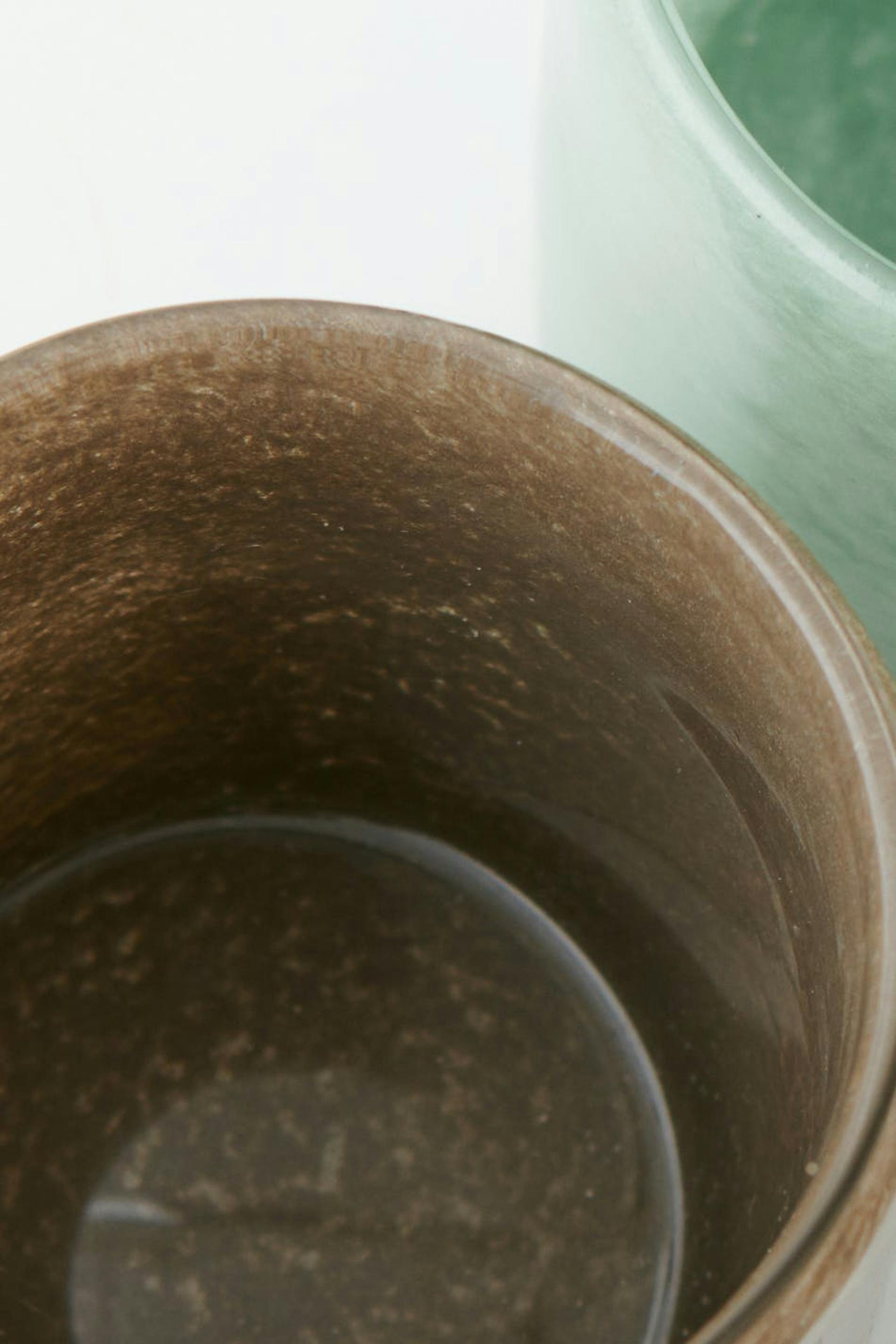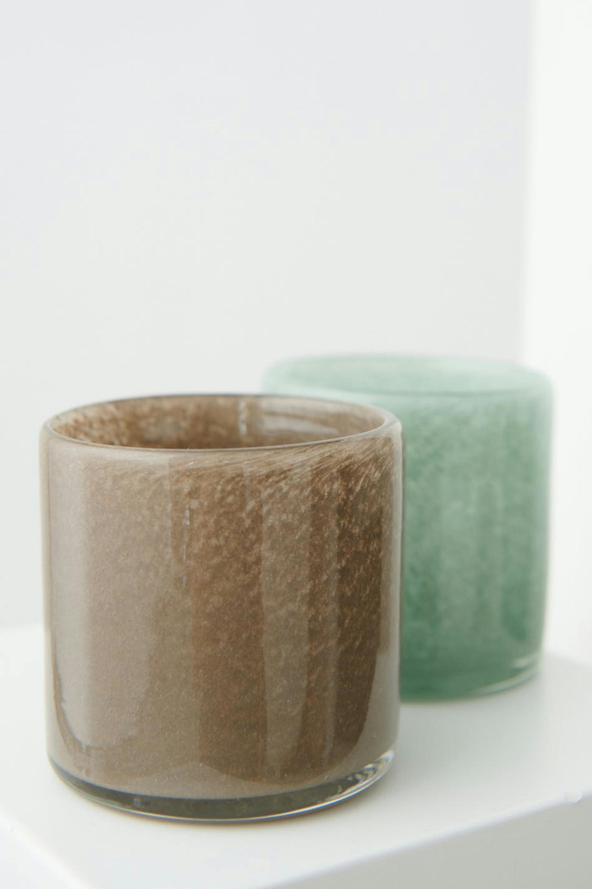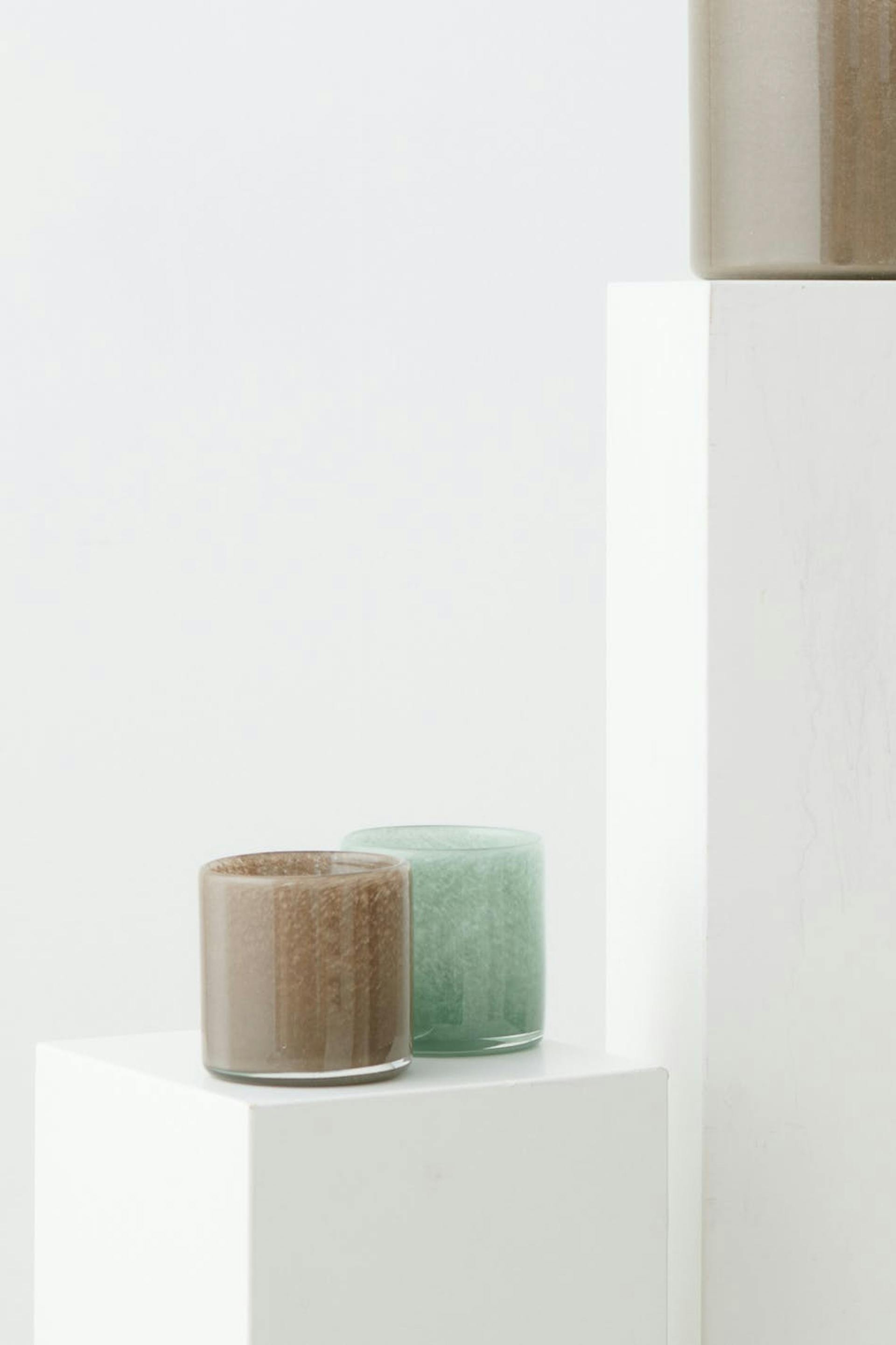 Small candle holder by Gina Home with coloured glasses. The candle holder is beige.
