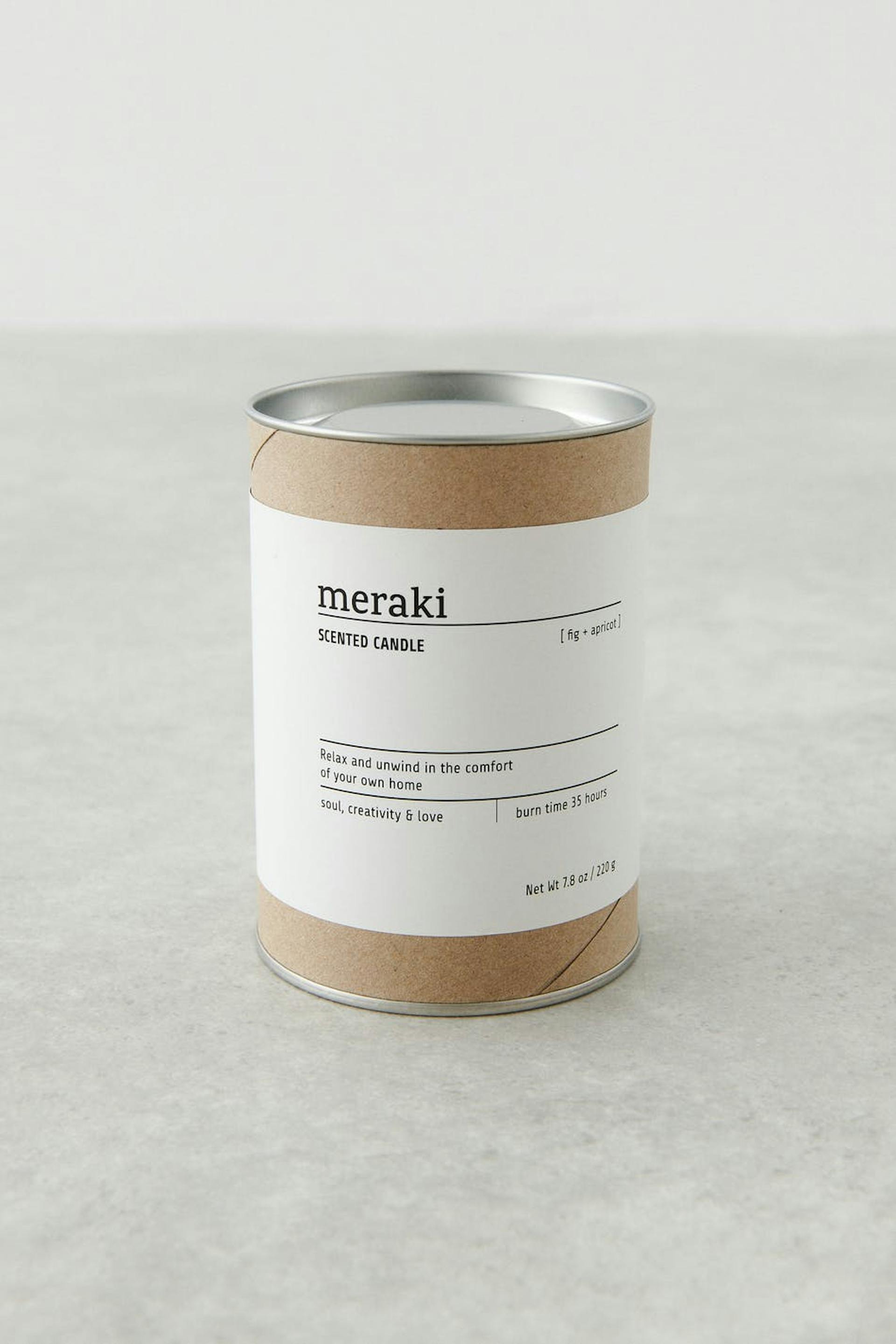 Scented candle by Meraki with a sweet scent of fig and apricot. Relax and enjoy the wonderful scent that spreads throughout your entire home. The candle has a burn time of 35 hours.