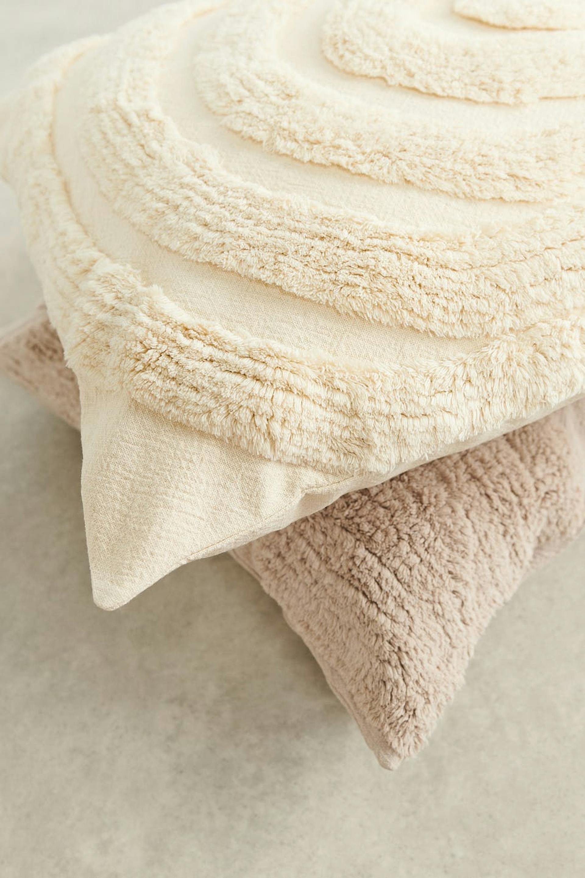Cushion cover by Gina Home with tufted motif. The cover is beige and has a soft material in cotton. It has a hidden zip at the back.