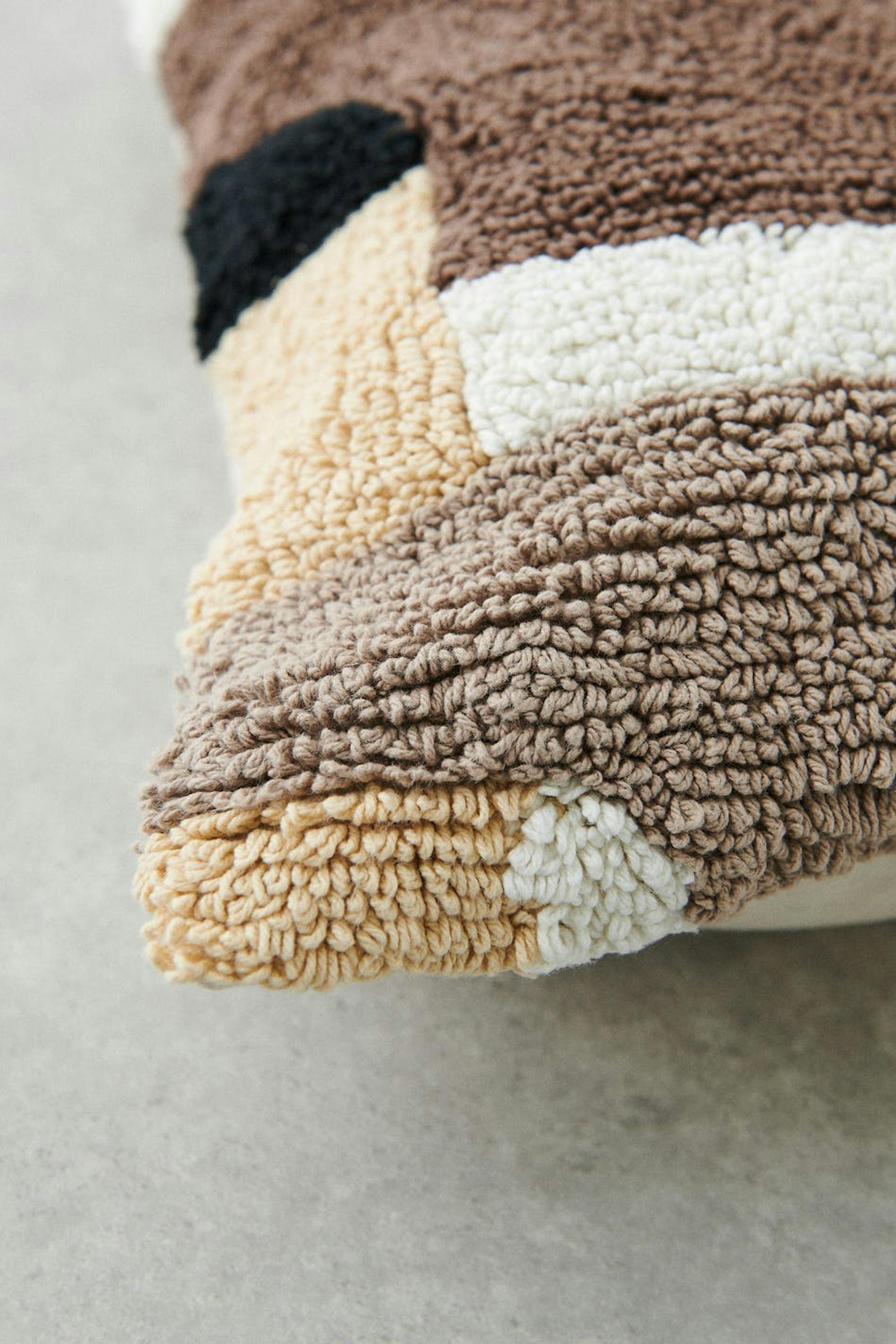 Tufted cushion cover by Gina Home with a treaded material in cotton. The cover is beige and has a hidden zip on the back.