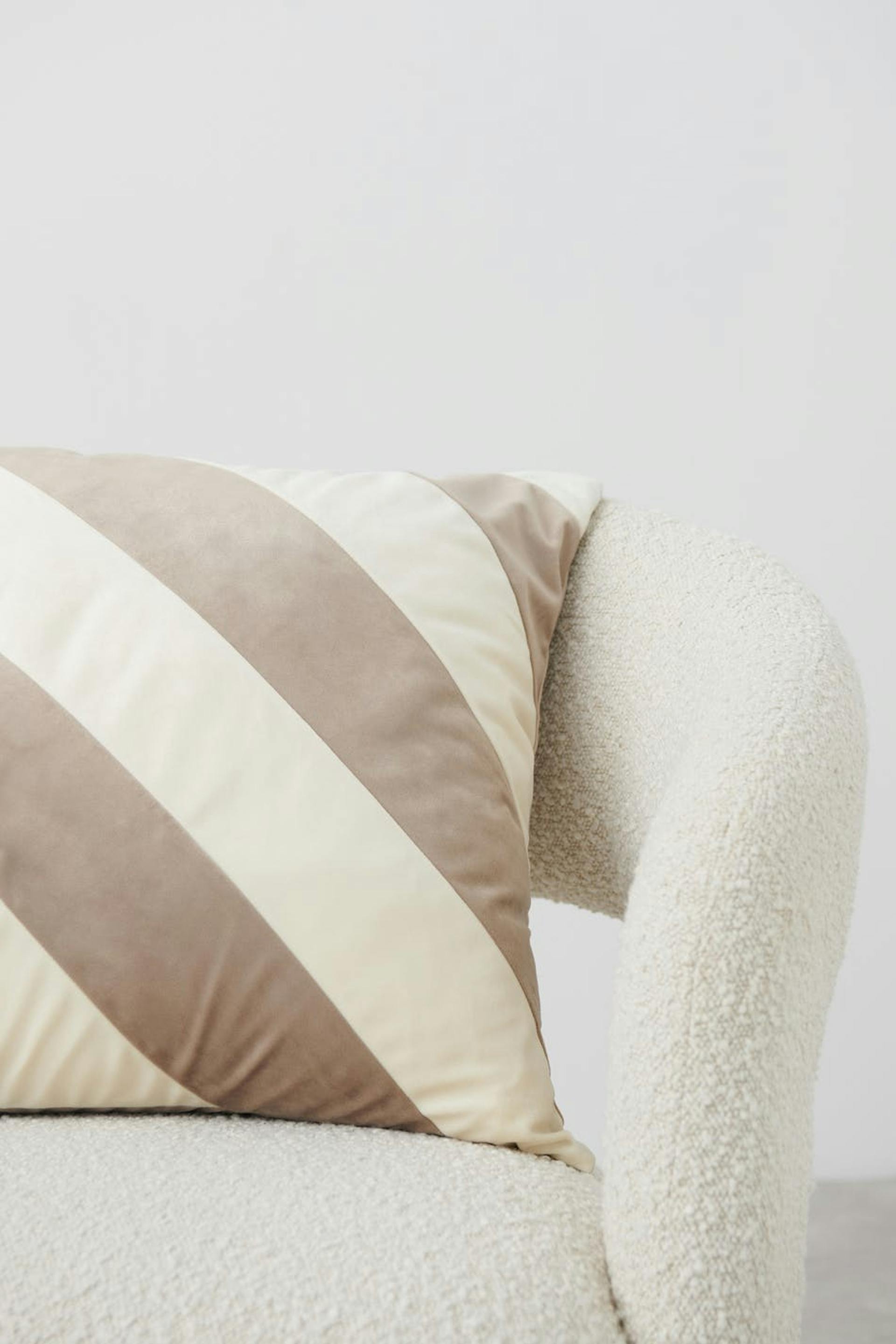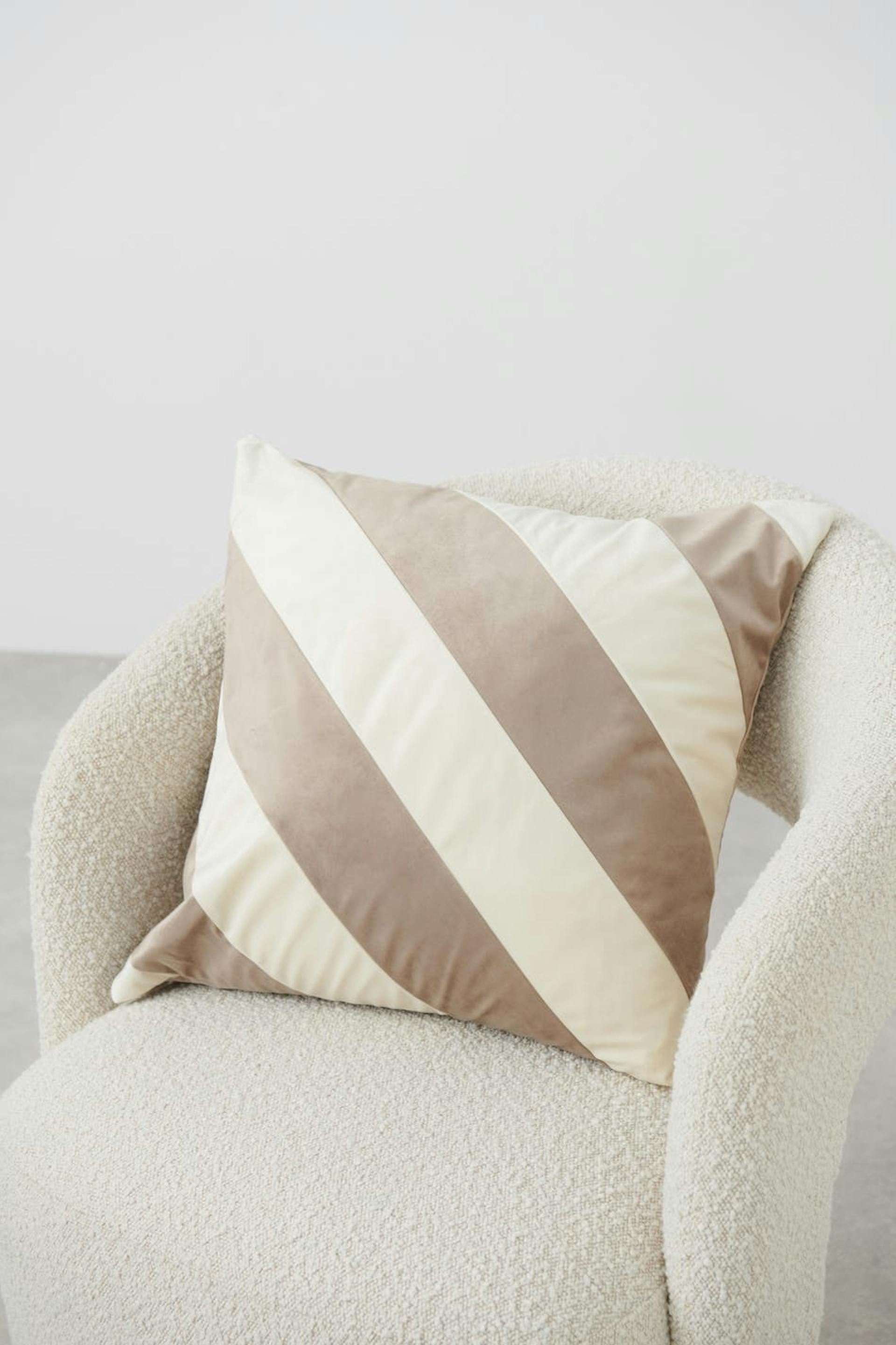 Cushion cover in cotton with diagonal stripes. The cover is beige and white.