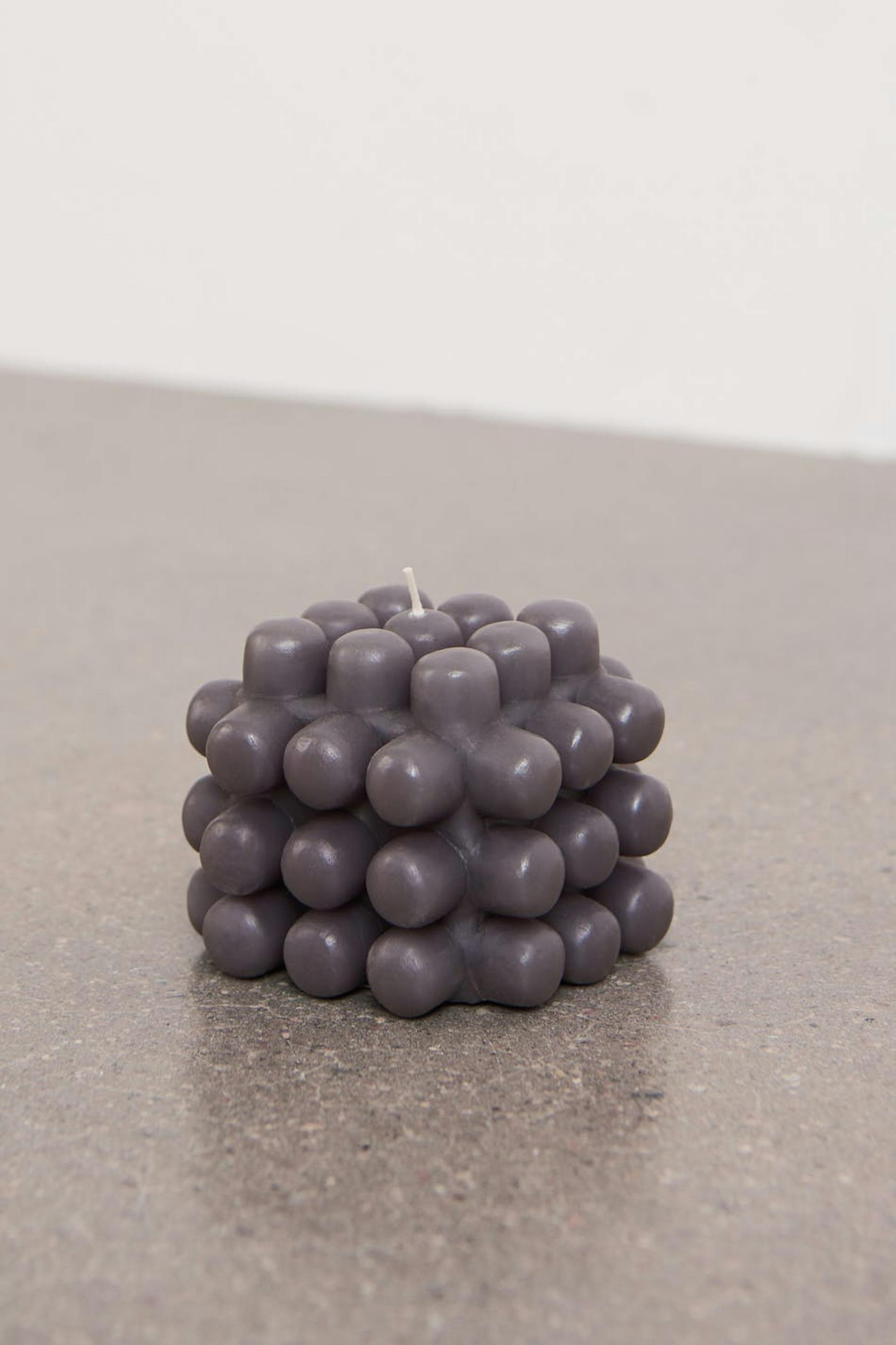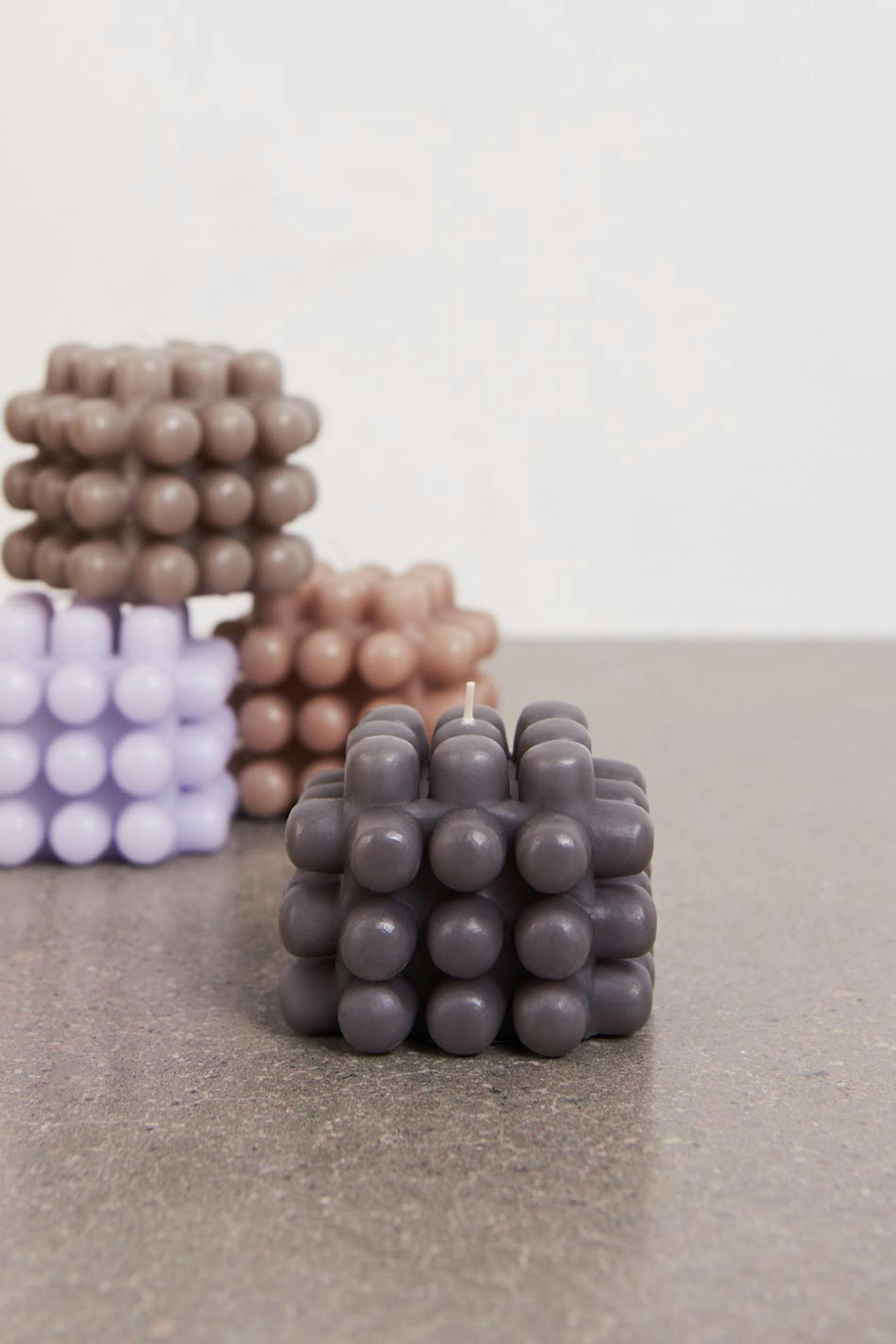 Bubble candle by Gina Home with squared shape. The bubble candle is grey and has a wick.