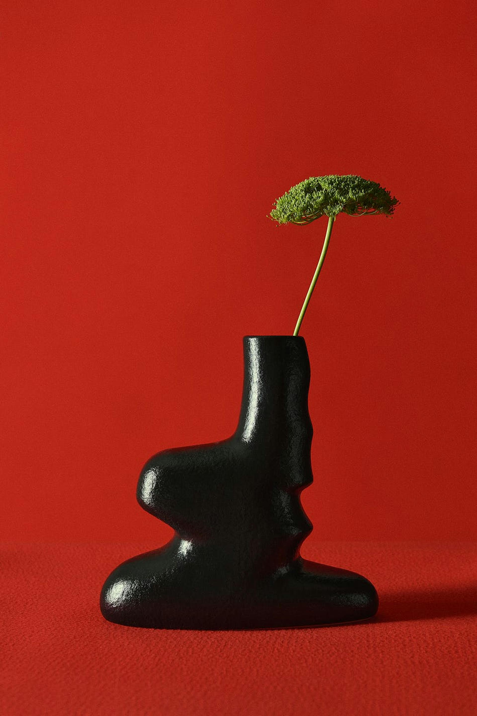 Hobnob X Gina Tricot. Vase in ceramic with a unique design. The vase is black and has an asymmetrical shape.