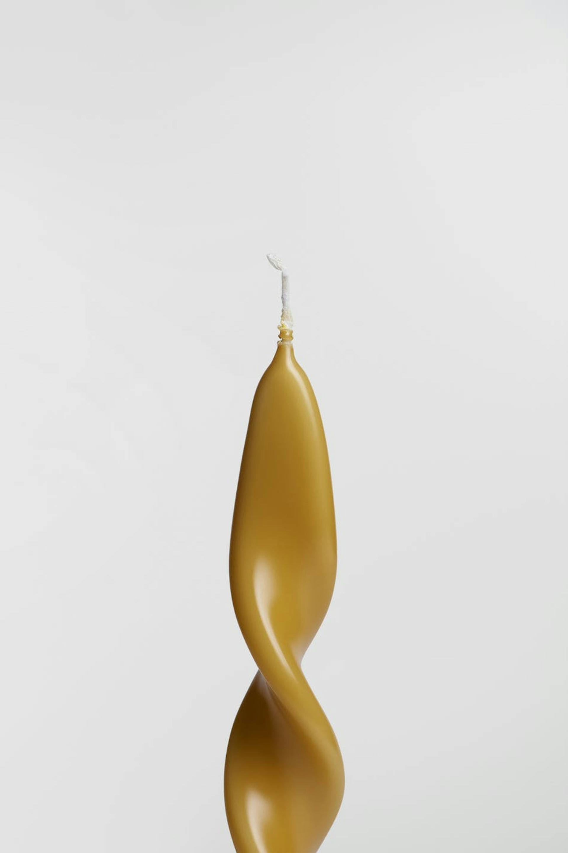 Twisted candle by Mariella with a wick in cotton. The candle is yellow, handmade and made in Italy.