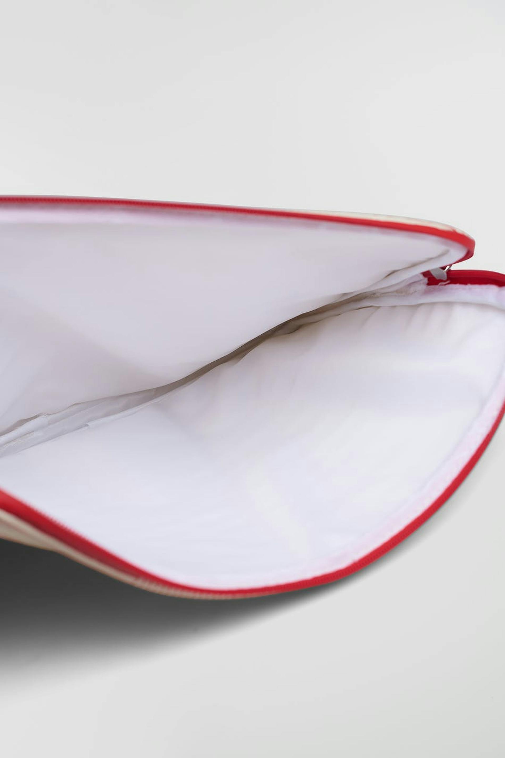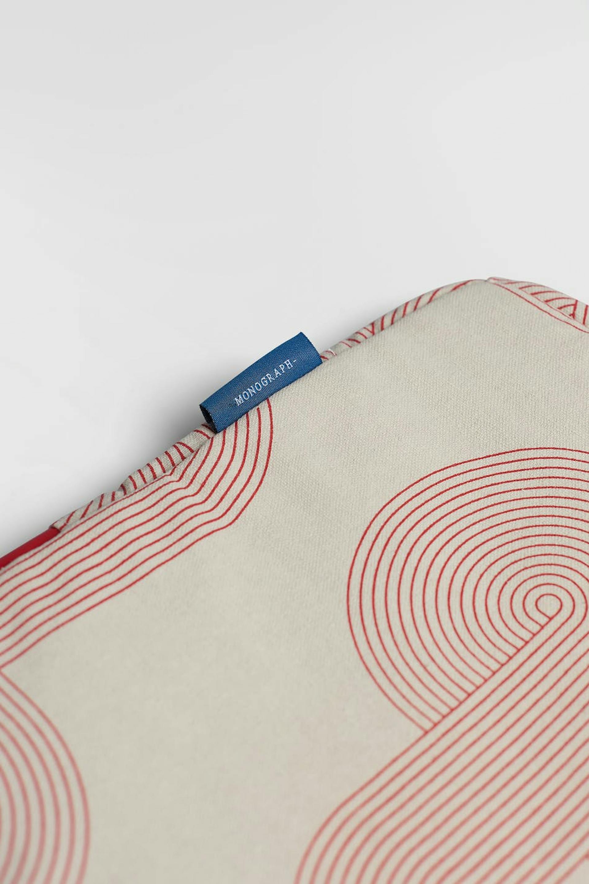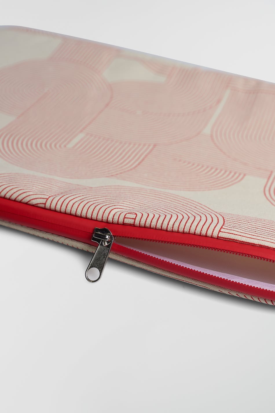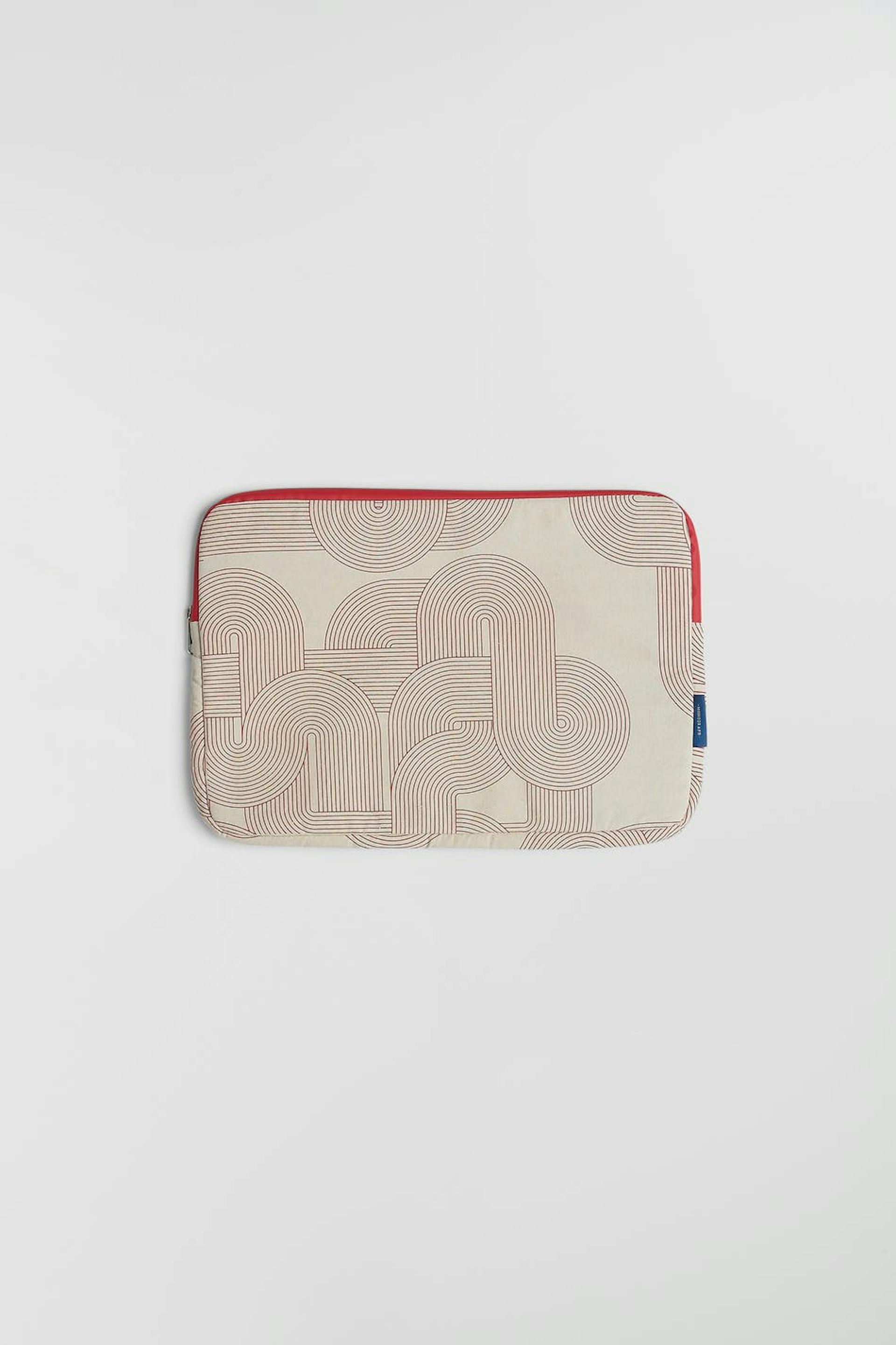 Computer case by Monograph with a discrete, graphic design. The computer case is red and has a robust material. Suitable for a 15/16 inches laptop.