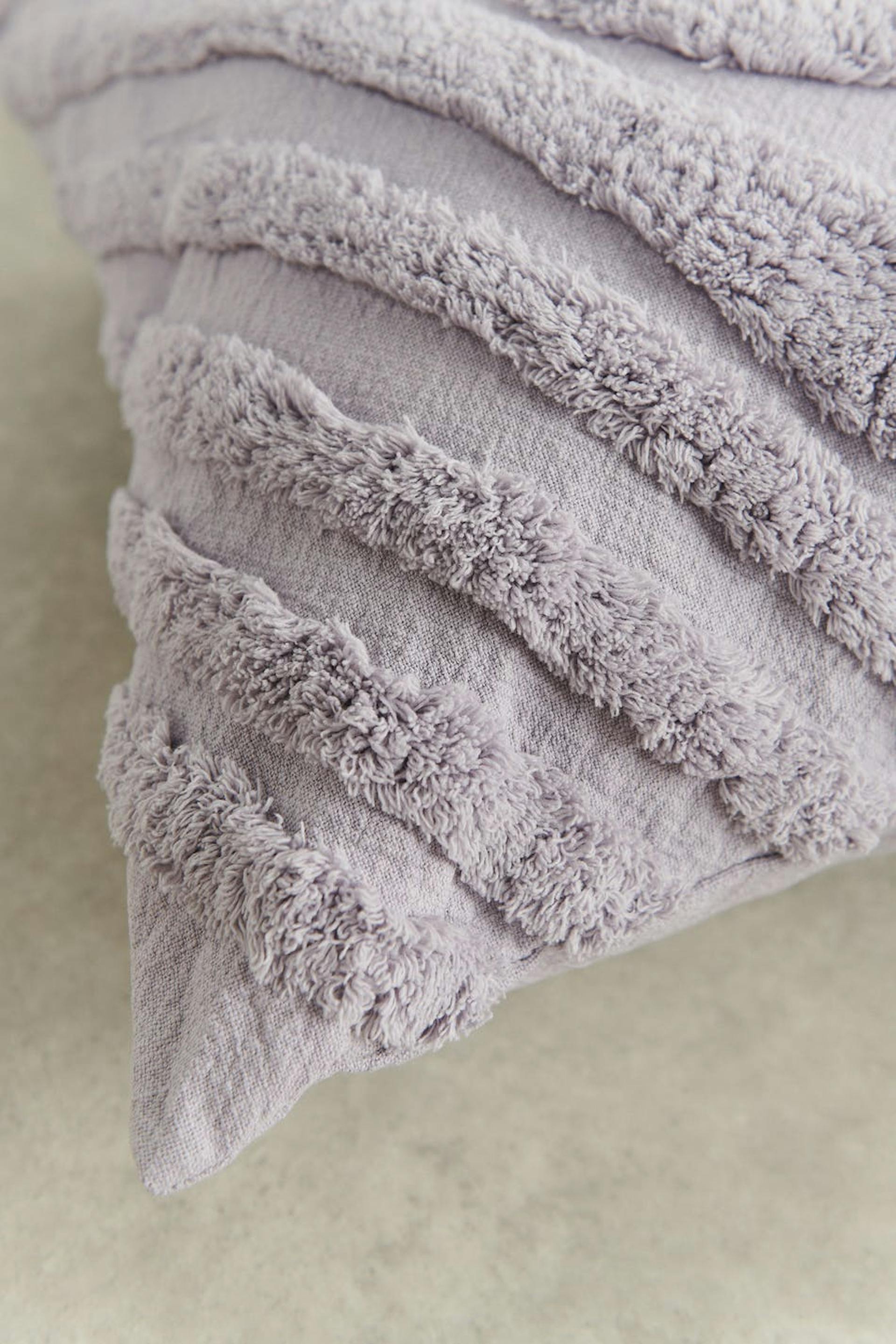 Cushion cover by Gina Home with tufted motif. The cover is purple and has a soft material in cotton. It has a hidden zip at the back.