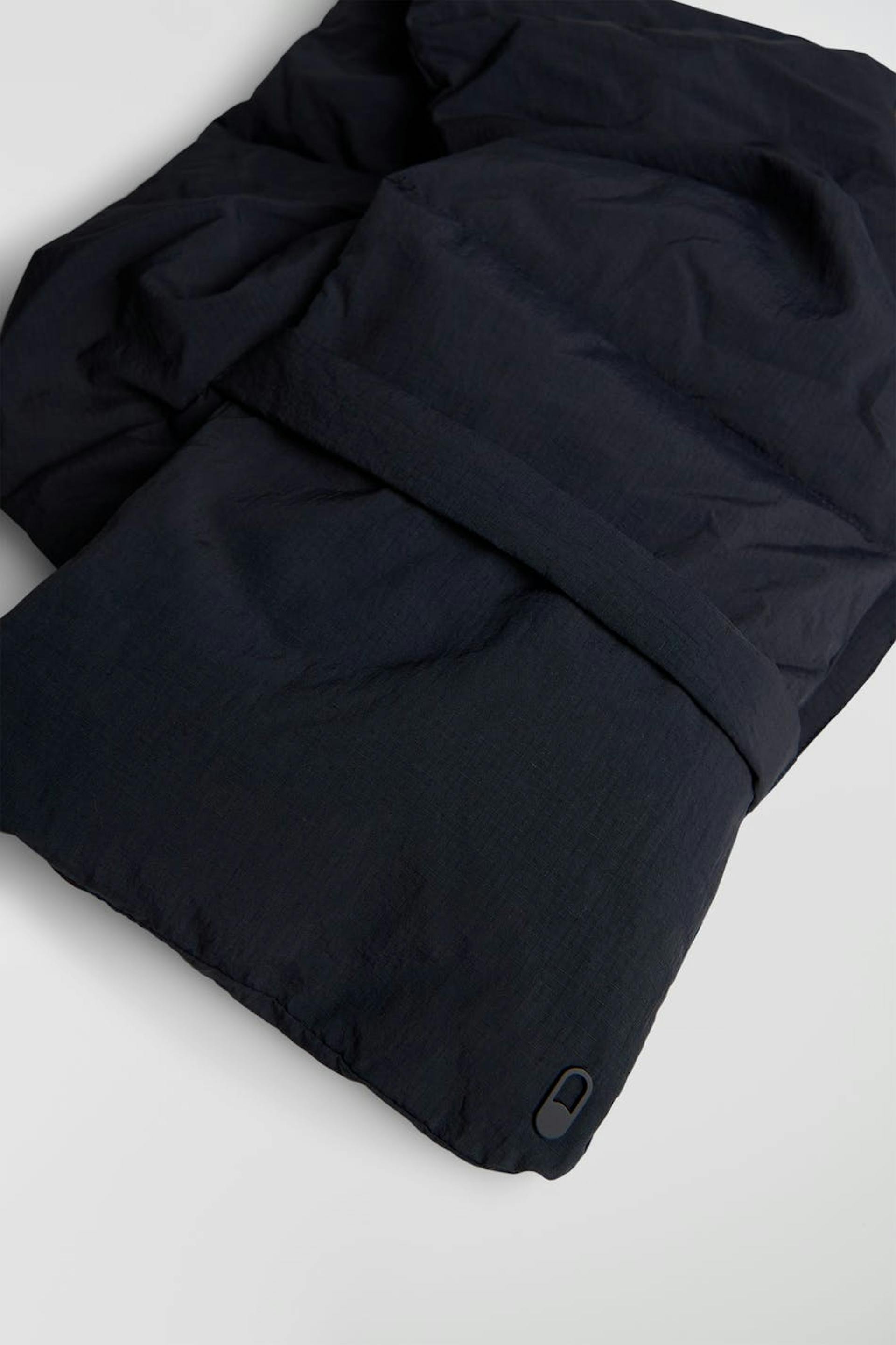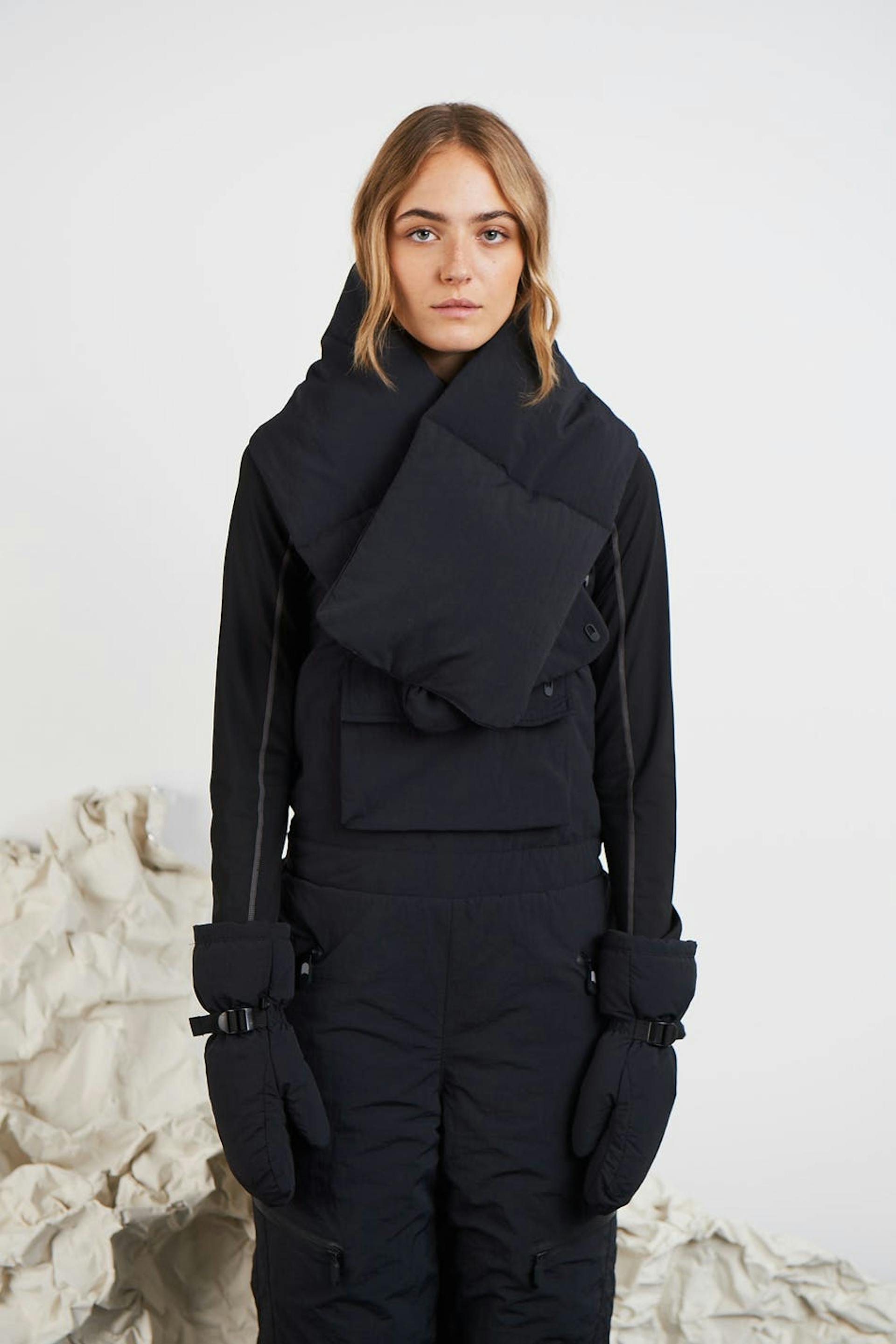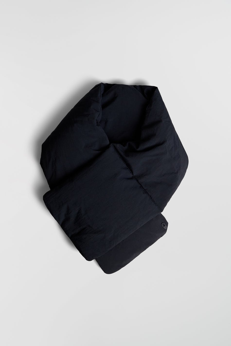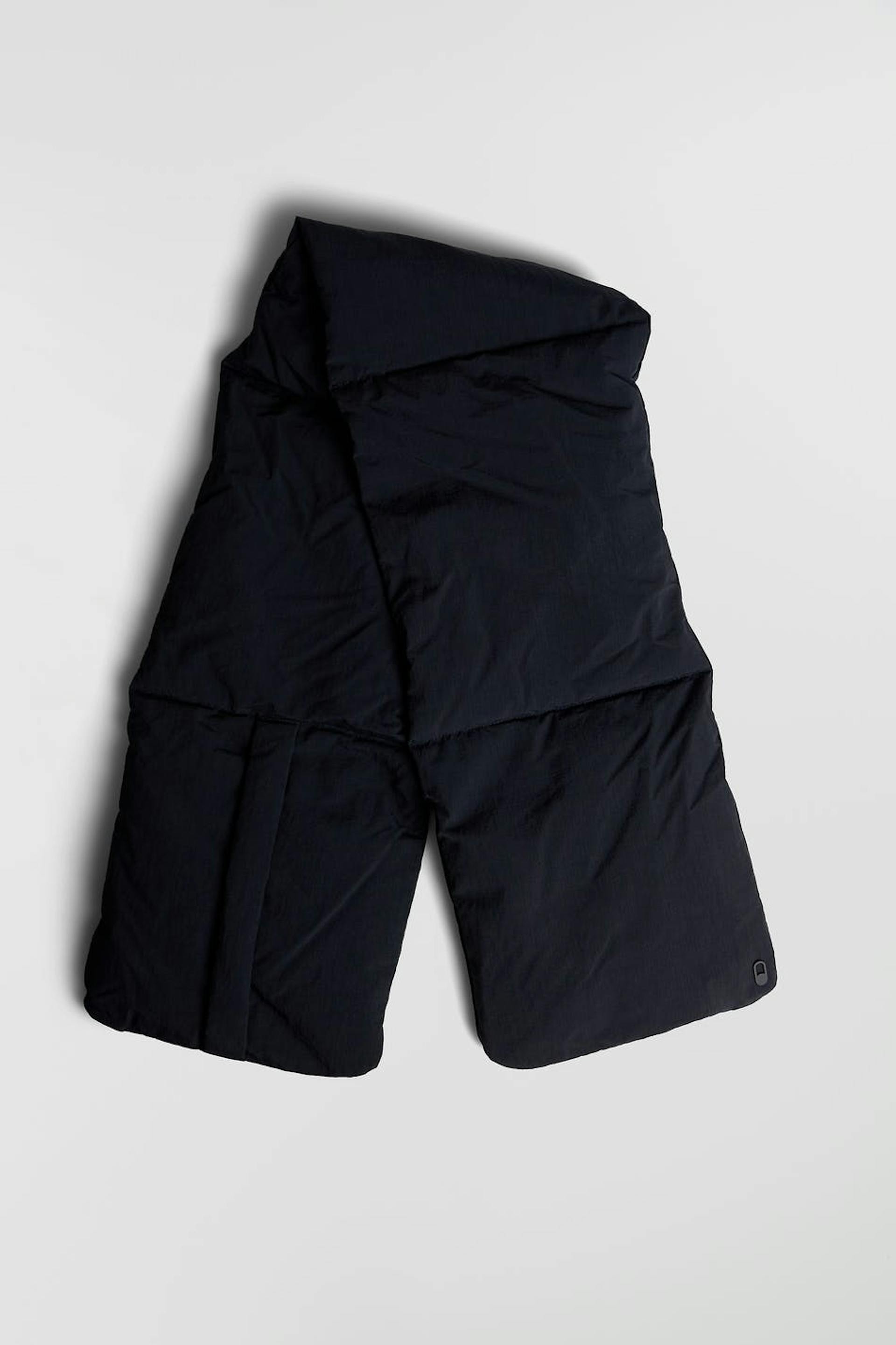 Padded scarf by Gina Lab with a material in recycled polyamide. The scarf is black and has filling in recycled down.