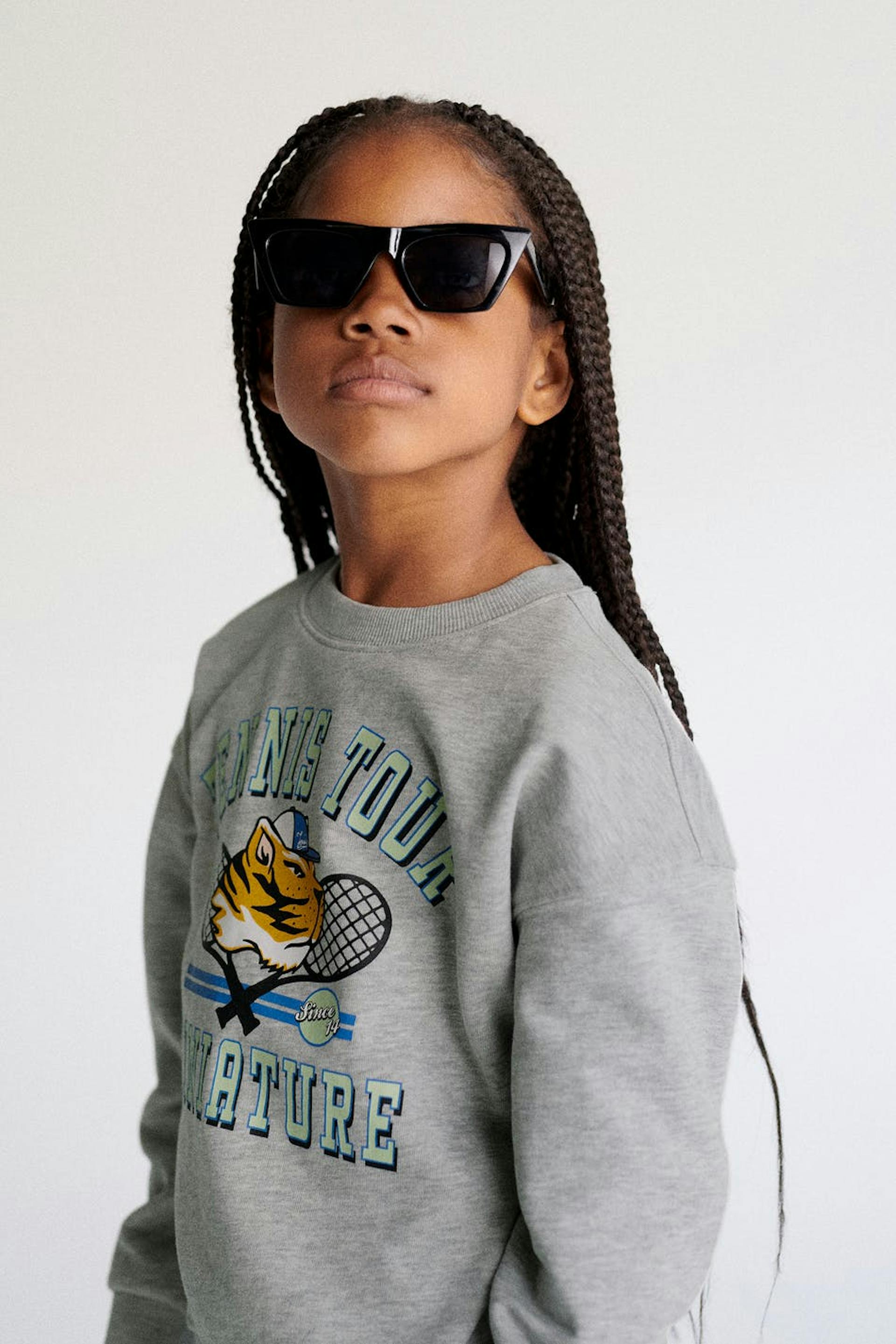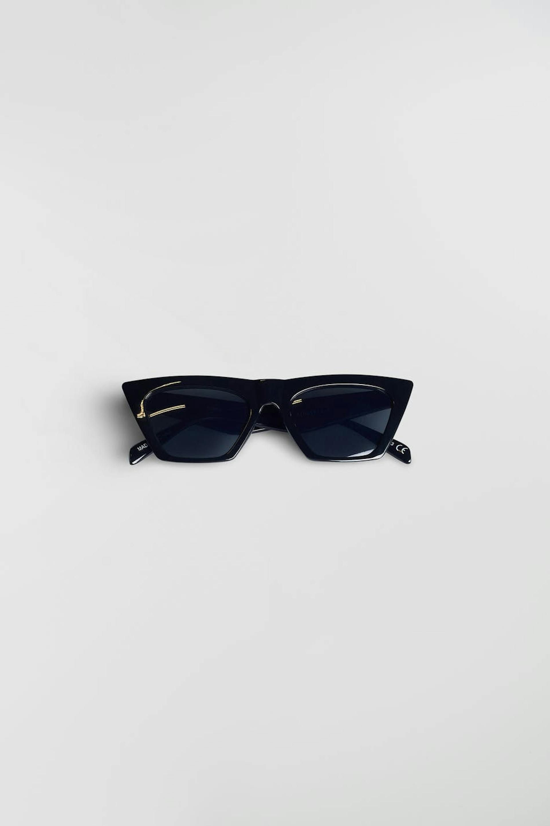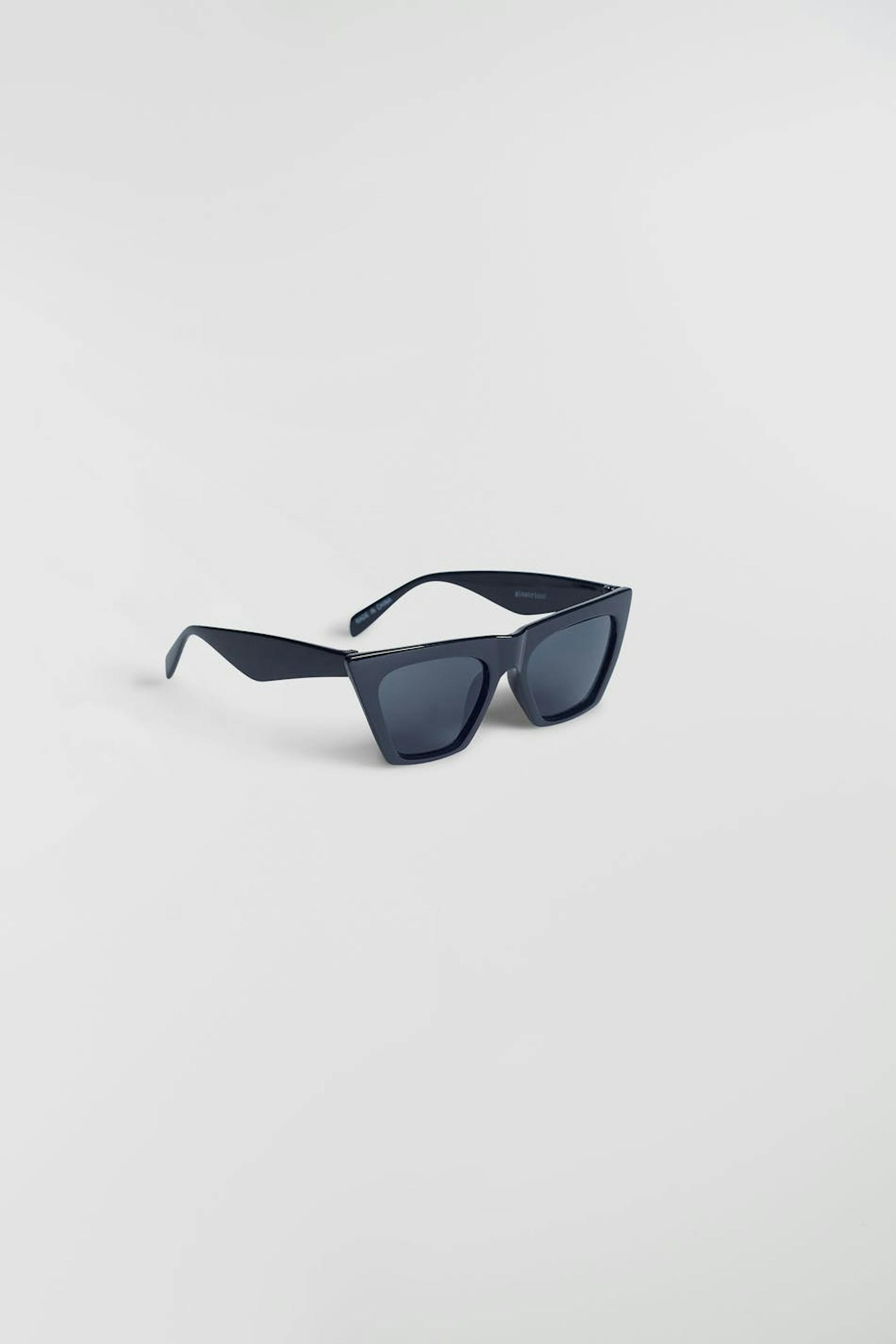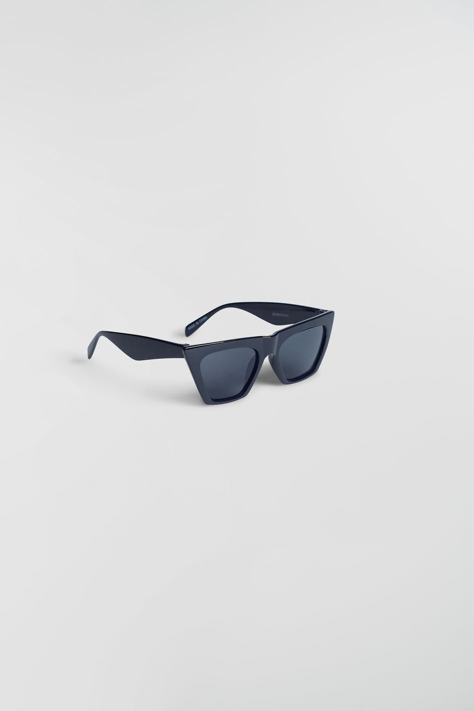 Angular sunglasses for children with a frame in plastic. The sunglasses are black.
