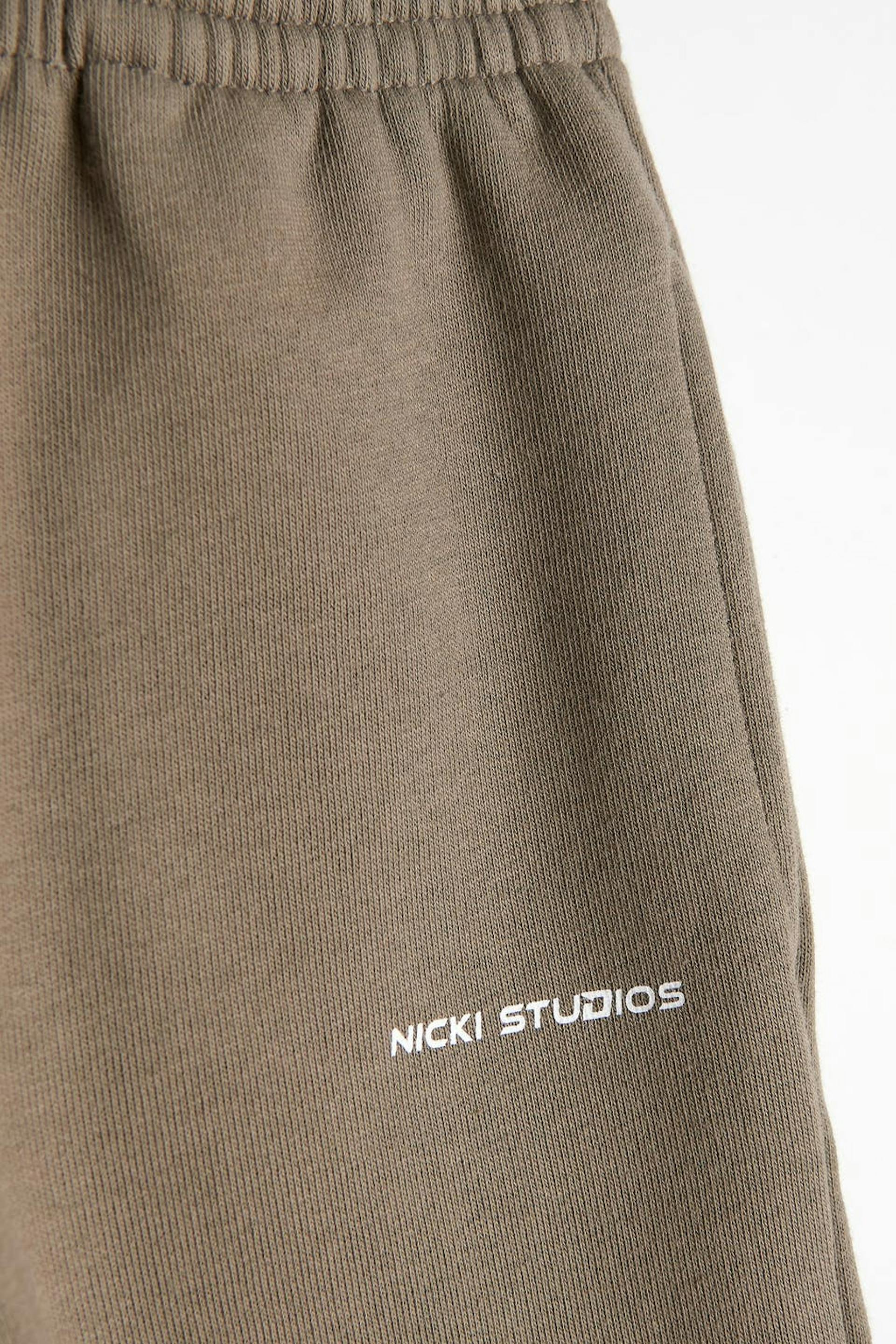 Nicki Studios X Gina Tricot. Sweatpants for children with a normal fit. The sweatpants are beige and have a heavy cotton quality. They have pockets on the sides, a logo print at the front and a soft elastic at the waist and at the end of the legs.