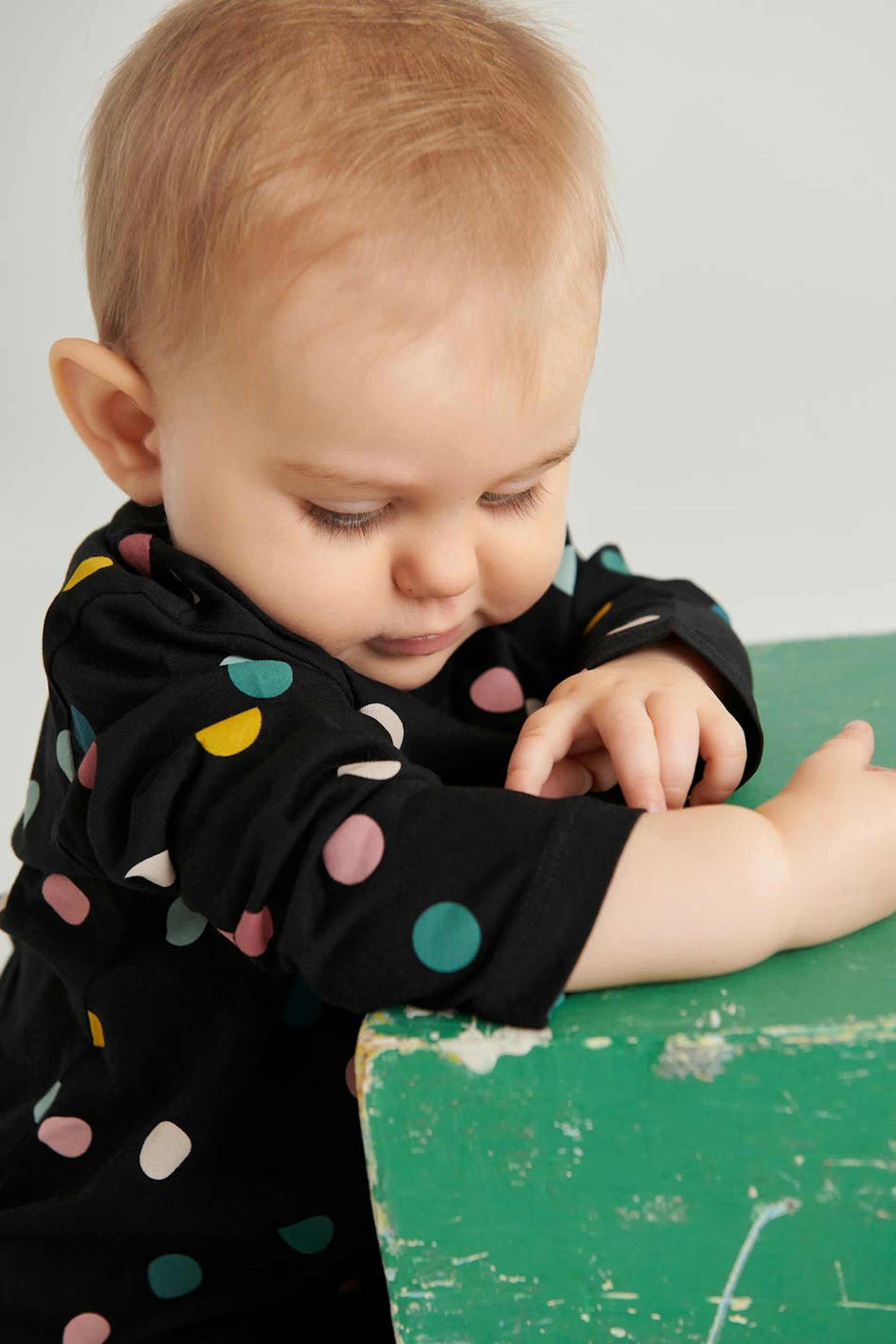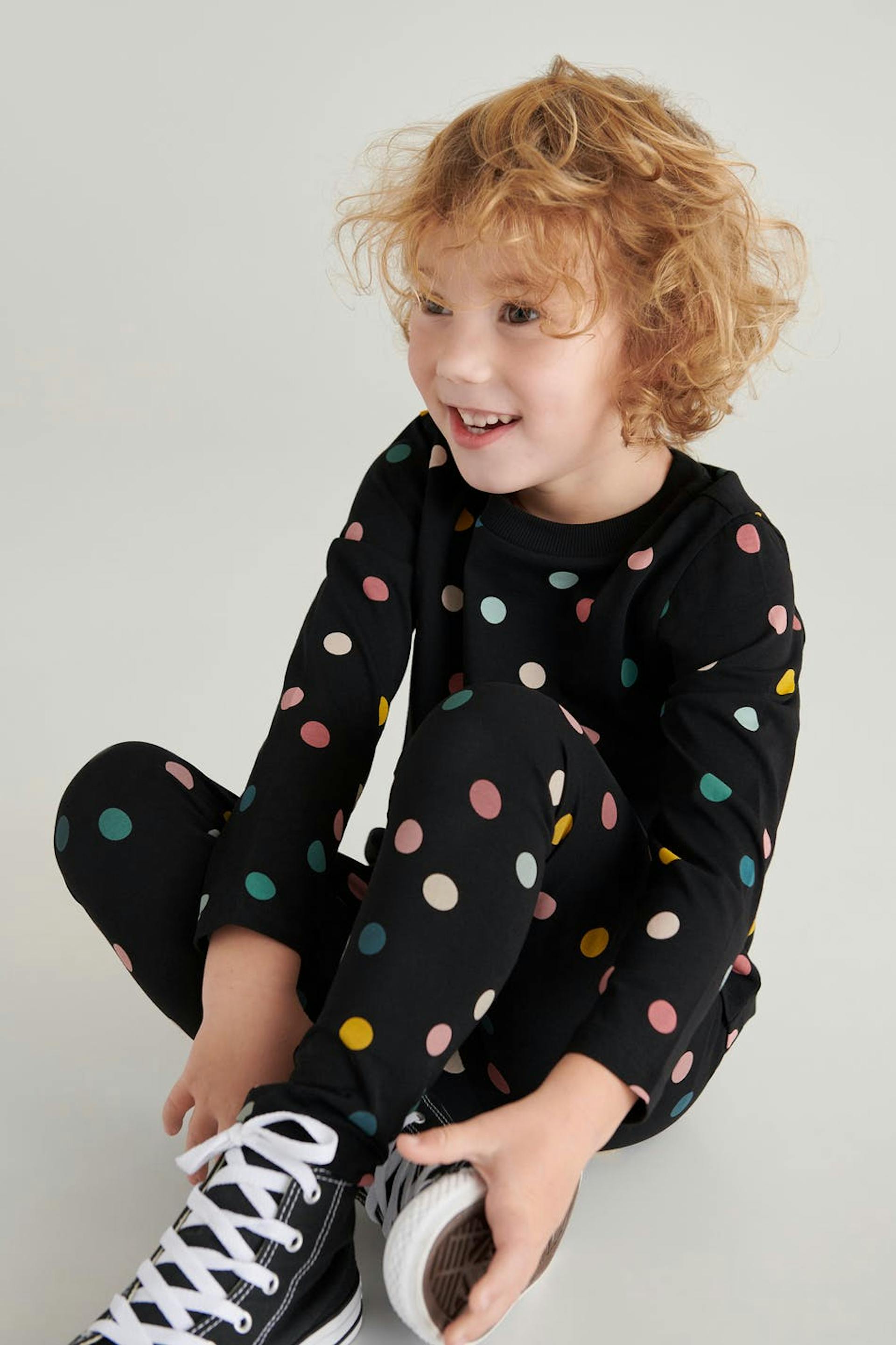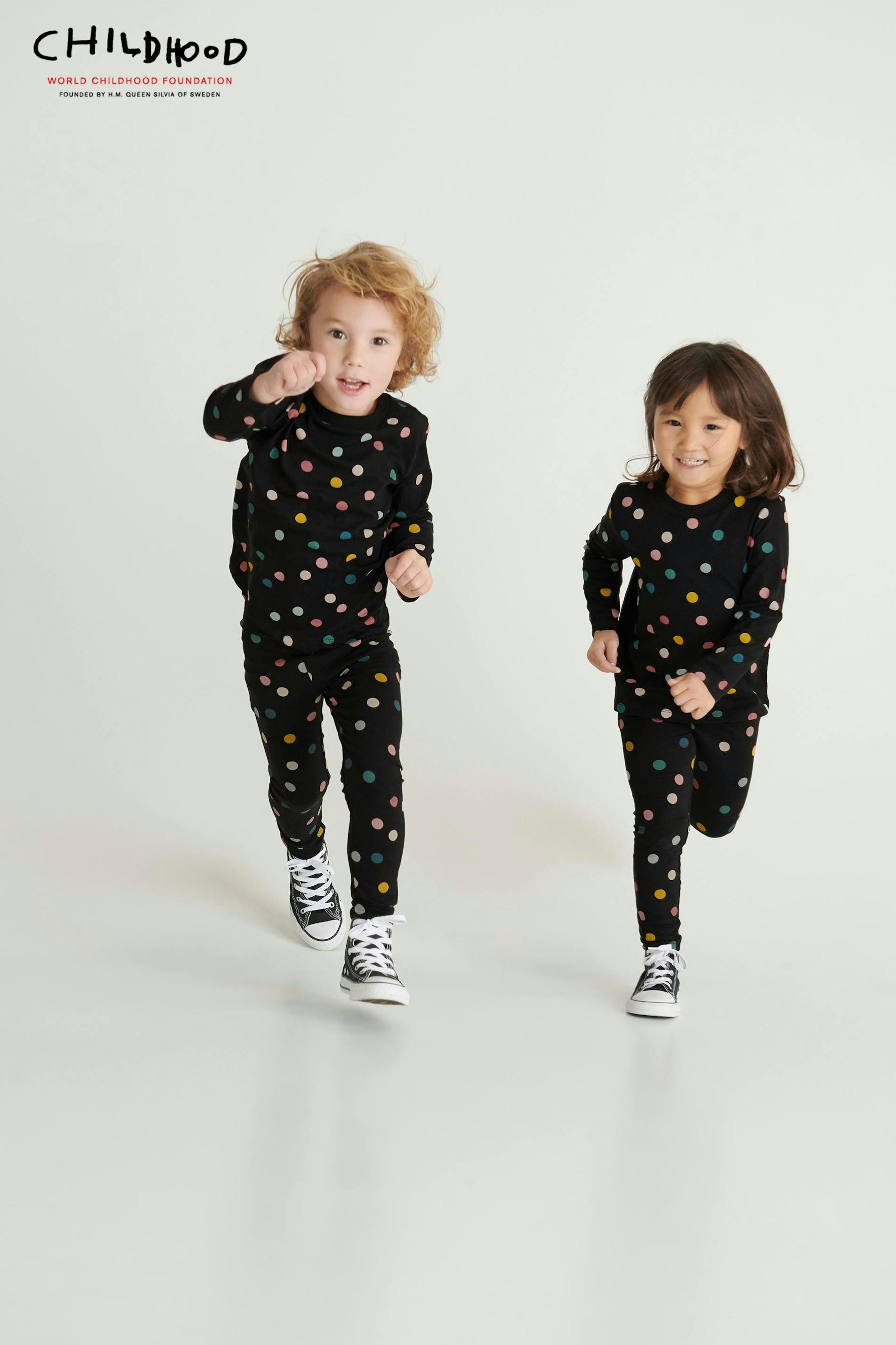 Dotted top for children. The top is black and long-sleeved. It is made of jersey. 10 % of the proceeds will go to the World Childhood Foundation.
