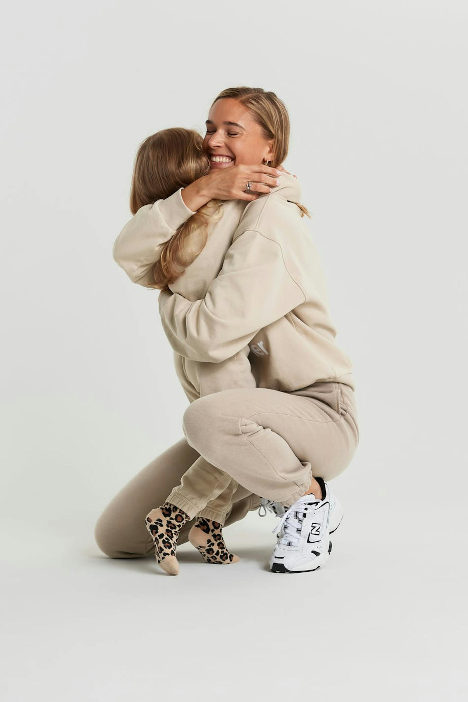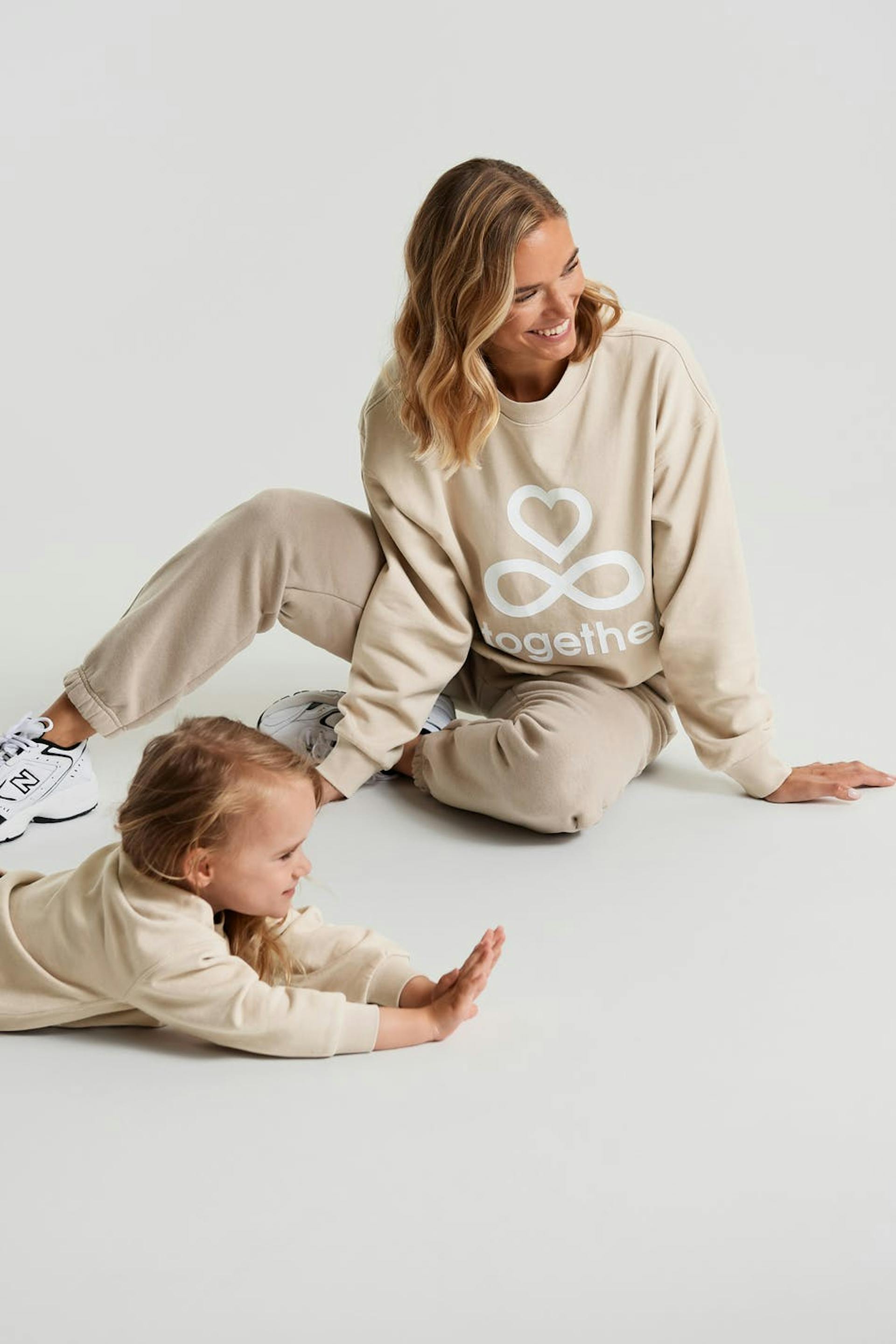 Long-sleeved sweatshirt with a white print at the front. The sweatshirt is beige and has ribbed cuff on the sleeve ends, on the neckline and at the hem.